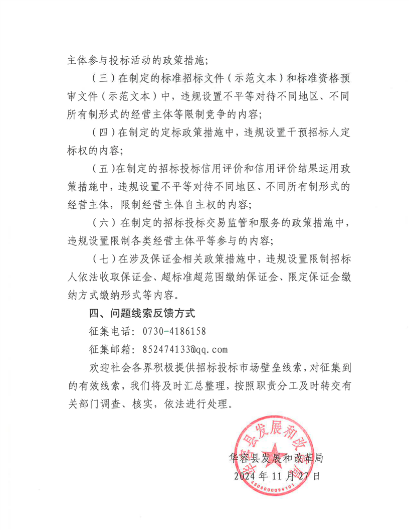 关于征集招标投标市场壁垒线索的通告