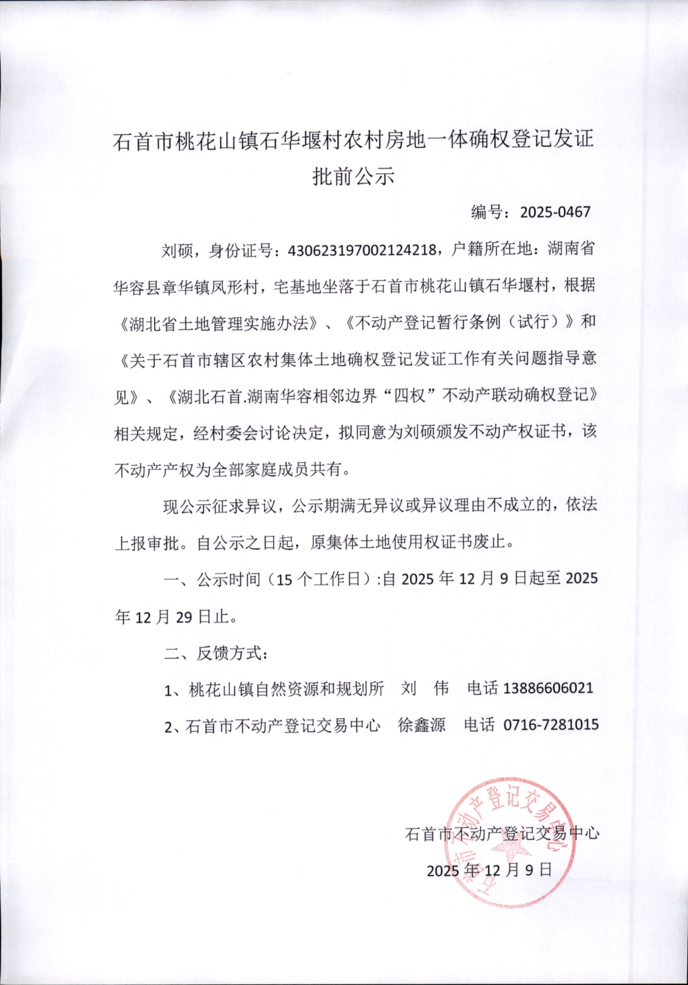 石首市桃花山镇石华堰农村房地一体确权登记发证(刘硕)
