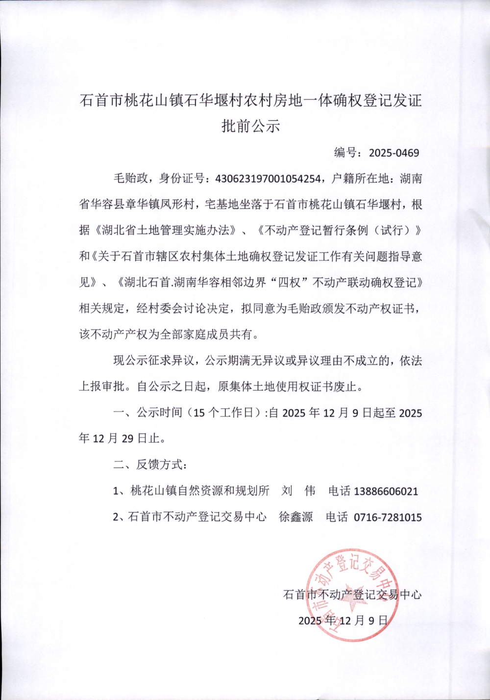 石首市桃花山镇石华堰农村房地一体确权登记发证(毛贻政)