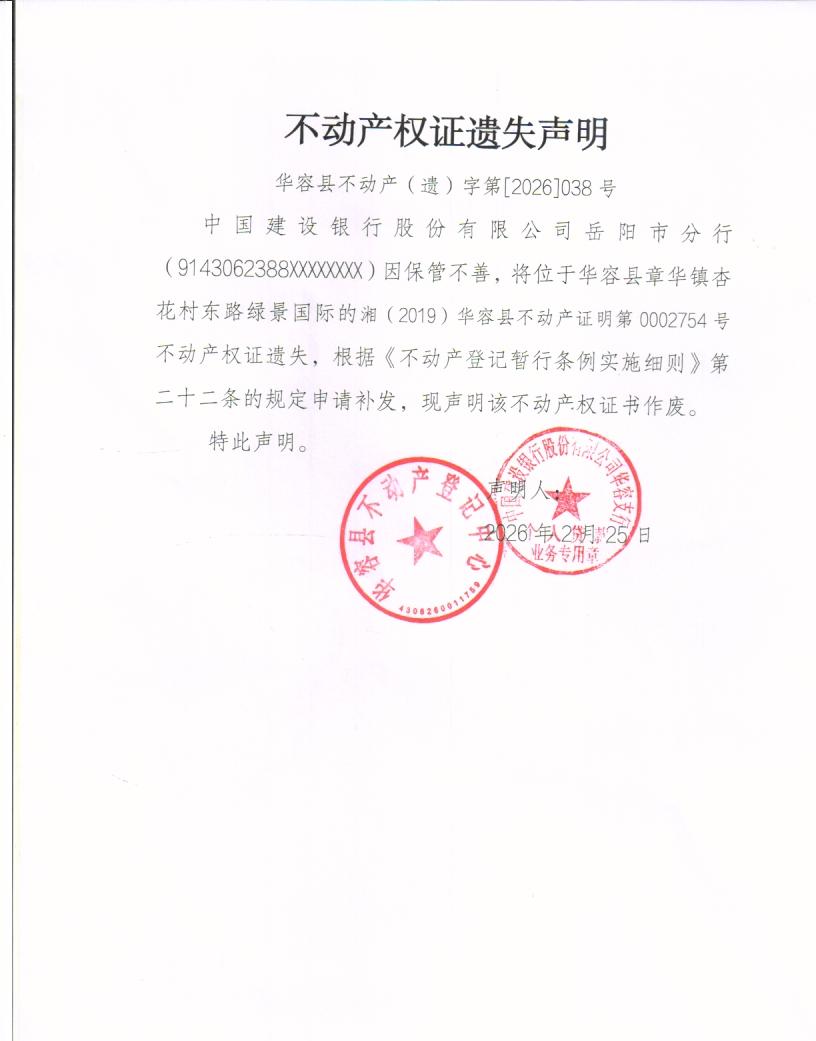 不动产权证遗失声明(秦永新)