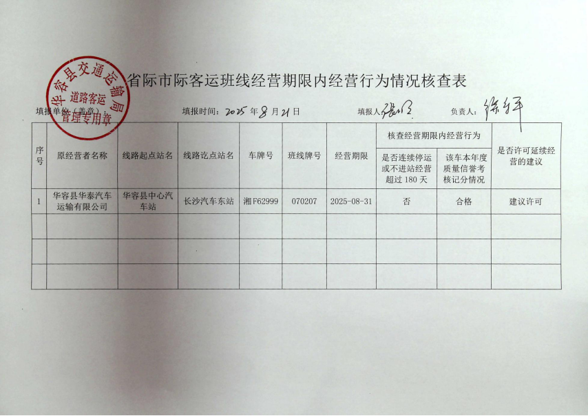 关于华容县华泰汽车运输有限公司长沙班线(070207)延续经营的公示