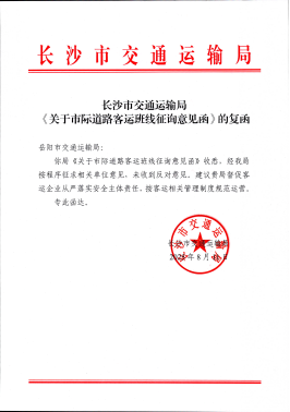 现将岳阳市交通局受理的道路旅客运输相关事项进行公示,如有意见或建议的,请于公示之日起5个工作日内书面向市局行政审批科反映,并在反映材料上署名,所反映的内容必须真实。