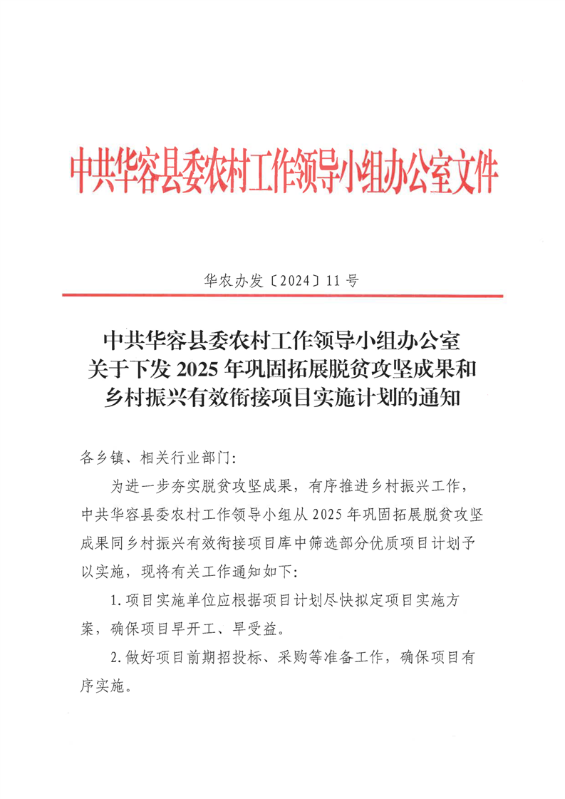 华农办发〔2024〕11号-关于下发2025年巩固拓展脱贫攻坚成果同乡村振兴有效衔接项目实施计划的通知