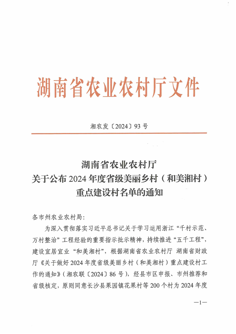 2024年第六批省级财政衔接推进乡村振兴补助资金-和美湘村重点建设项目200万元