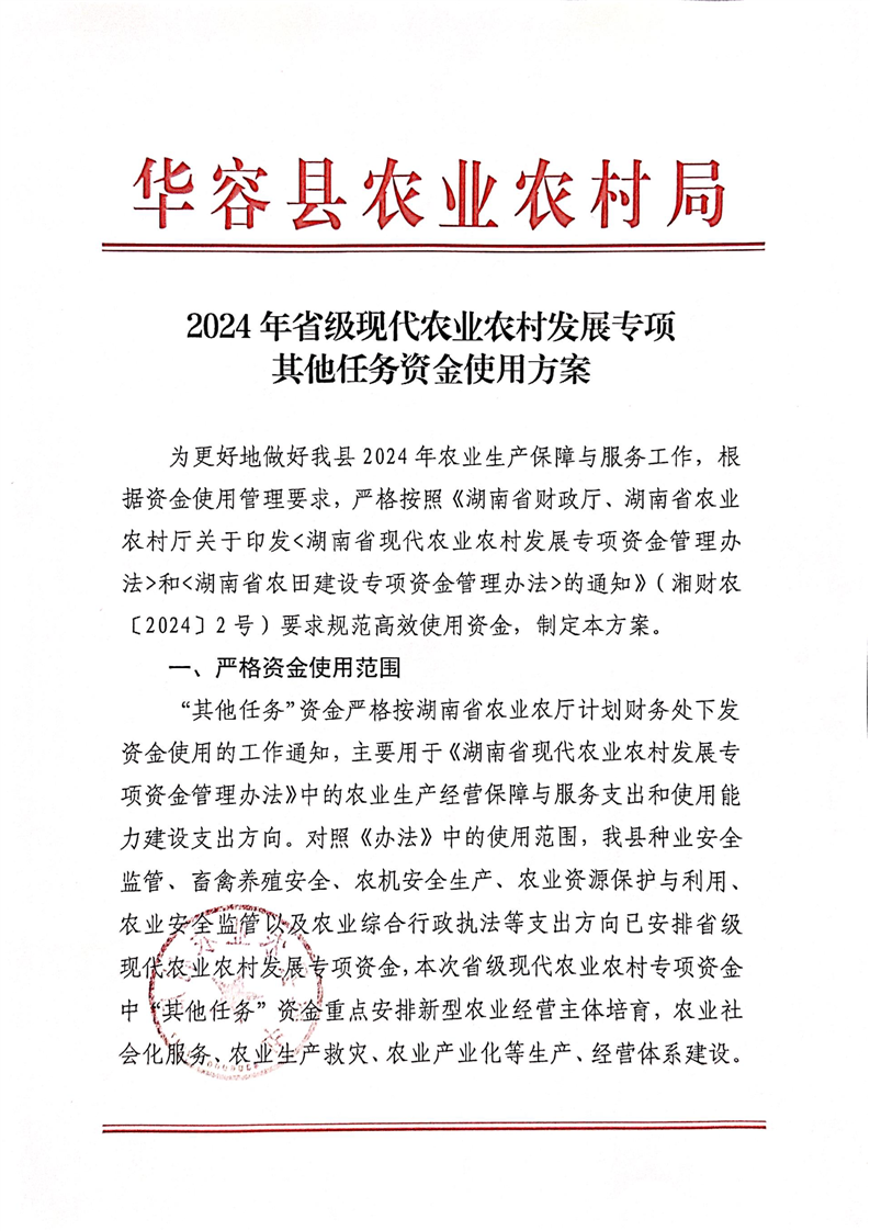 2024年省级现代农业农村发展专项其他任务资金使用方案