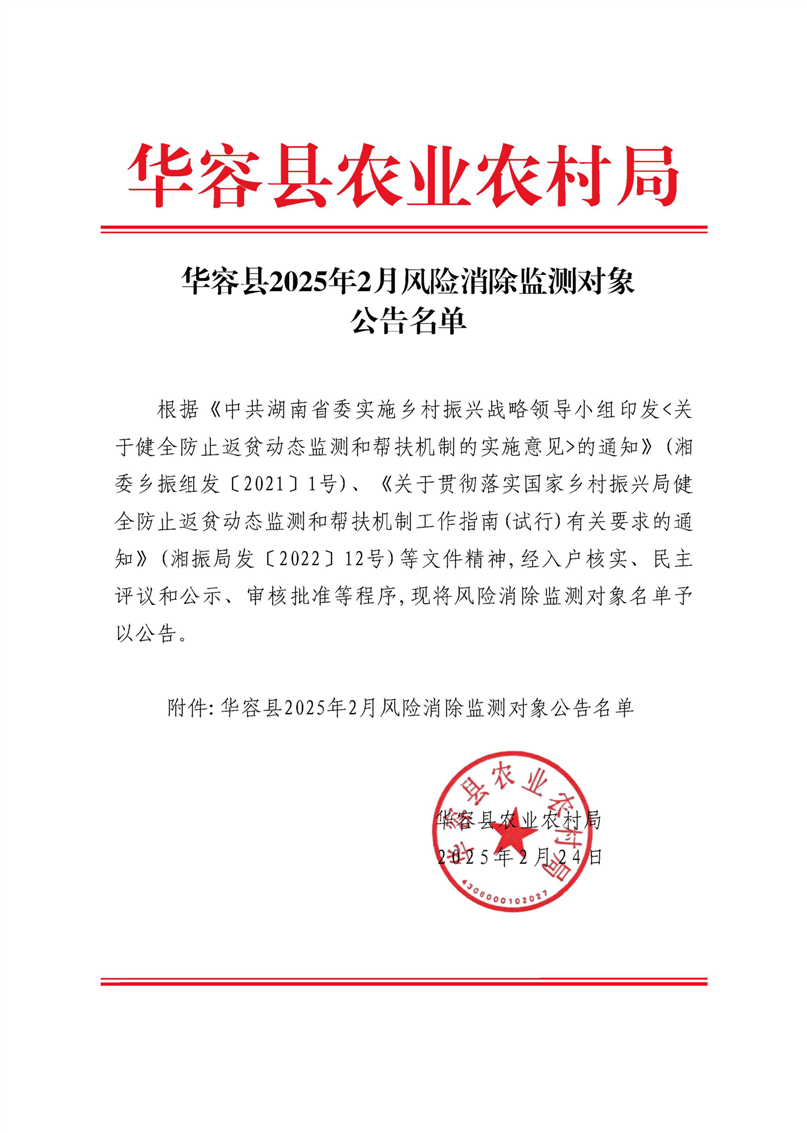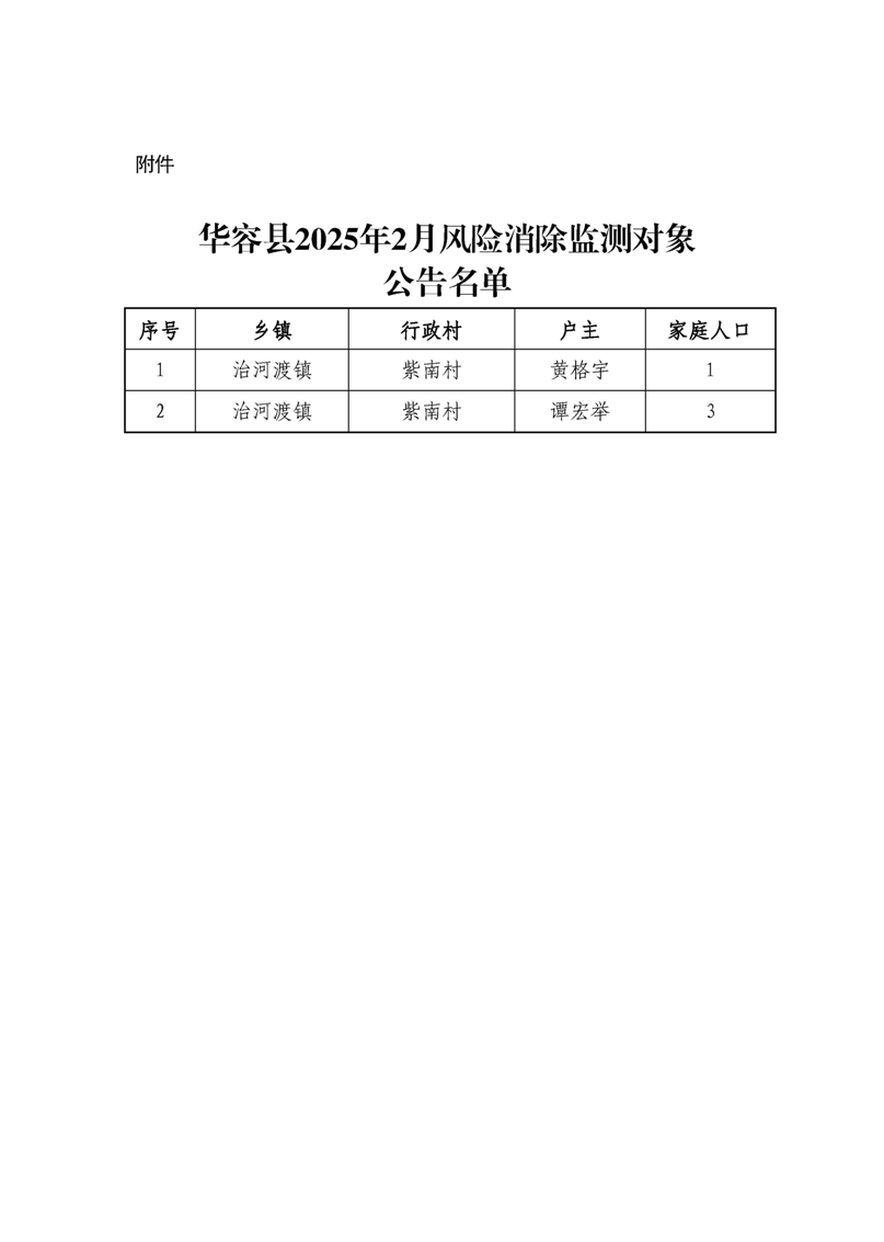 华容县2025年2月风险消除监测对象公告名单