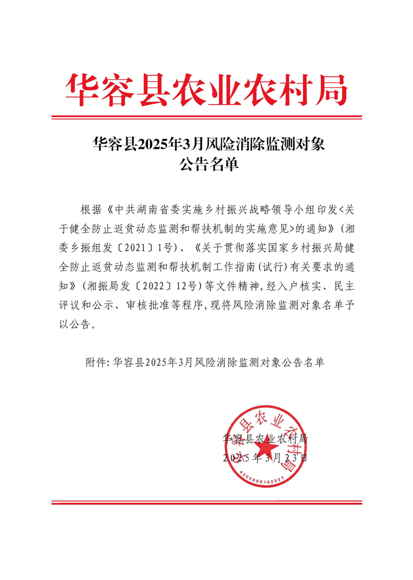 华容县2025年3月风险消除监测对象公告名单-合并版