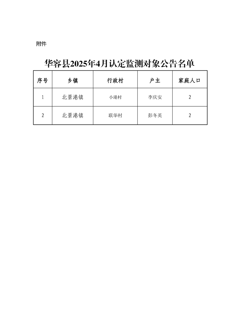 华容县2025年5月认定监测对象公告名单