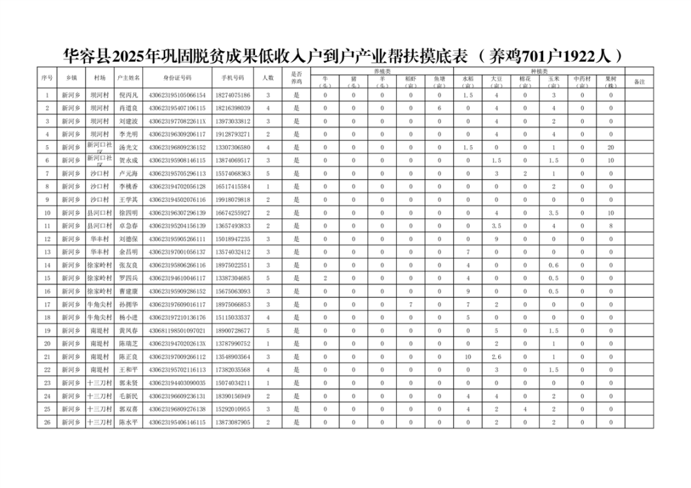 华容县巩固脱贫攻坚成果低收入户到户产业帮扶养鸡扶持公示