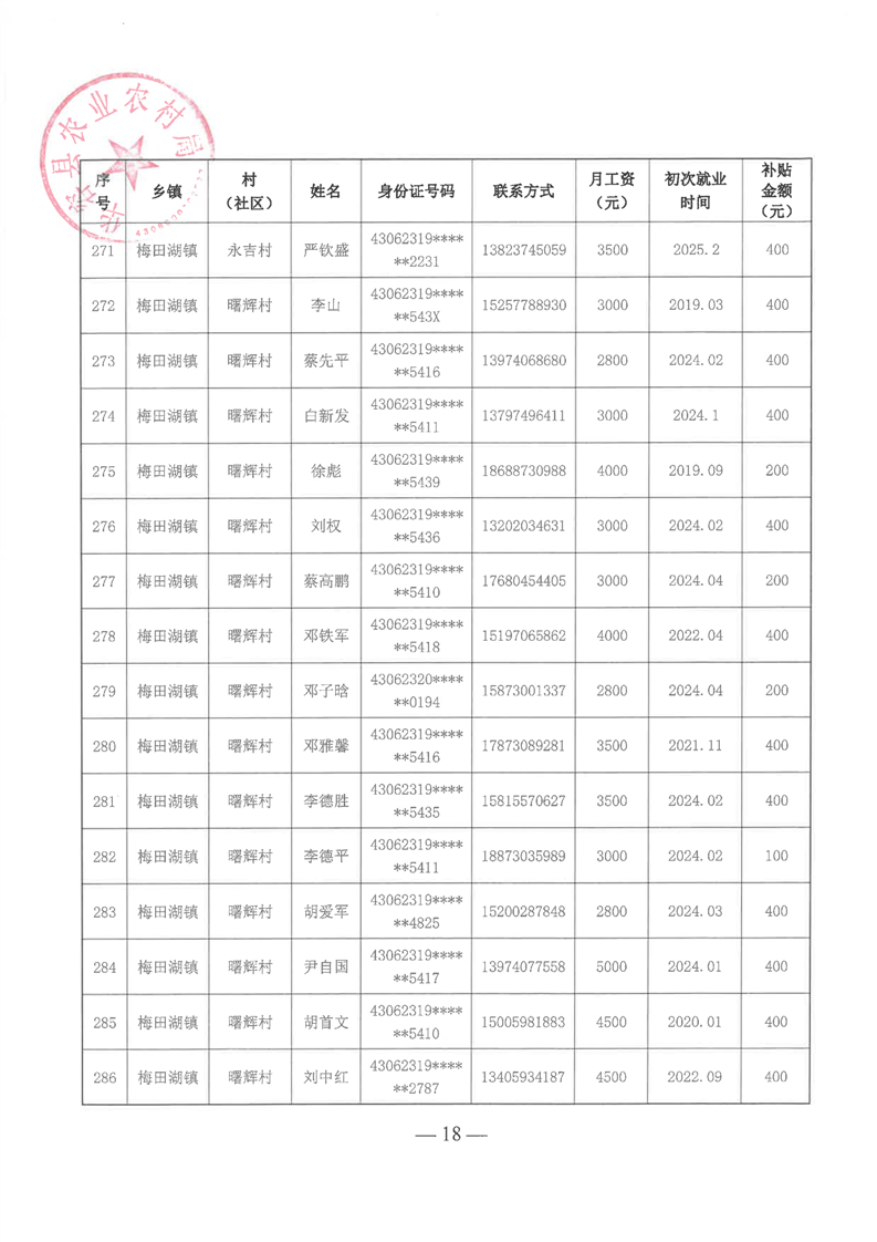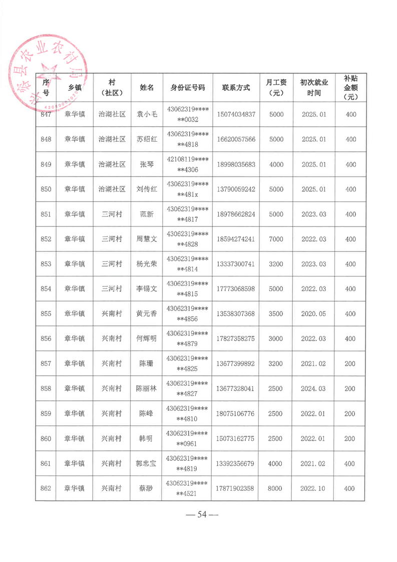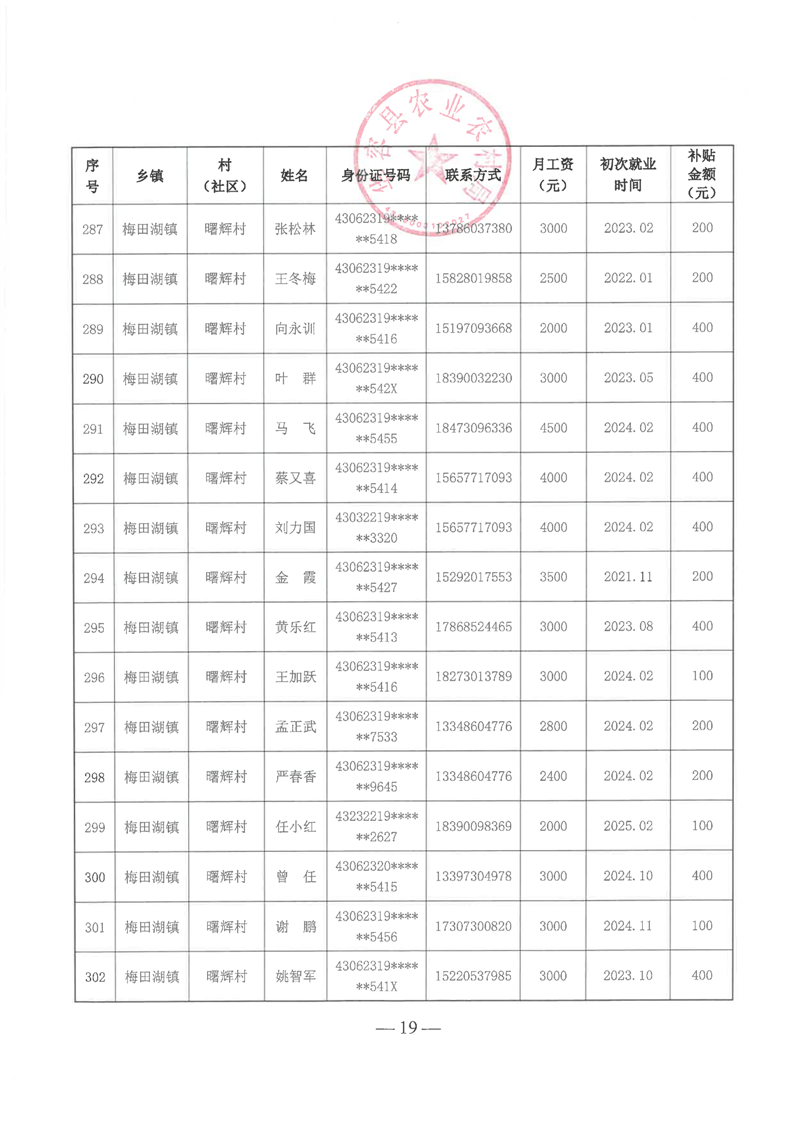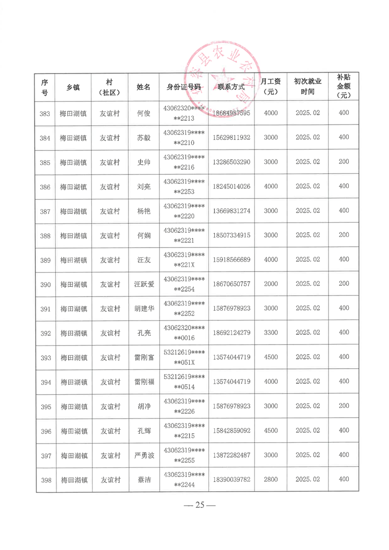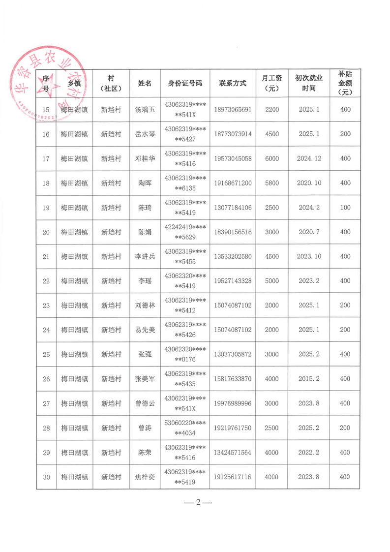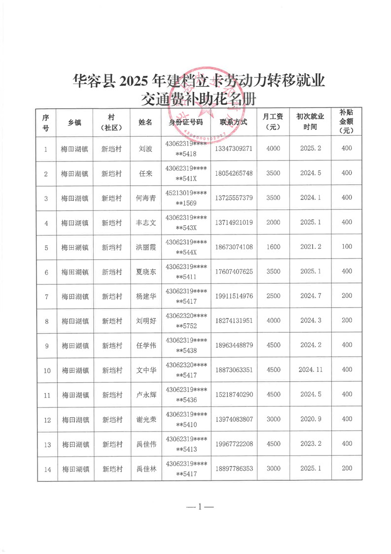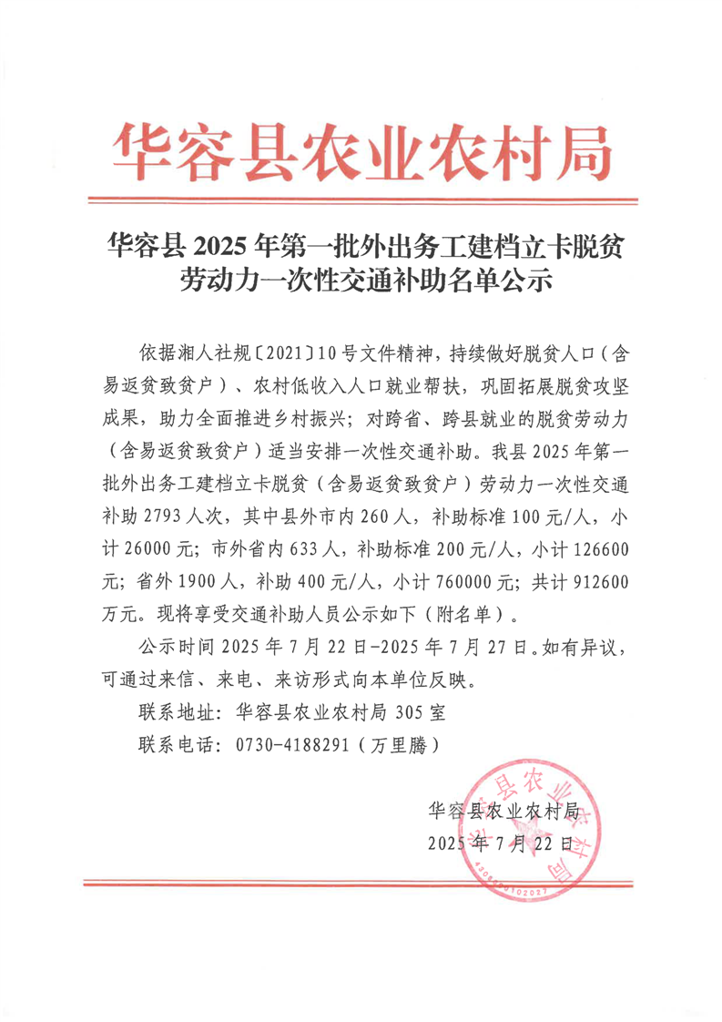 华容县2025年第一批外出务工建档立卡脱贫劳动力一次性交通补助名单公示