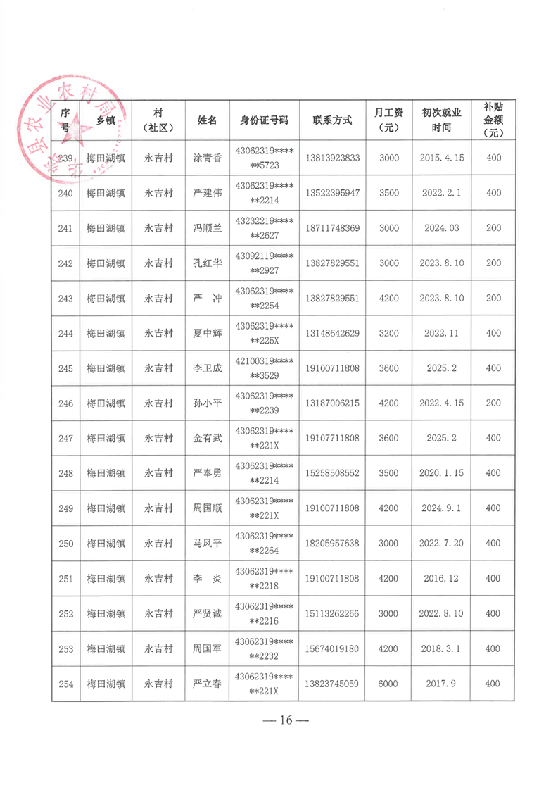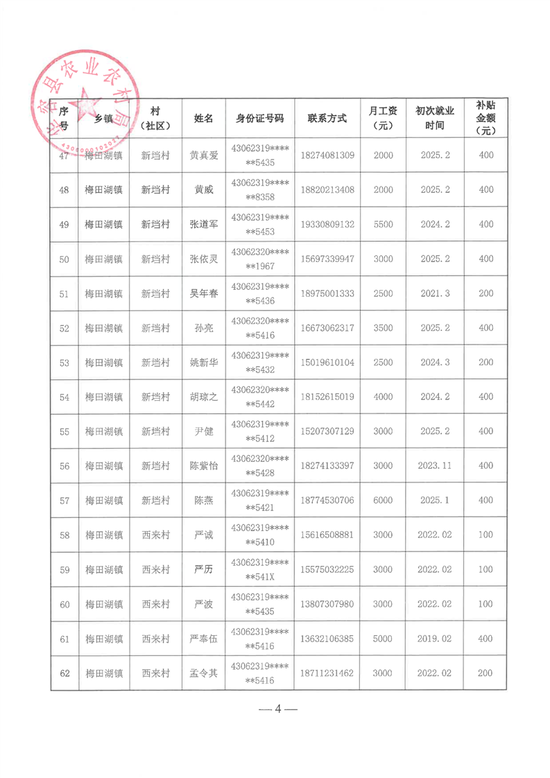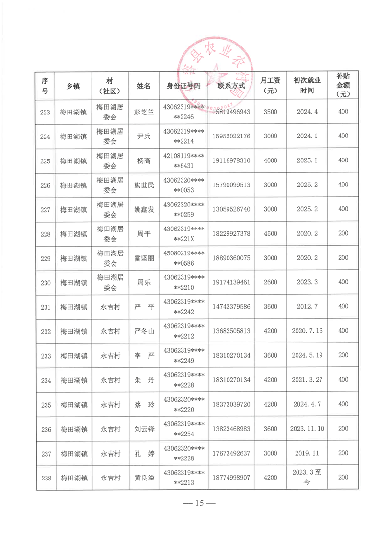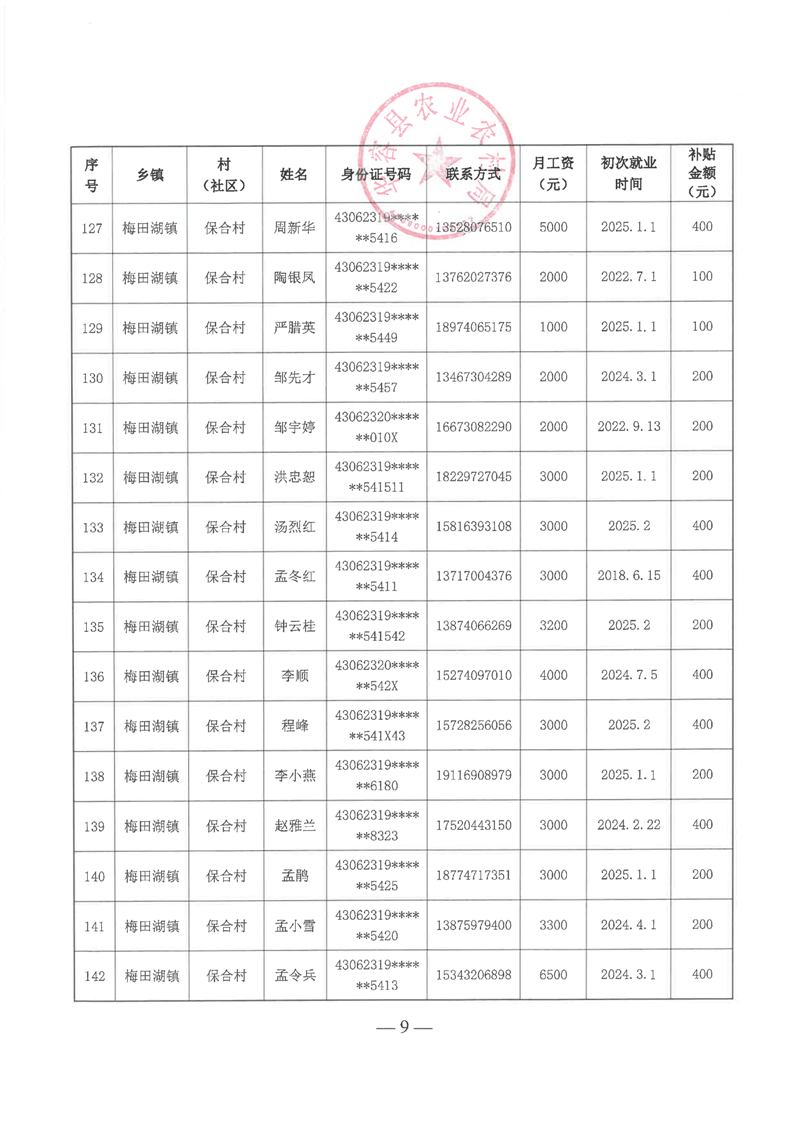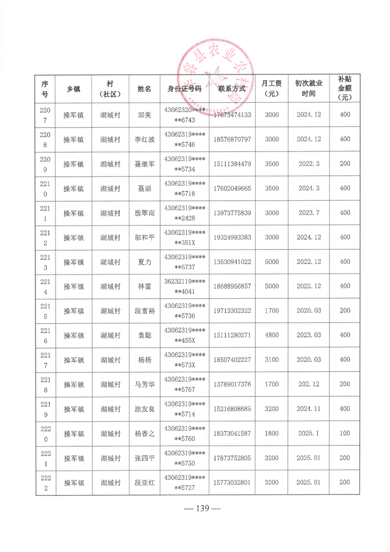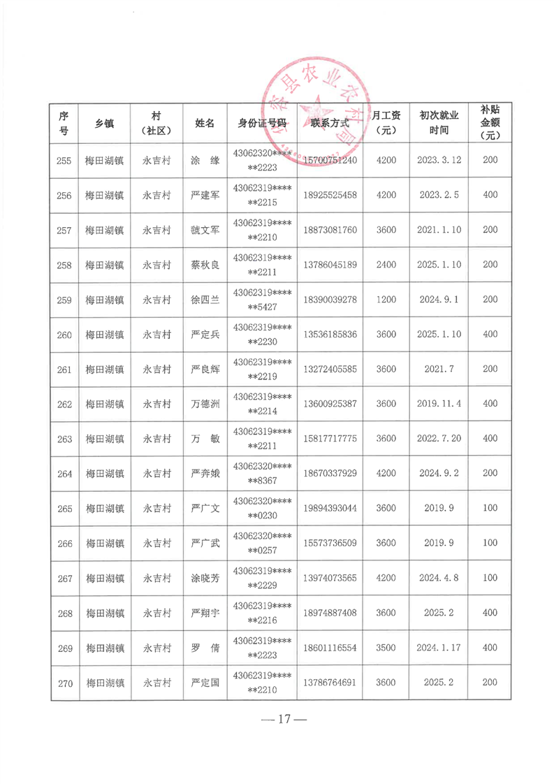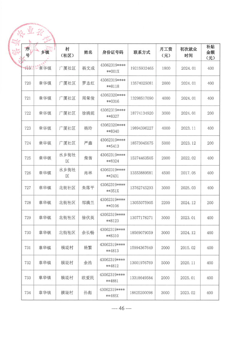 华容县2025年第一批外出务工建档立卡脱贫劳动力一次性交通补助名单公示