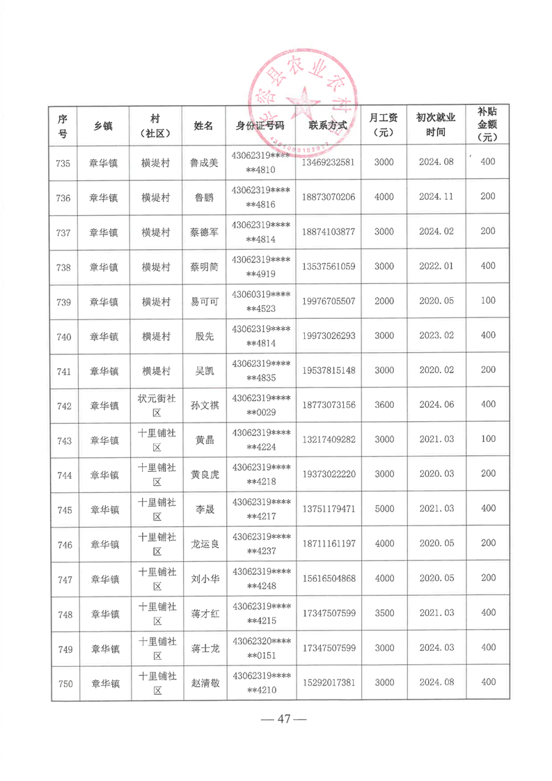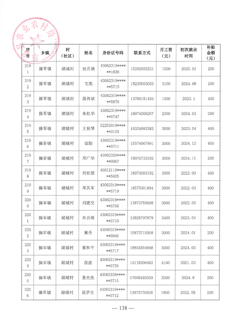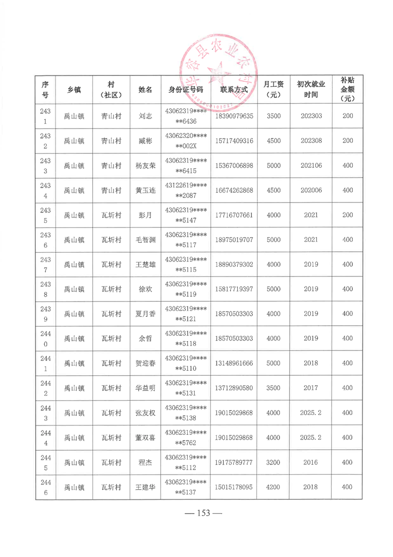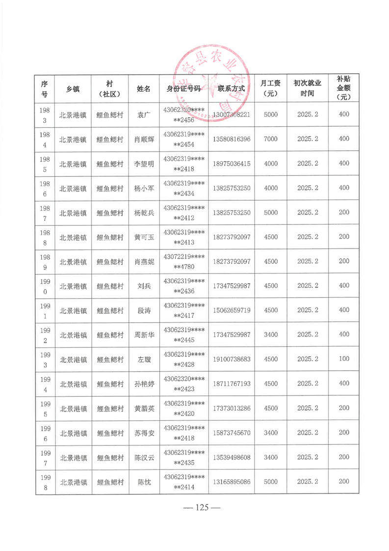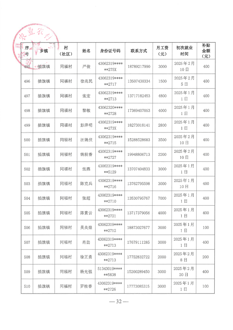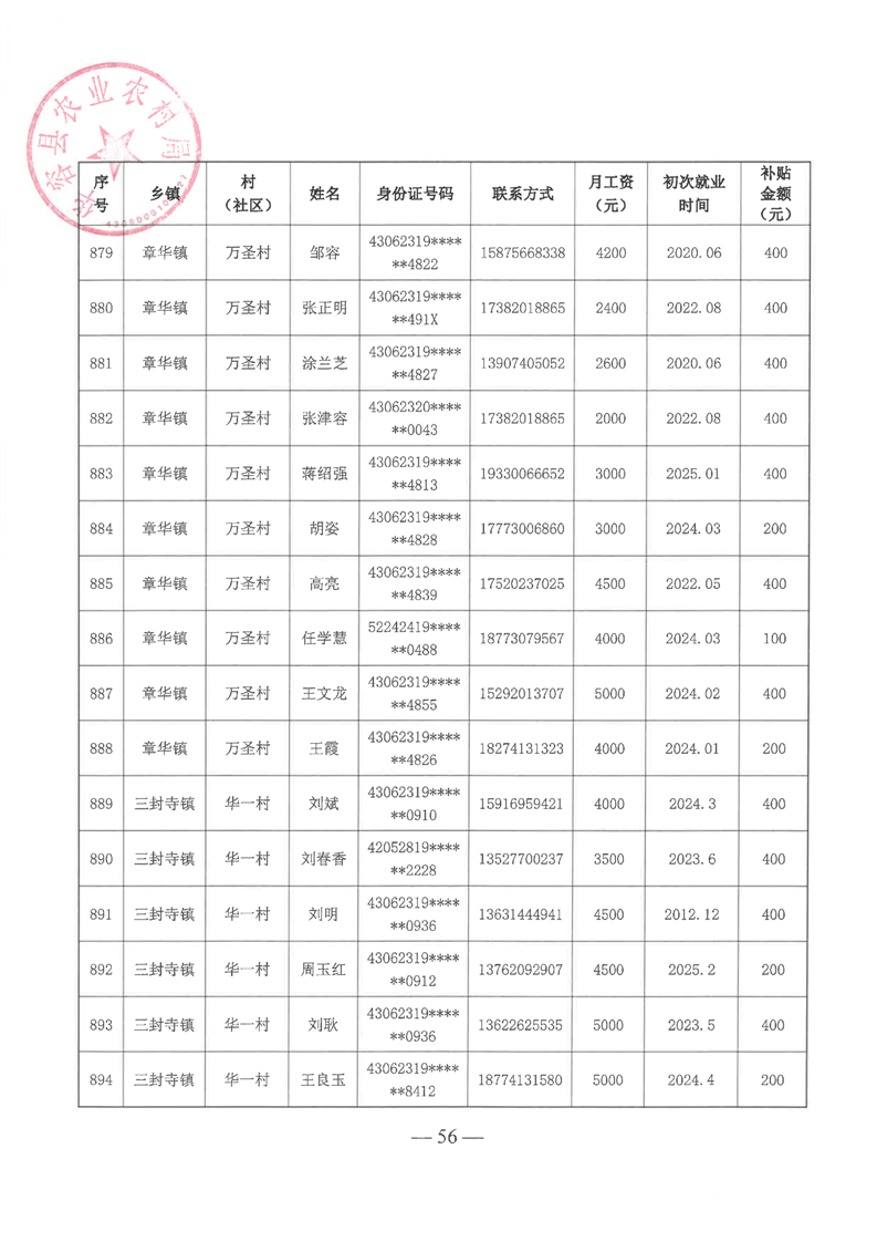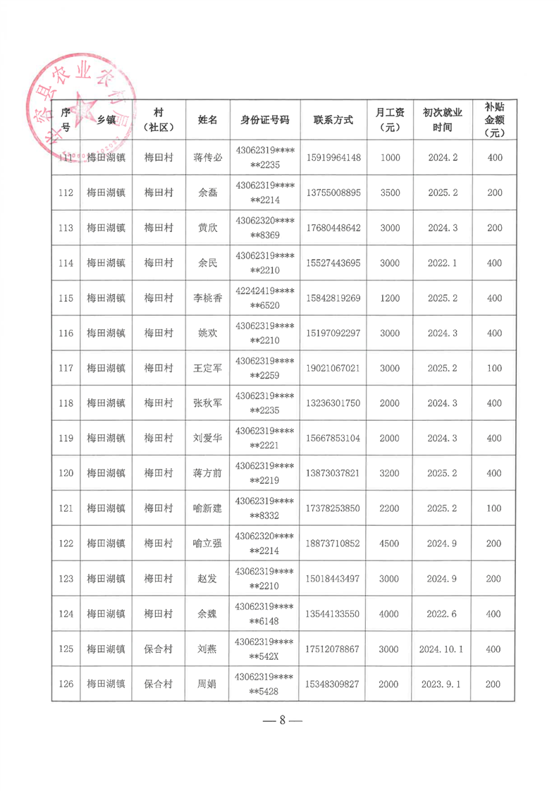 华容县2025年第一批外出务工建档立卡脱贫劳动力一次性交通补助名单公示
