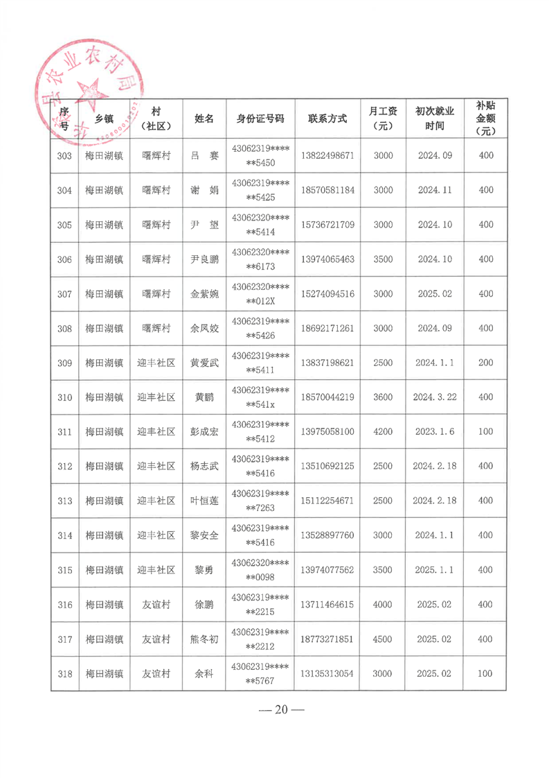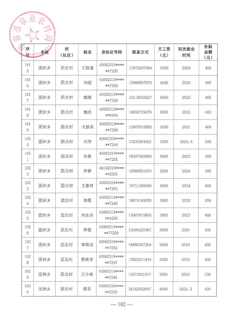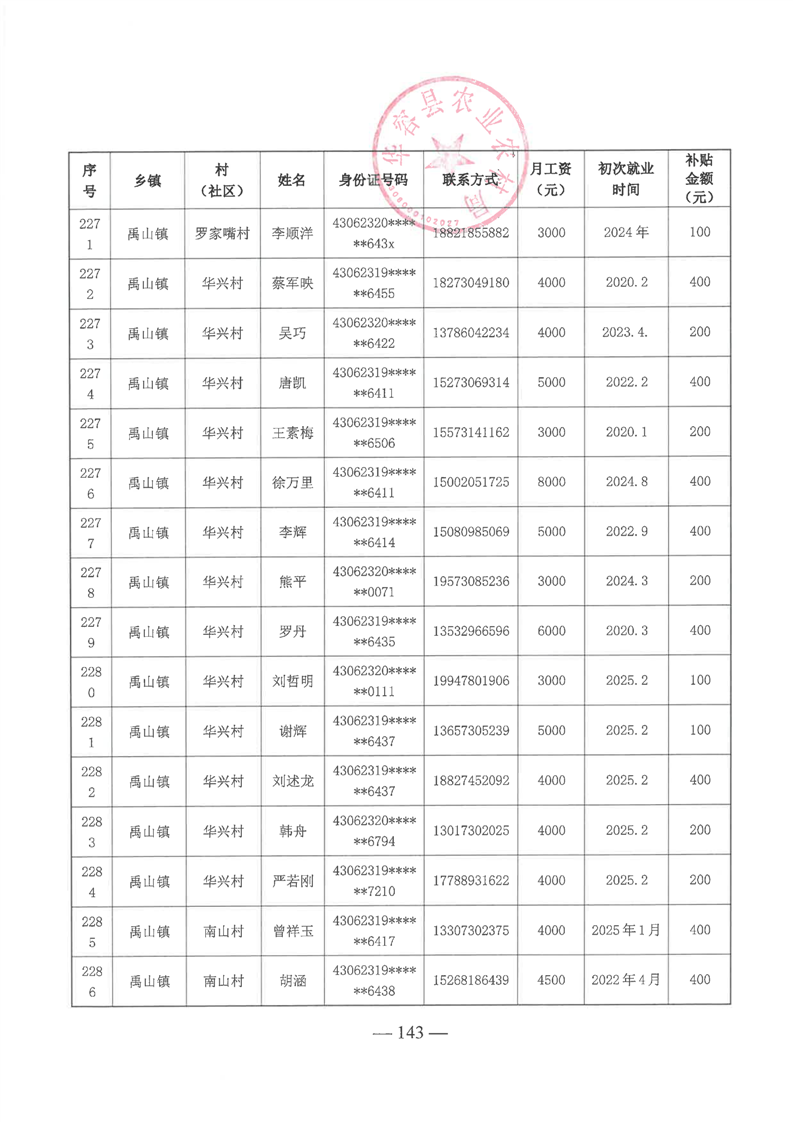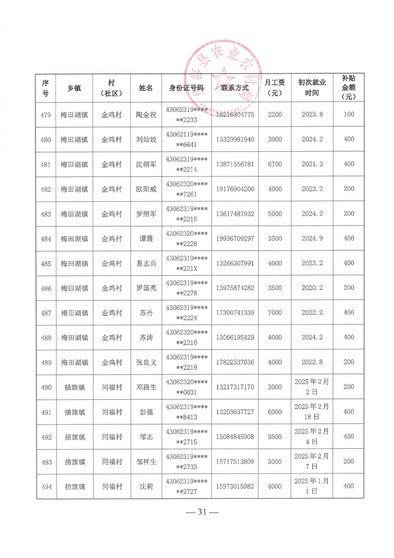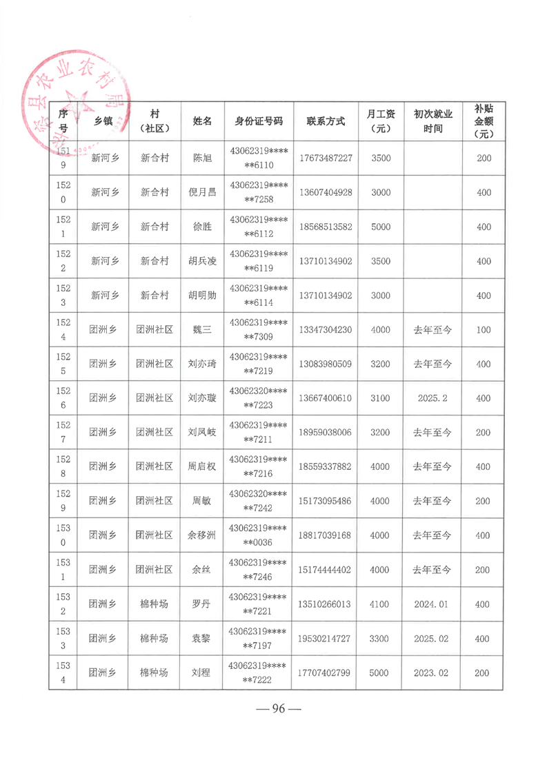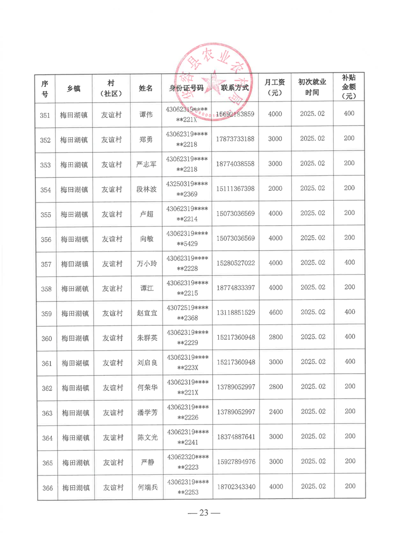 华容县2025年第一批外出务工建档立卡脱贫劳动力一次性交通补助名单公示