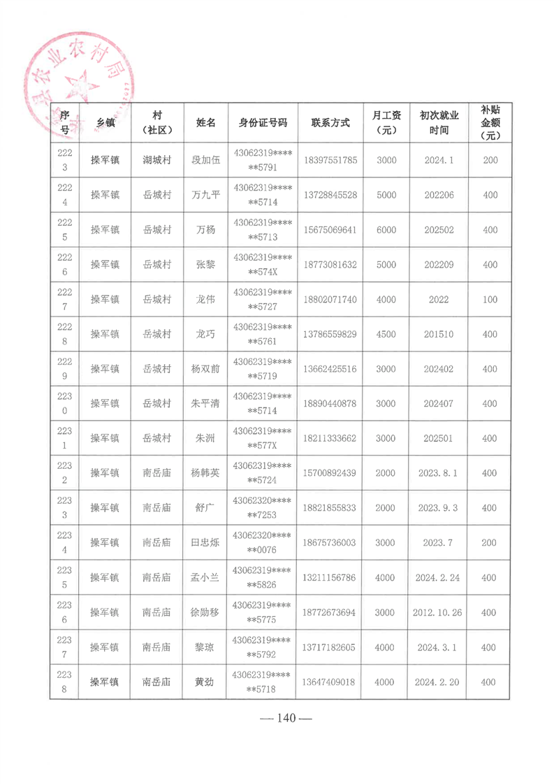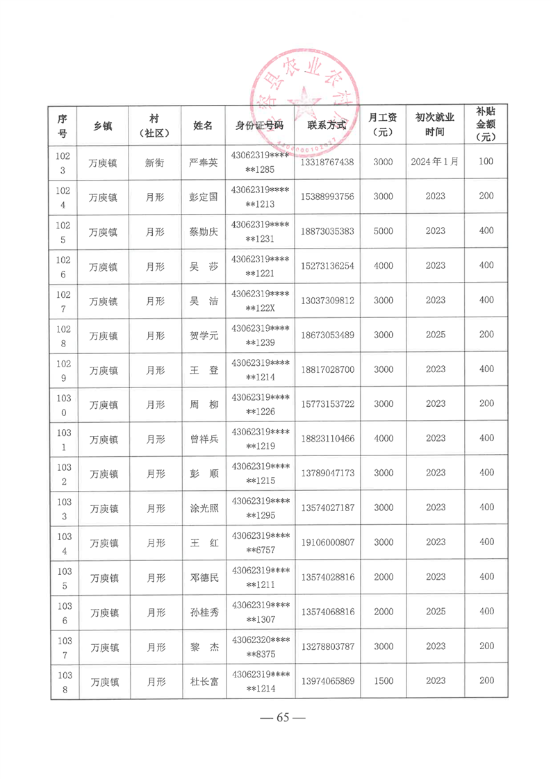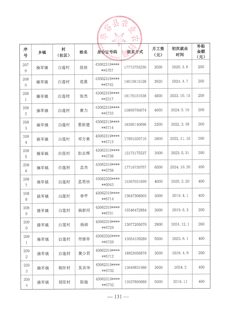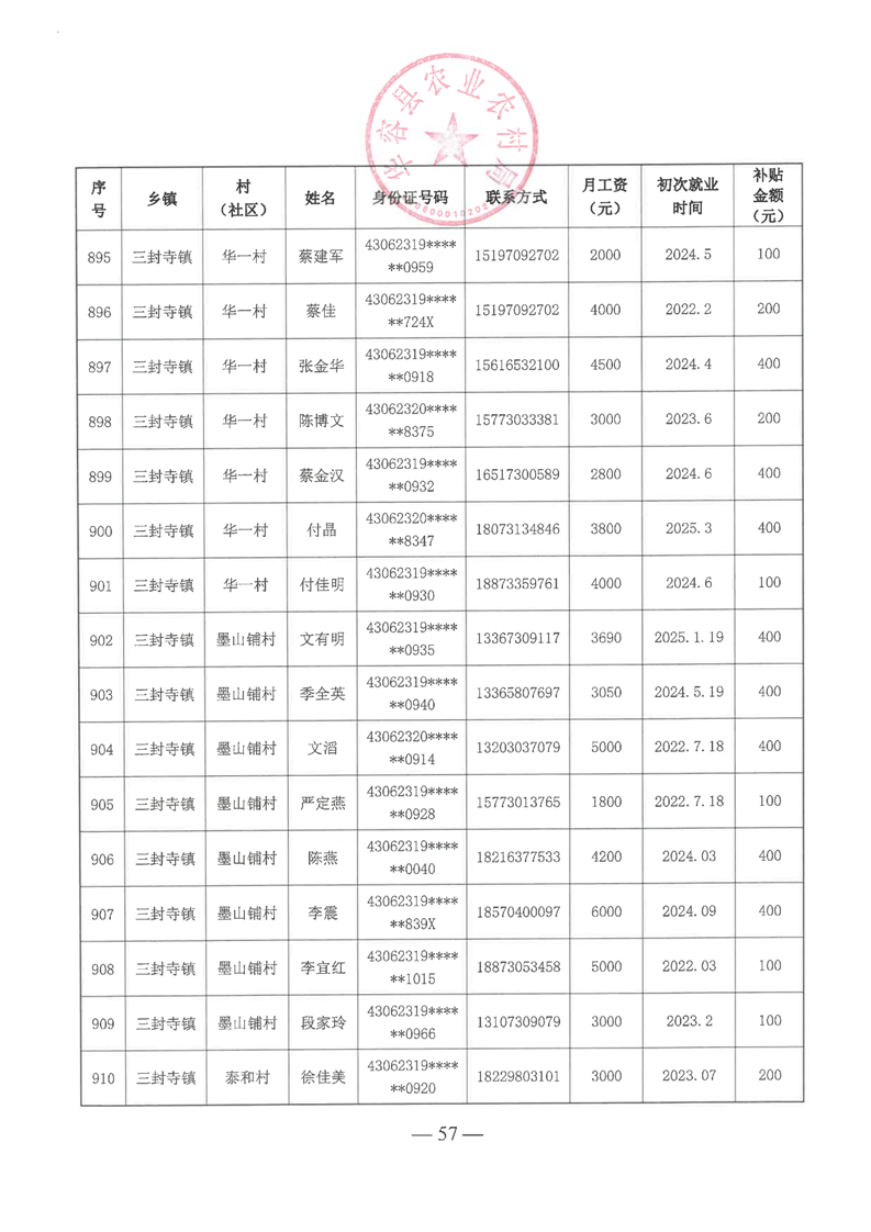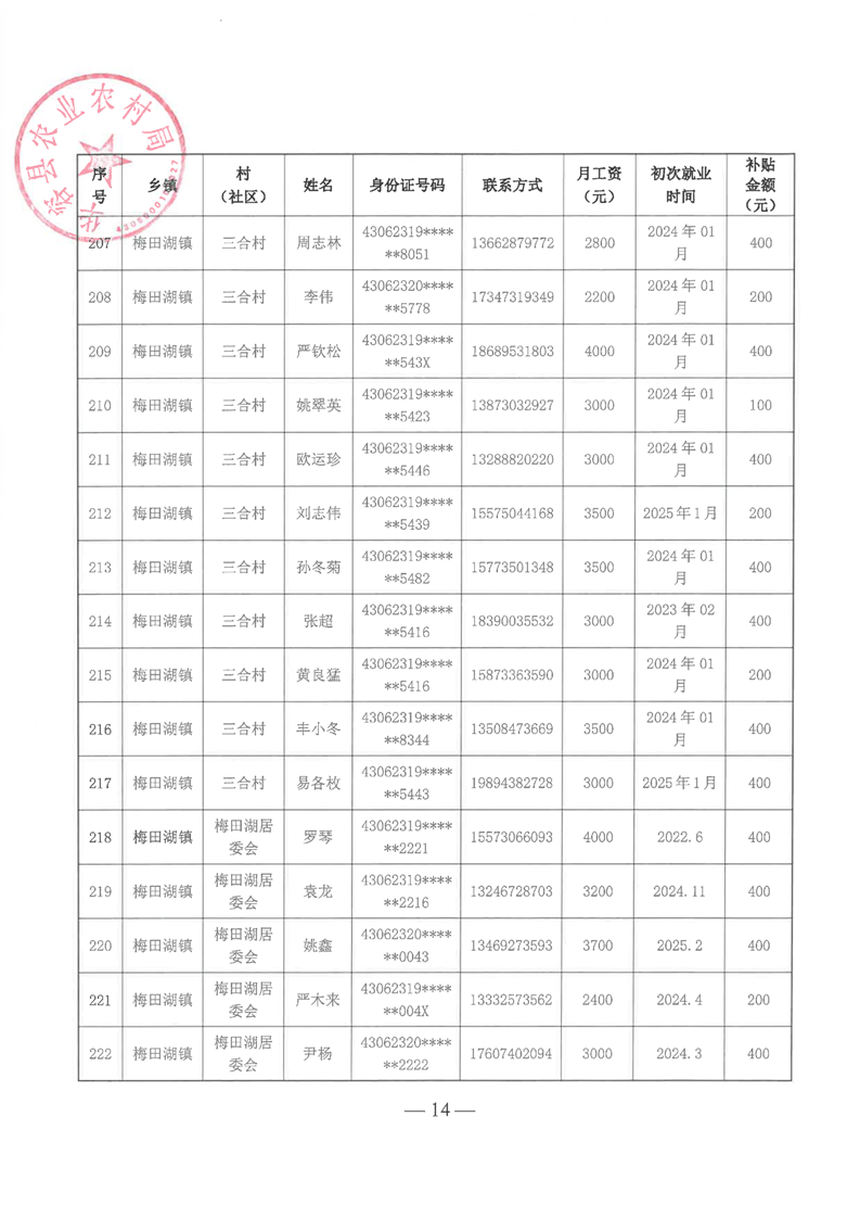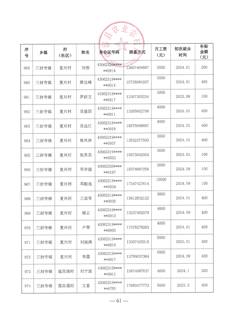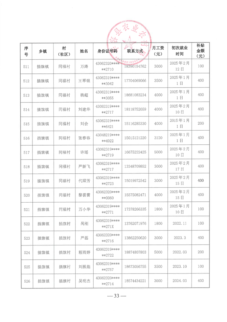 华容县2025年第一批外出务工建档立卡脱贫劳动力一次性交通补助名单公示