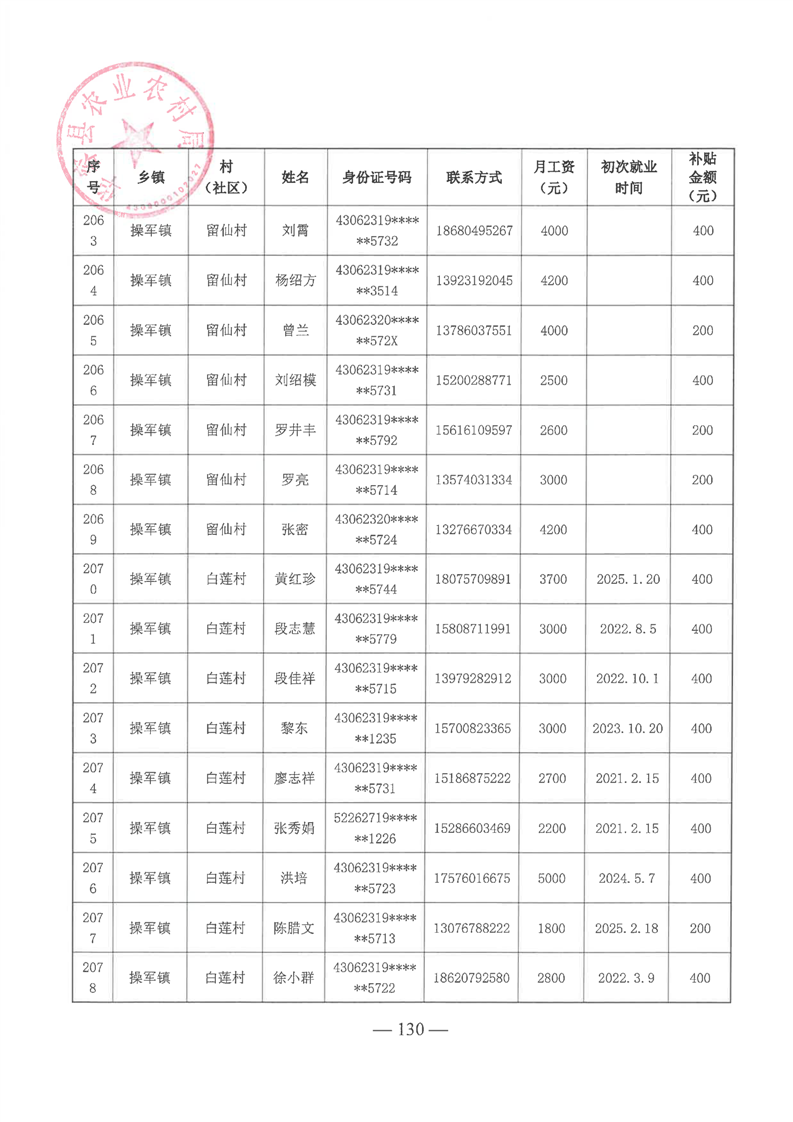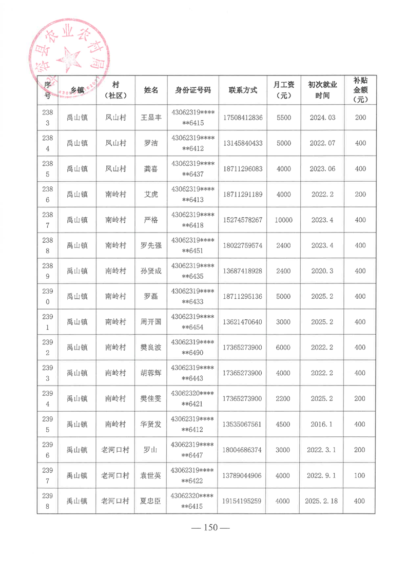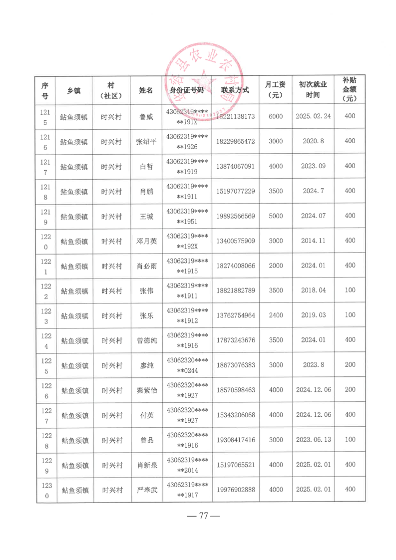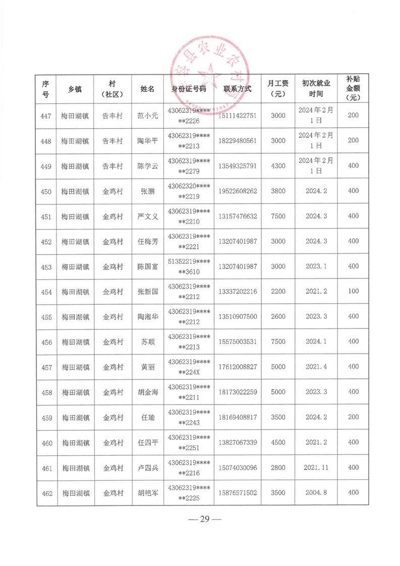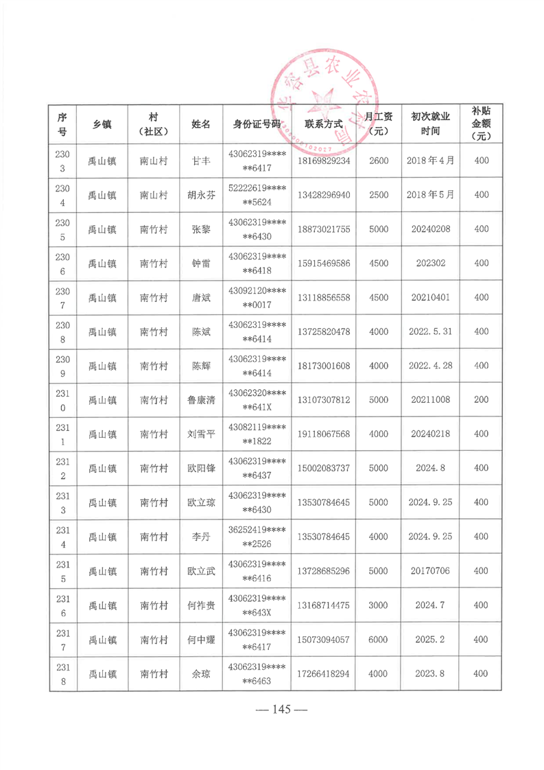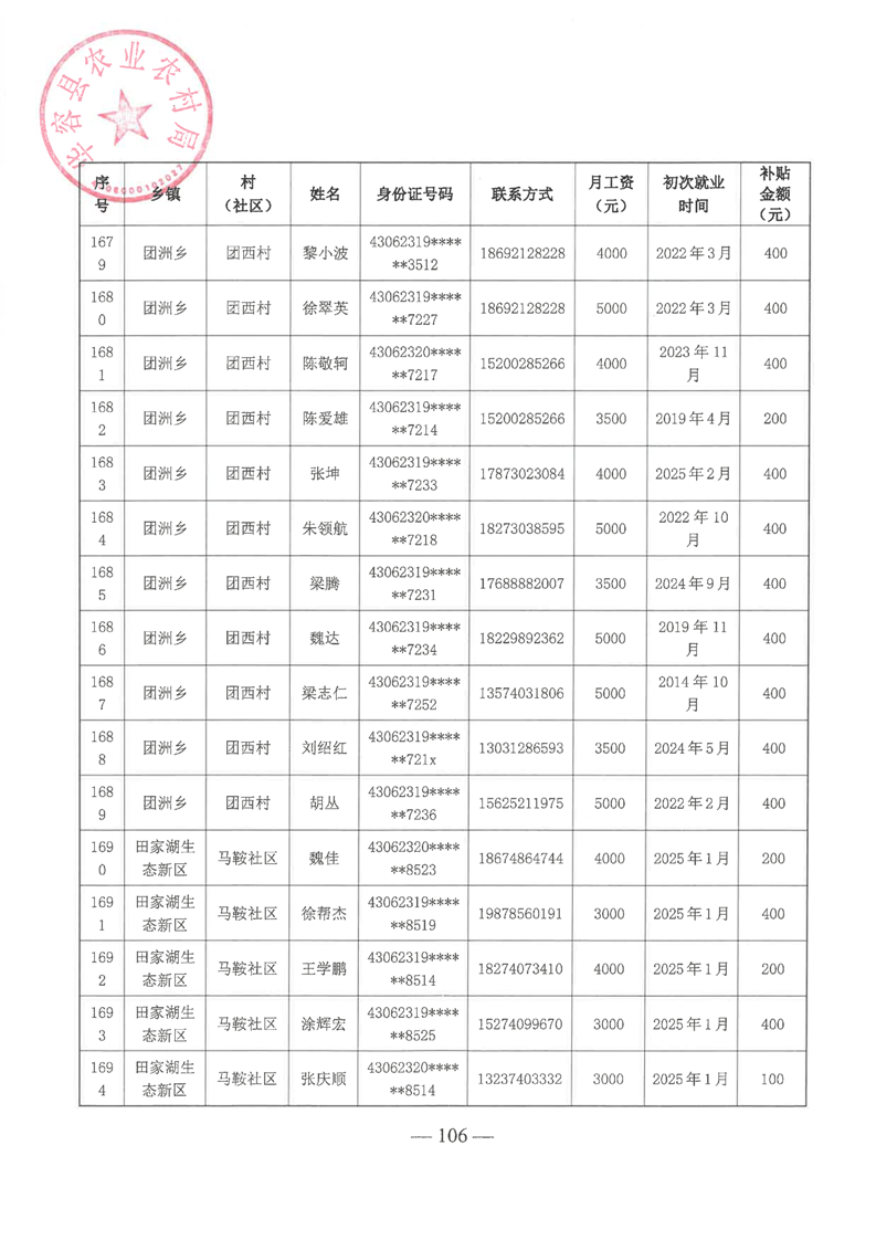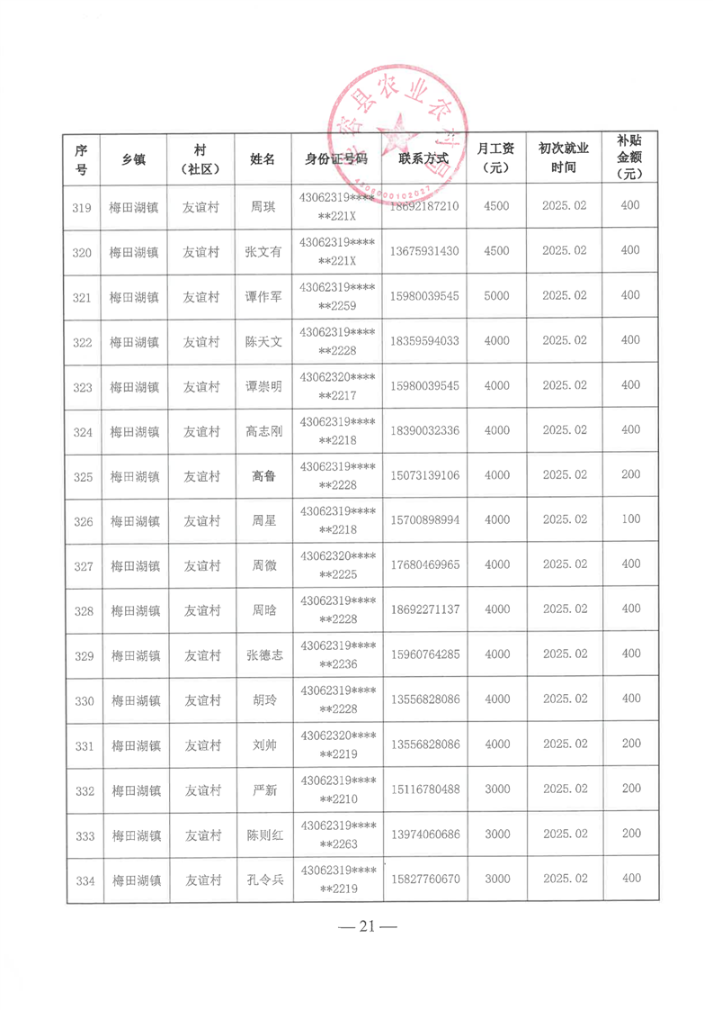 华容县2025年第一批外出务工建档立卡脱贫劳动力一次性交通补助名单公示