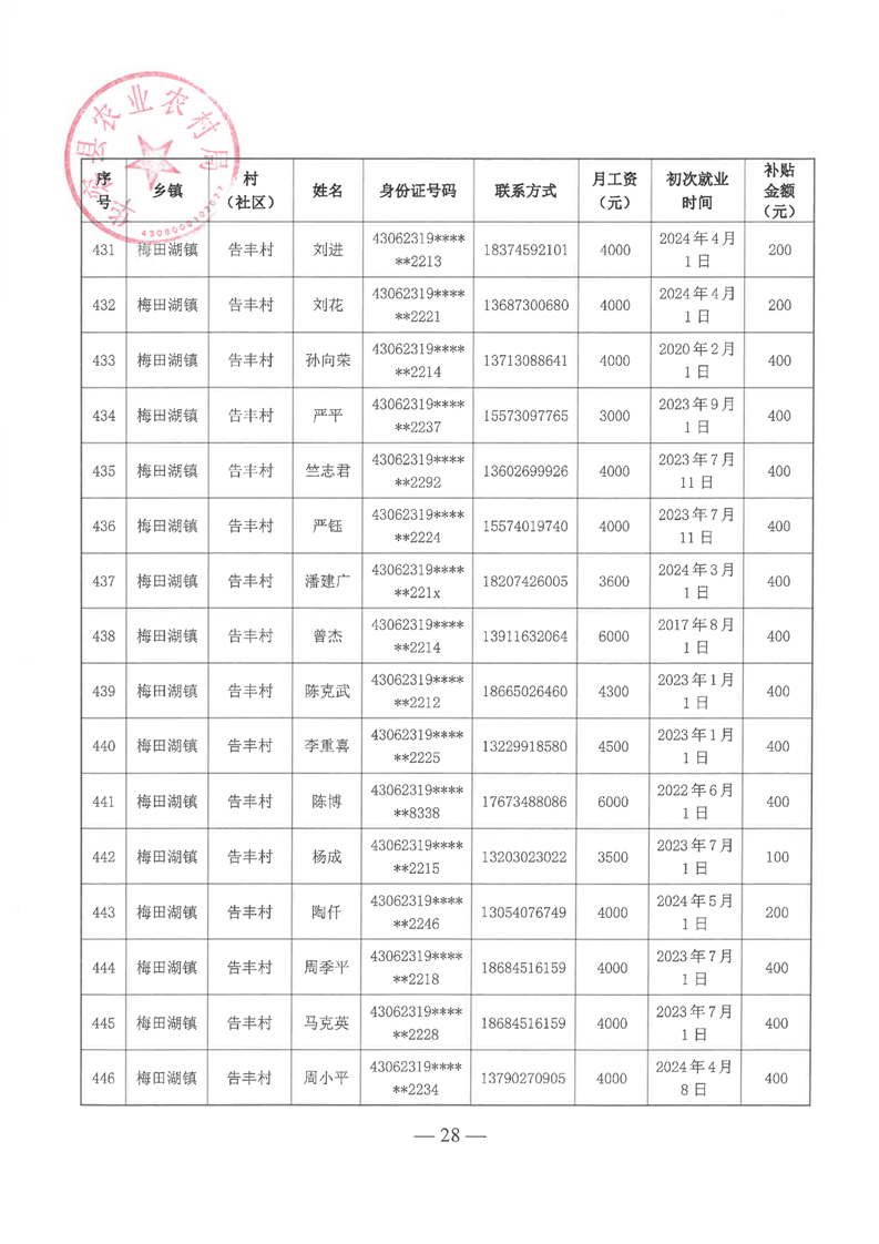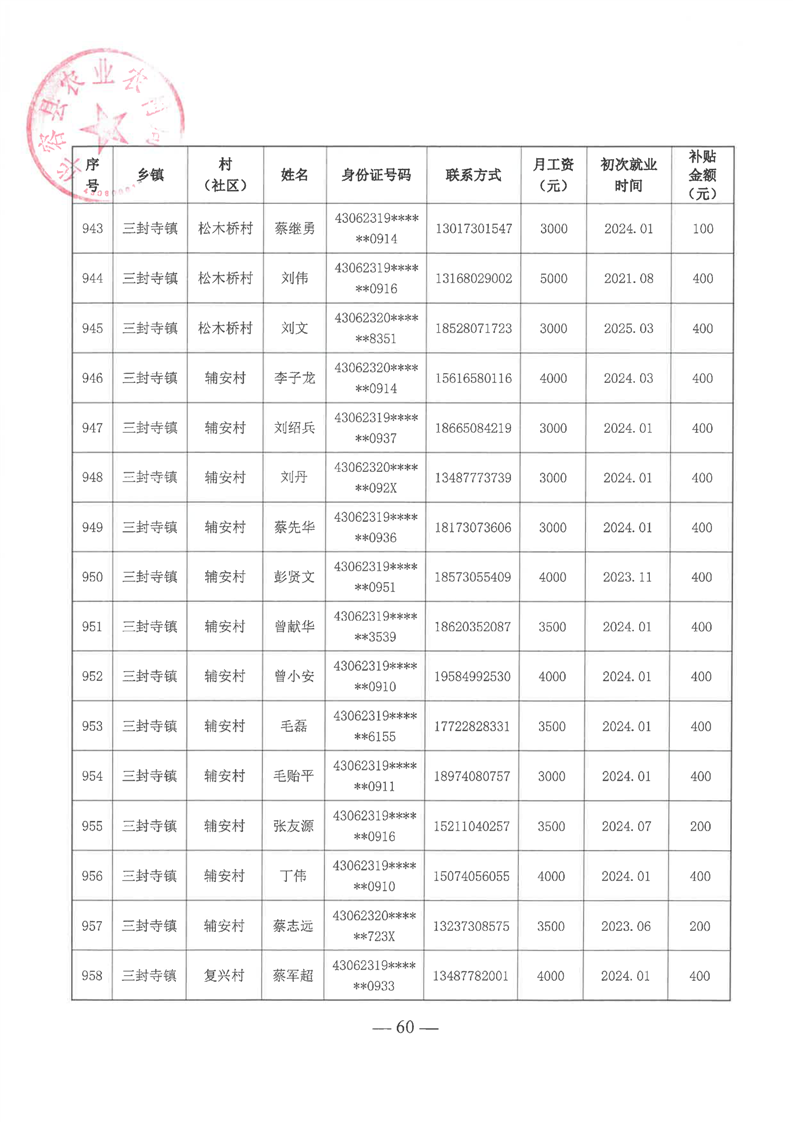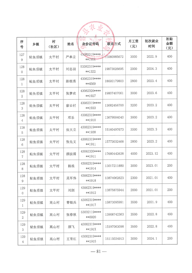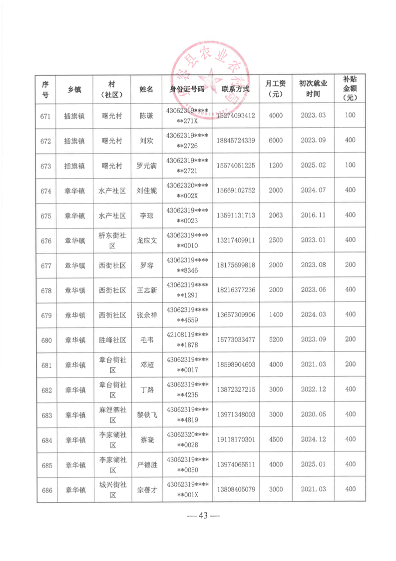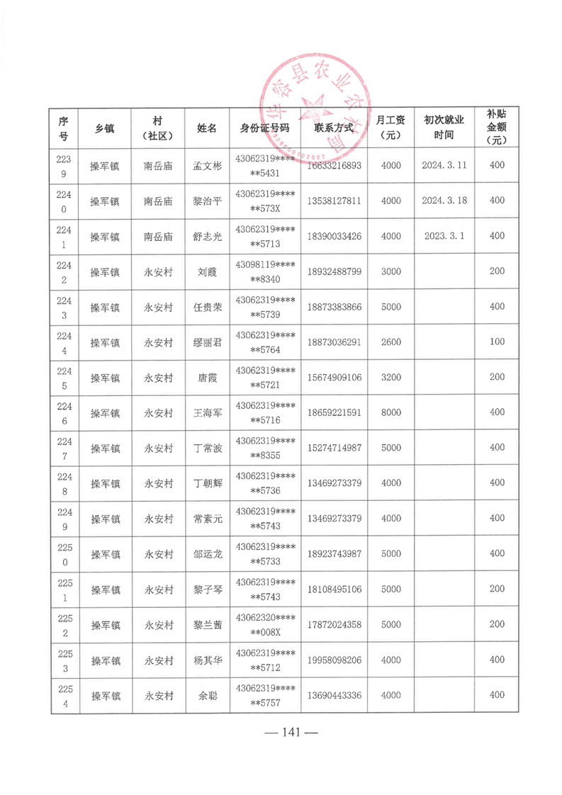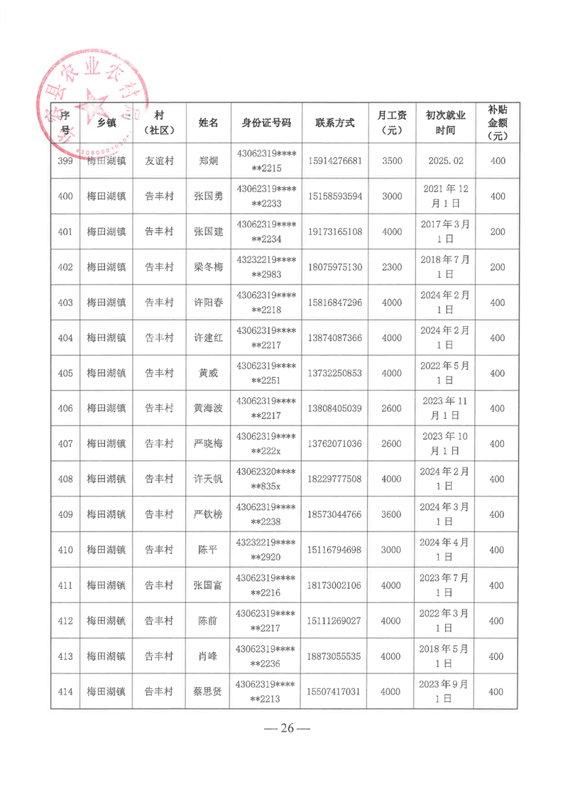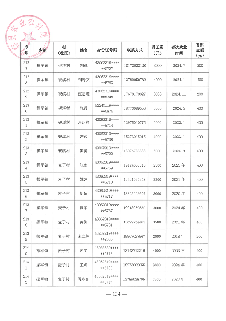 华容县2025年第一批外出务工建档立卡脱贫劳动力一次性交通补助名单公示