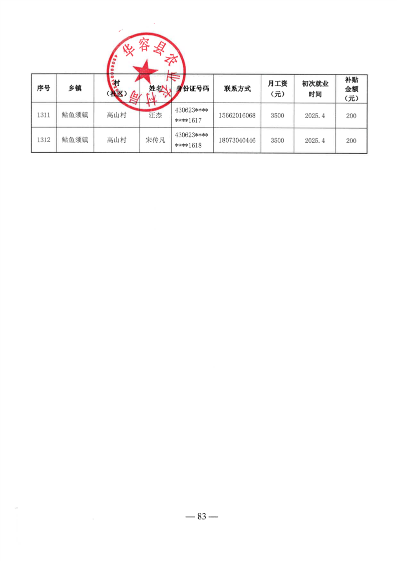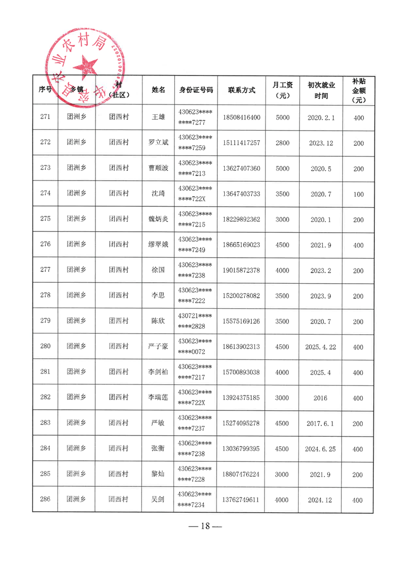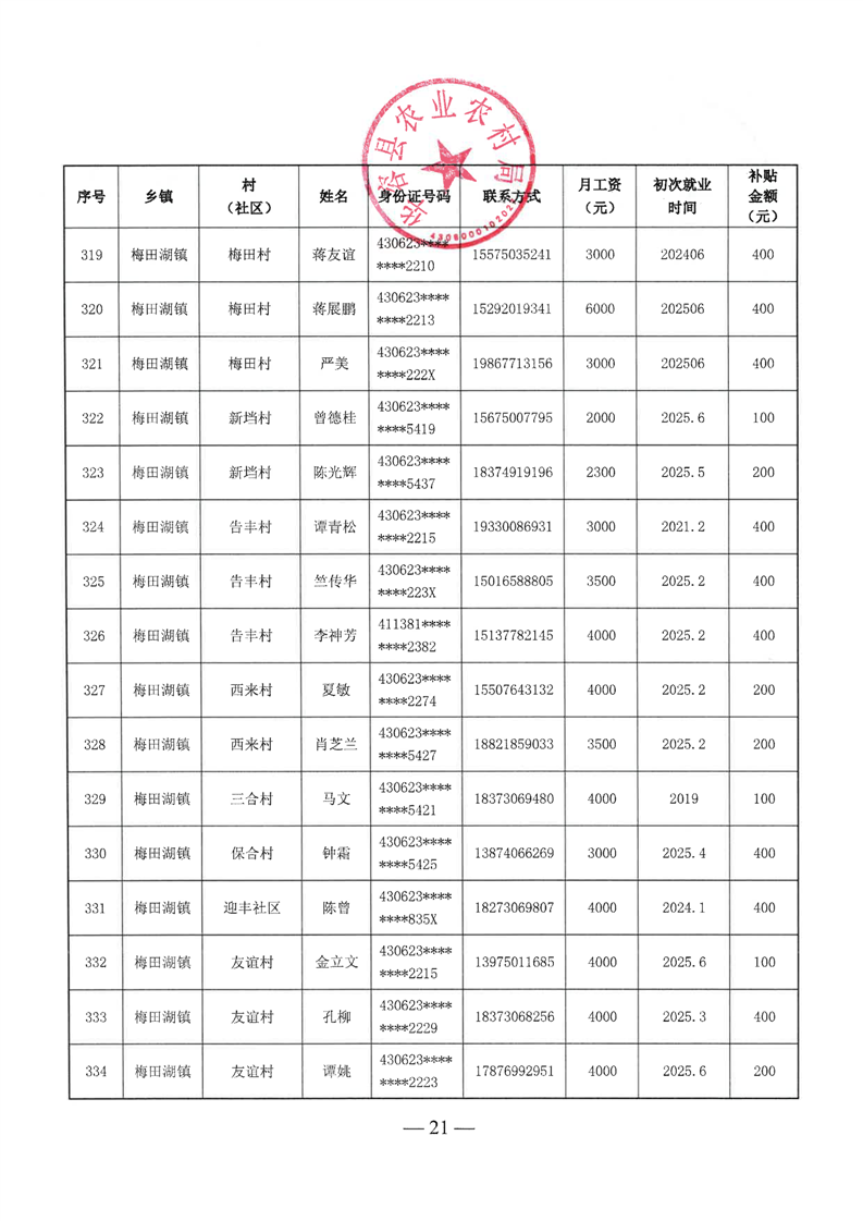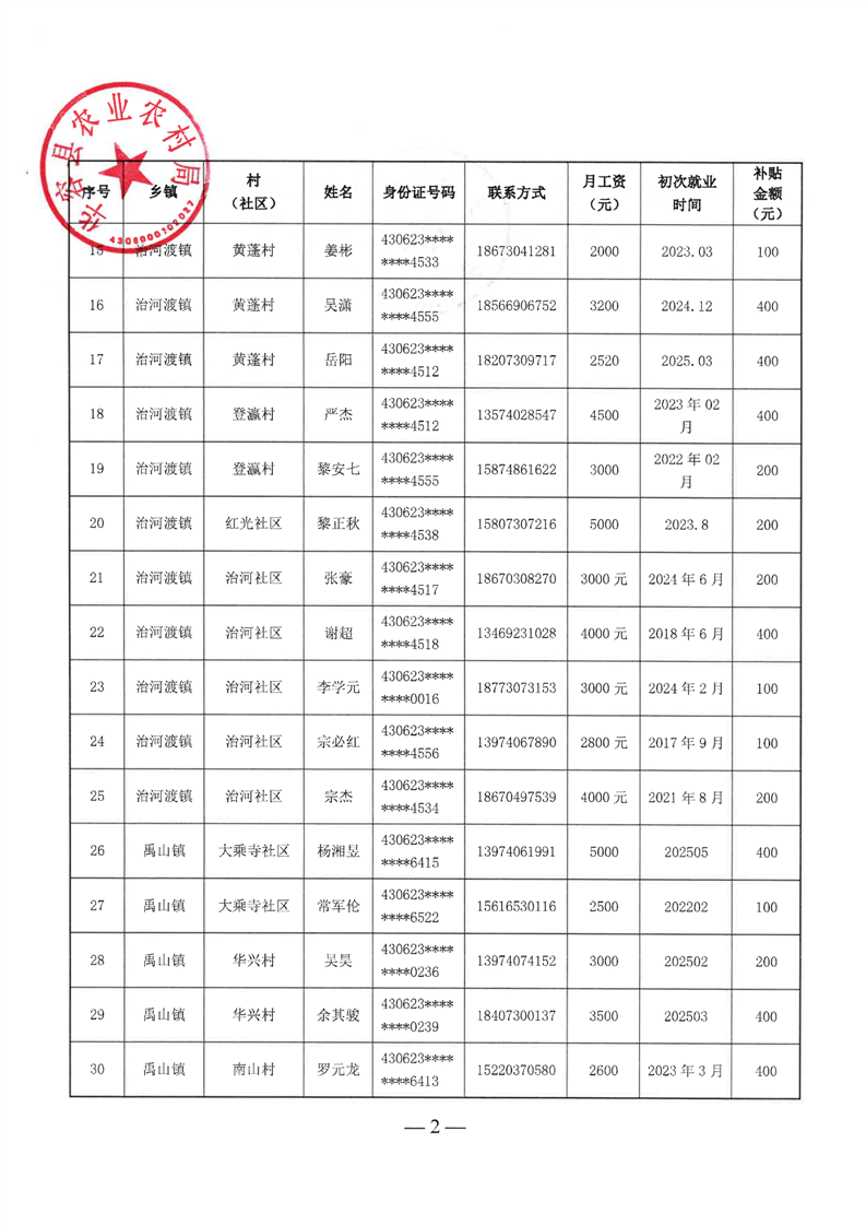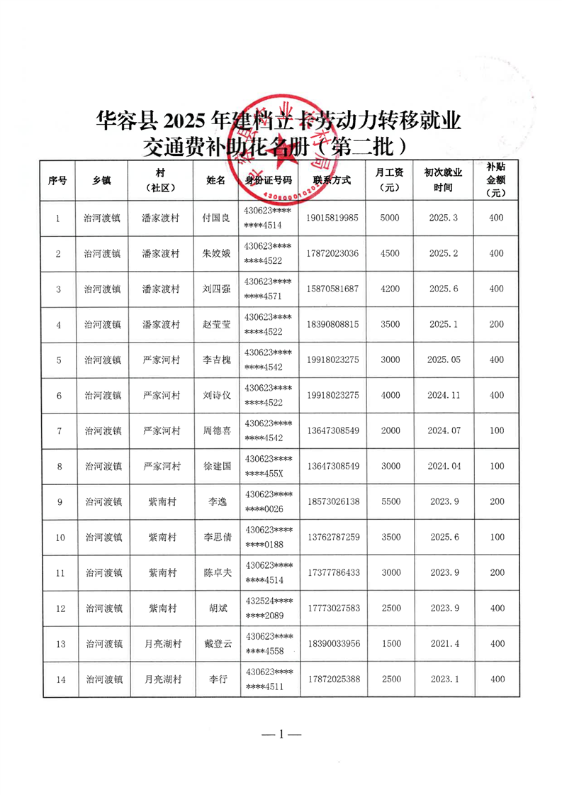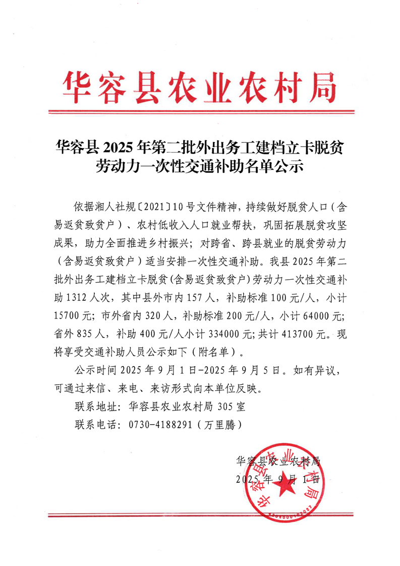 华容县2025年第二批外出务工建档立卡脱贫劳动力一次性交通补助名单公示