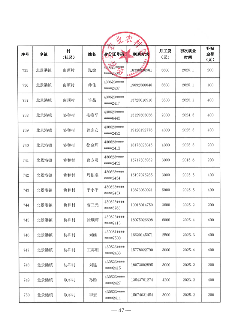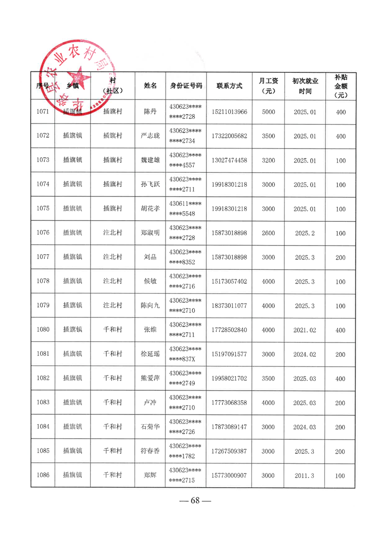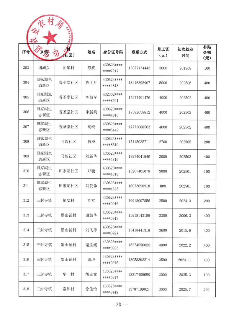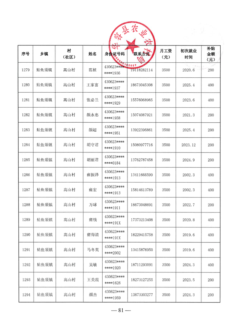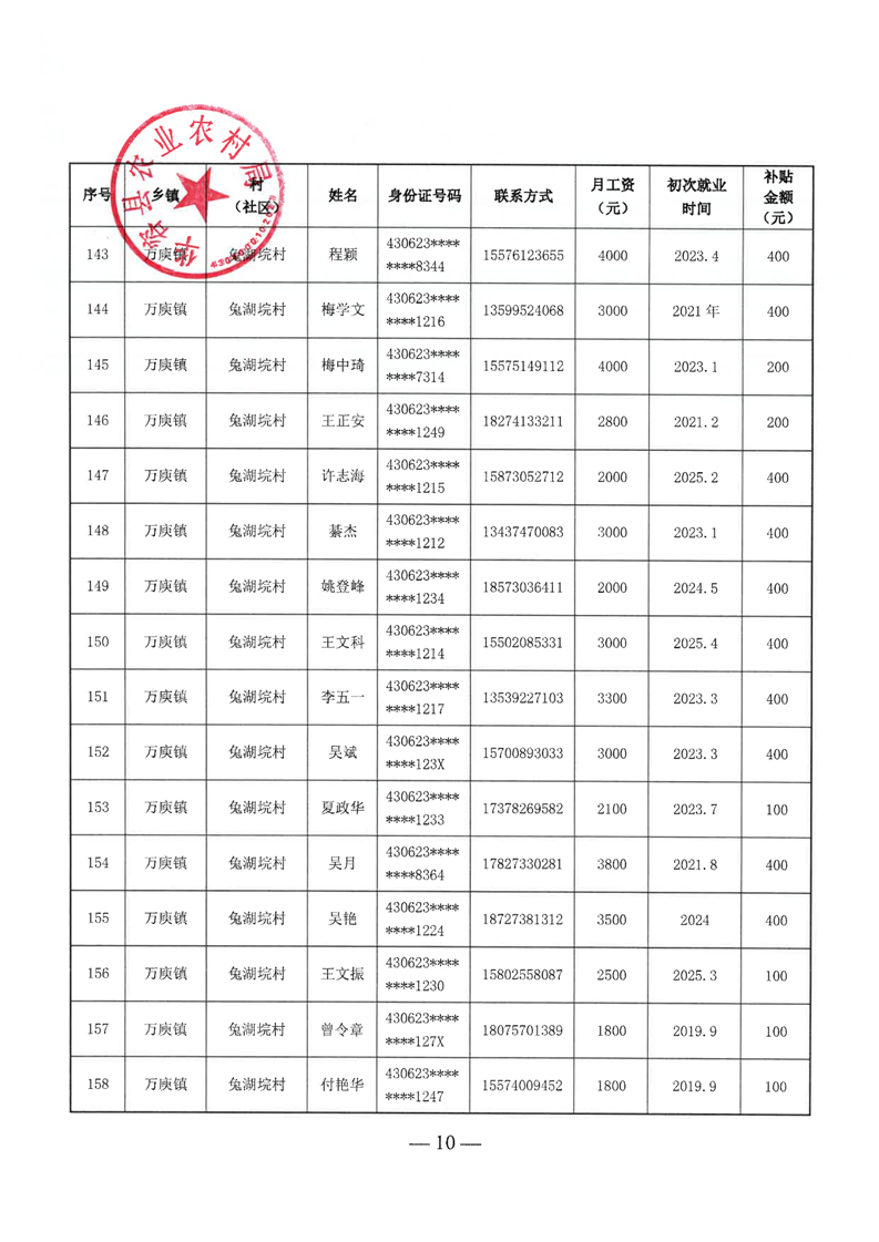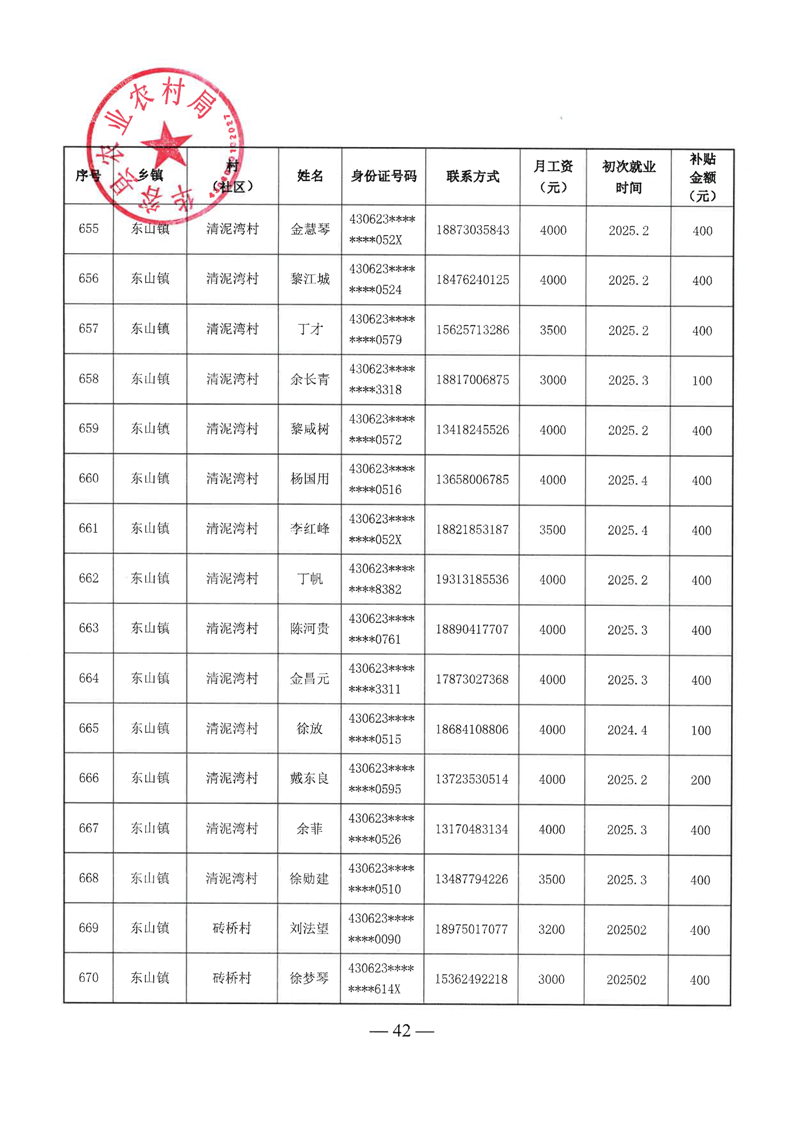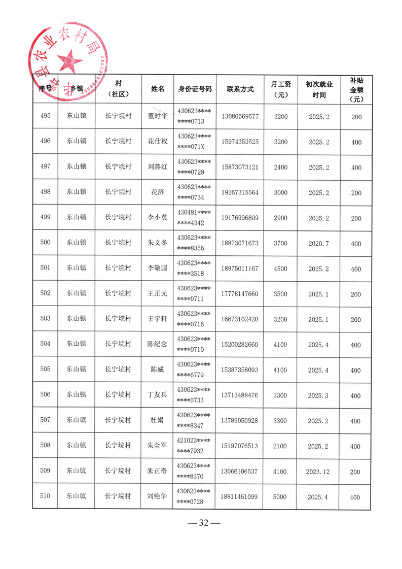 华容县2025年第二批外出务工建档立卡脱贫劳动力一次性交通补助名单公示