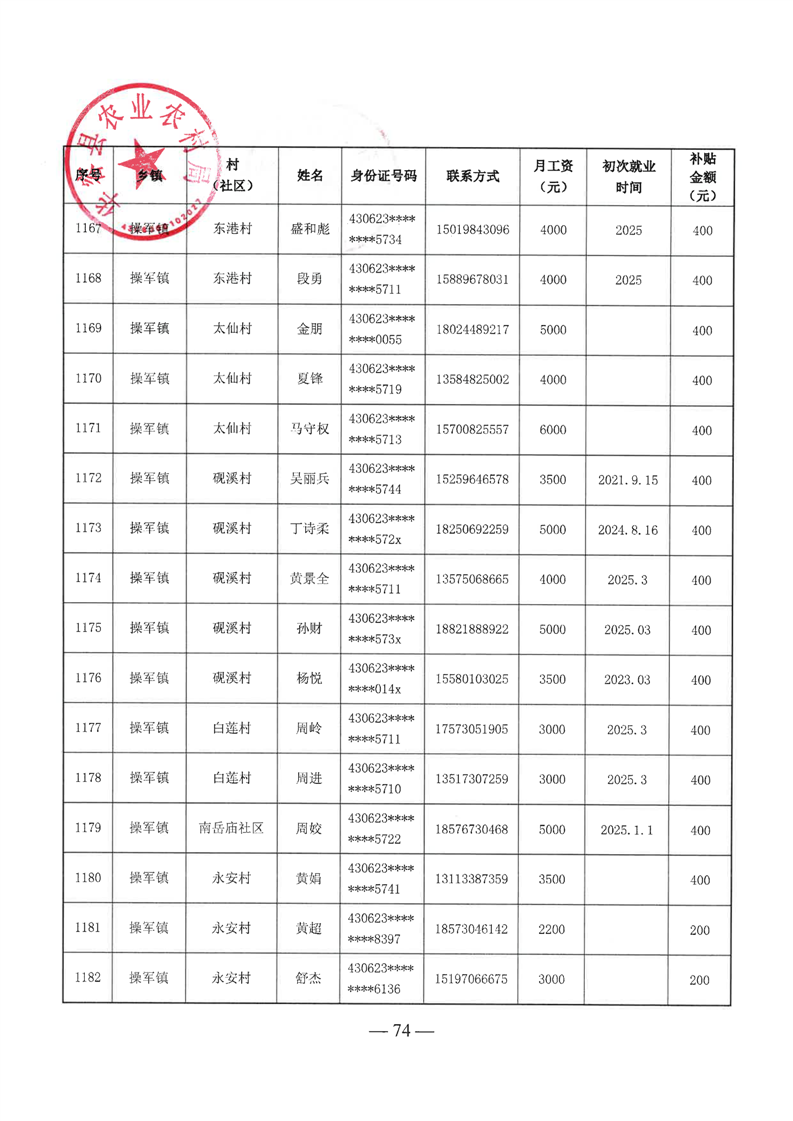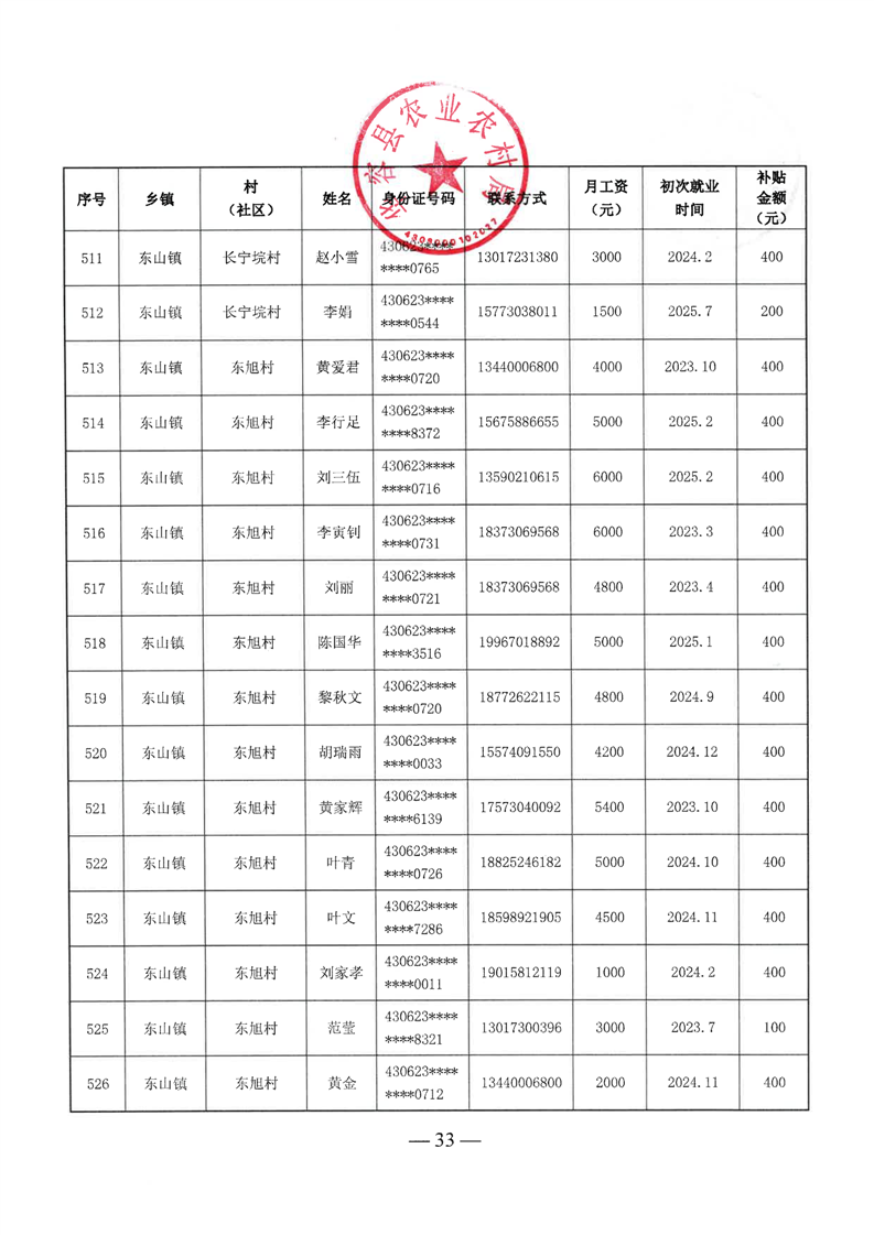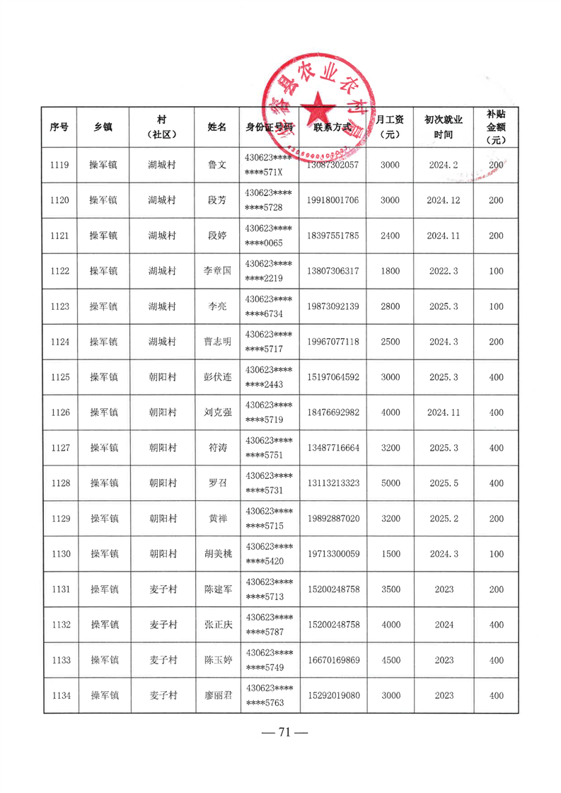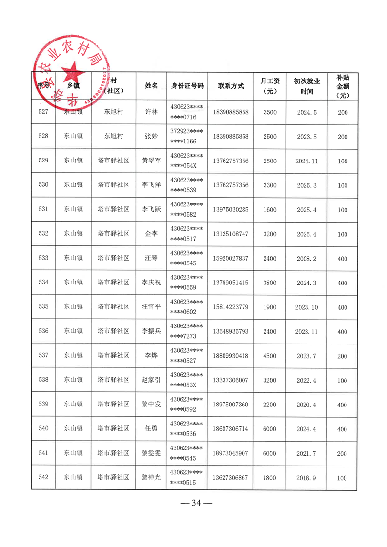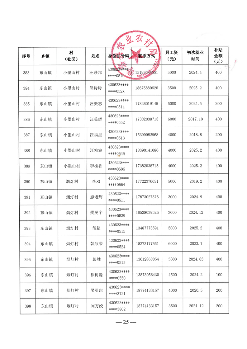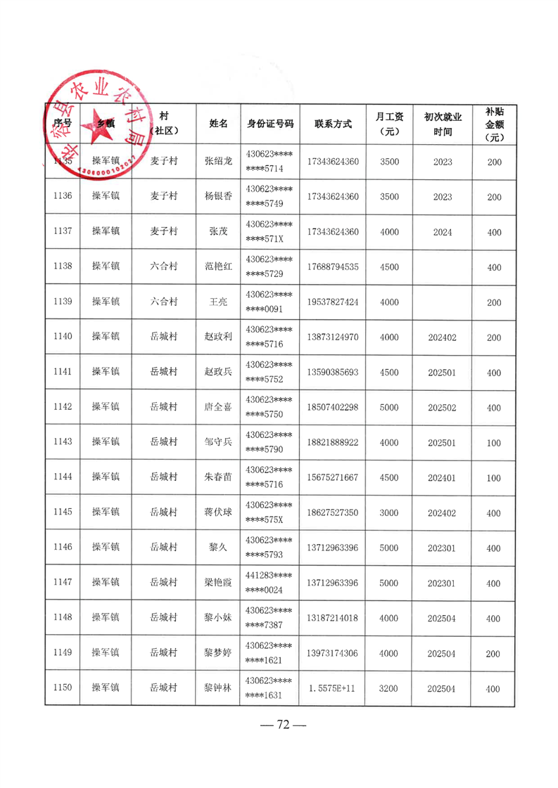 华容县2025年第二批外出务工建档立卡脱贫劳动力一次性交通补助名单公示