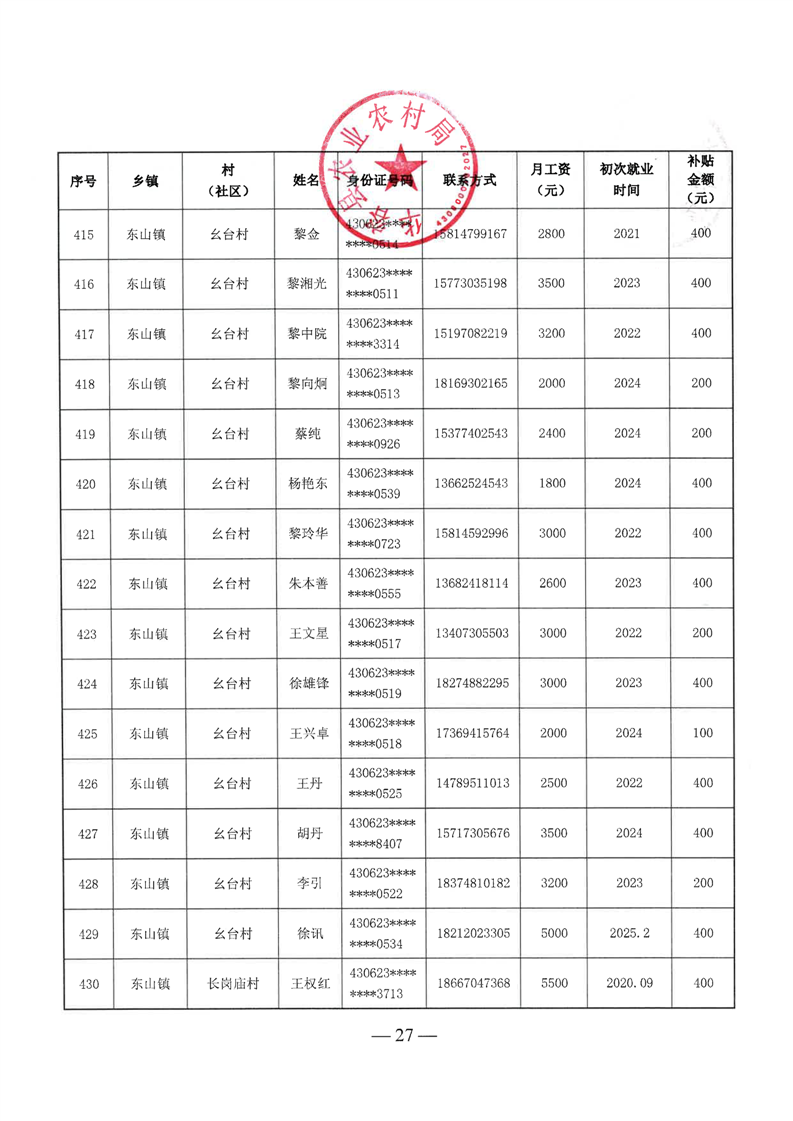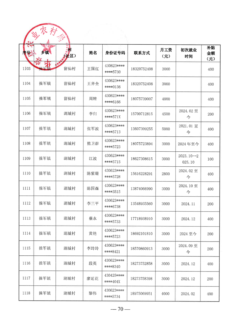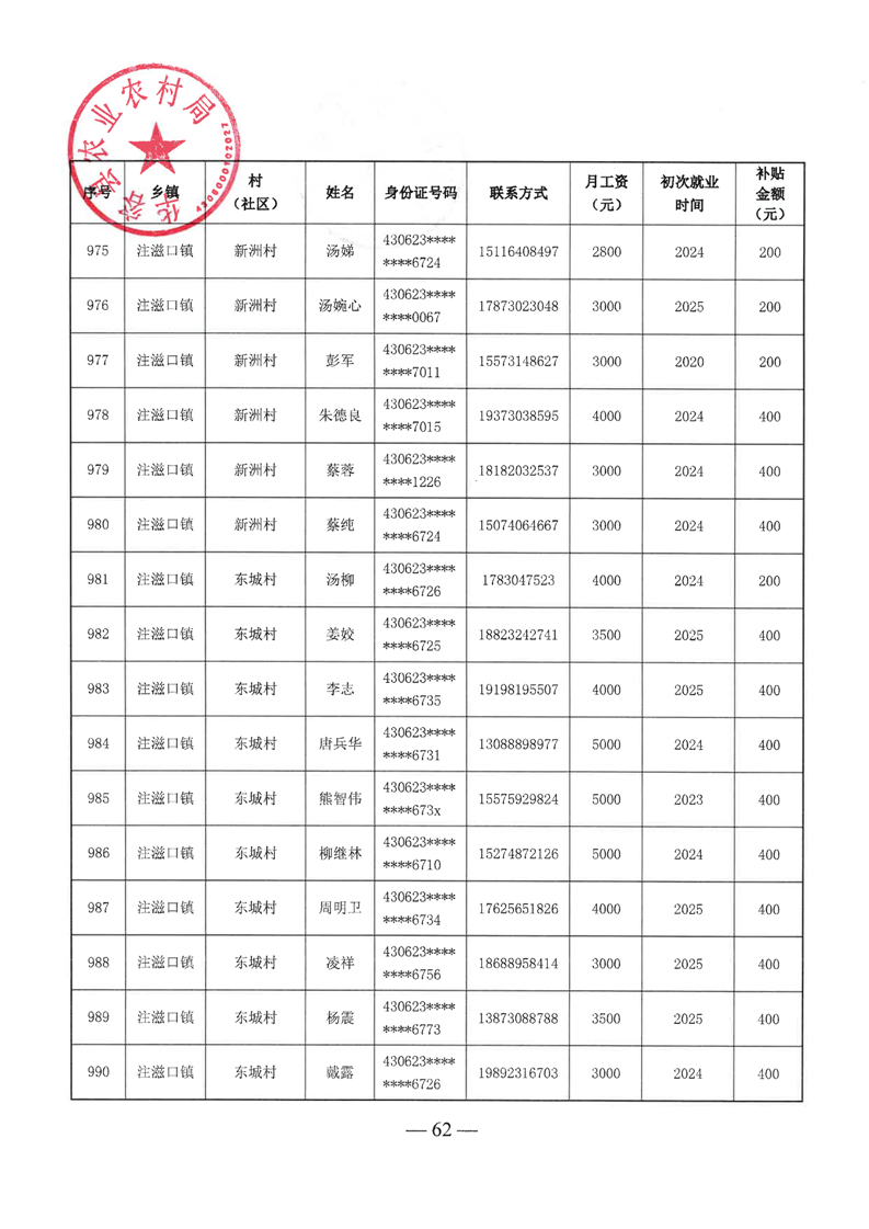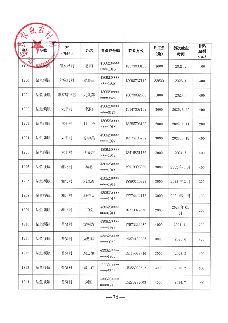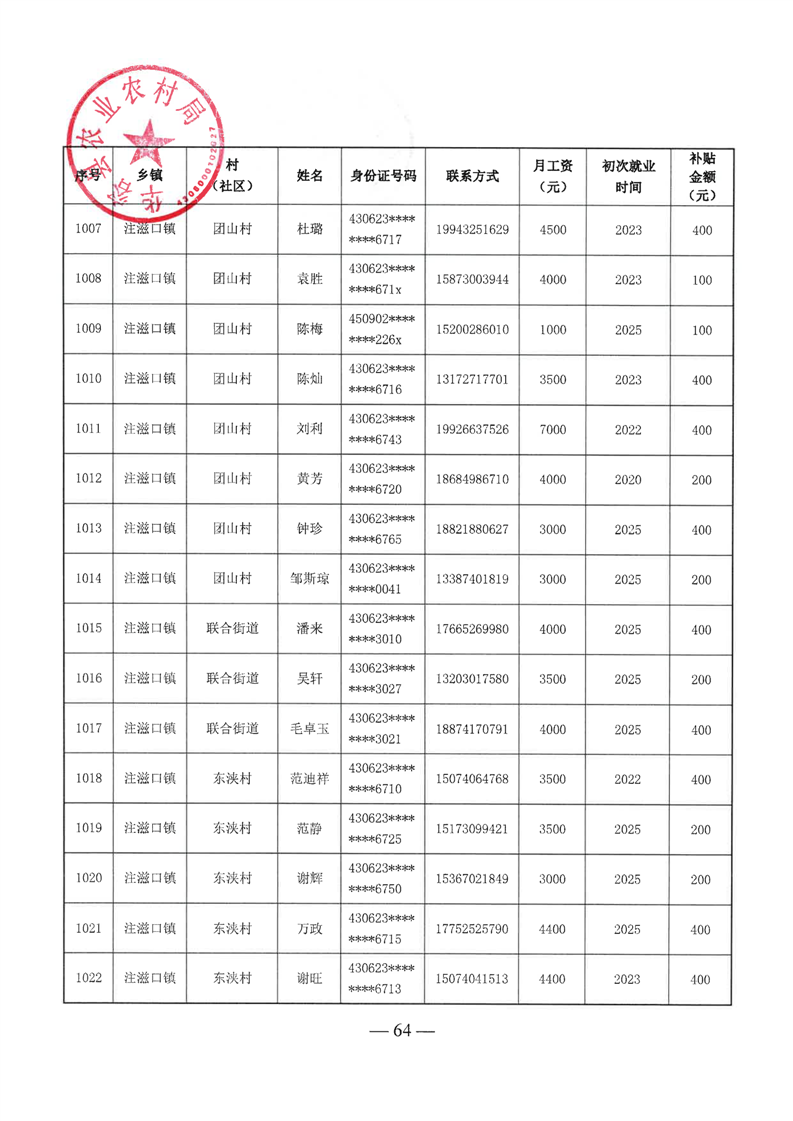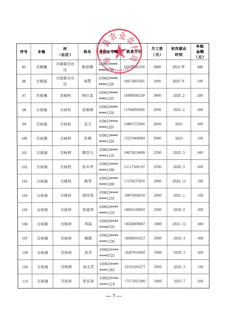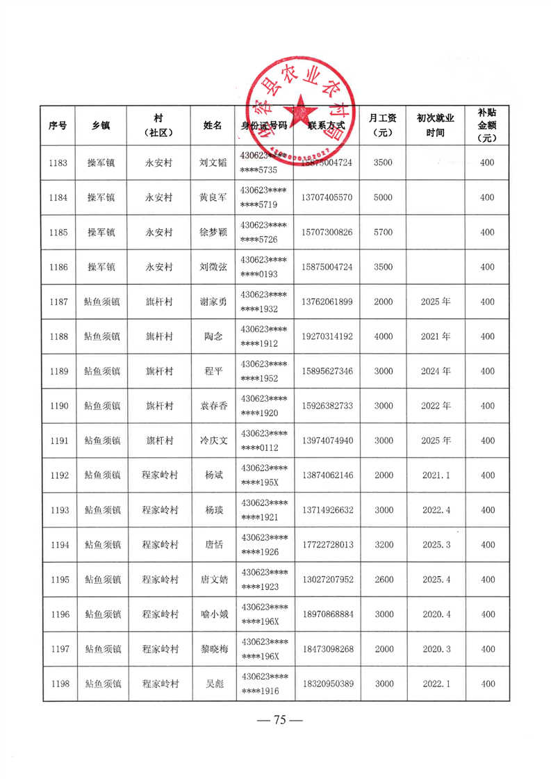 华容县2025年第二批外出务工建档立卡脱贫劳动力一次性交通补助名单公示