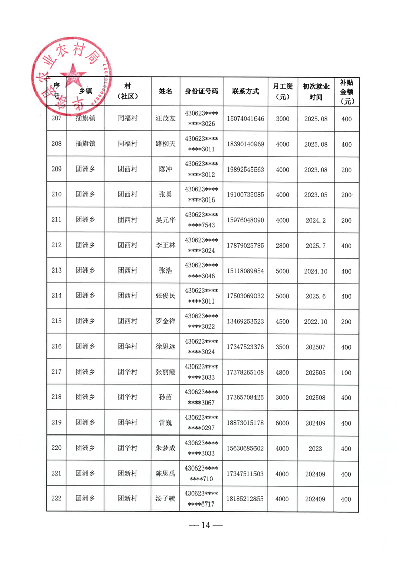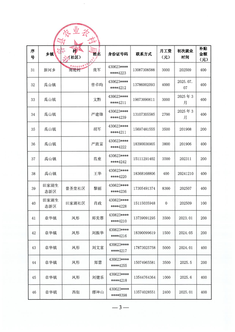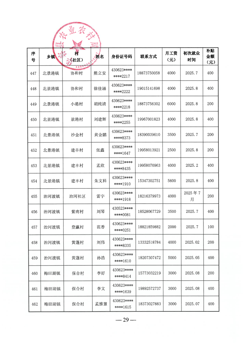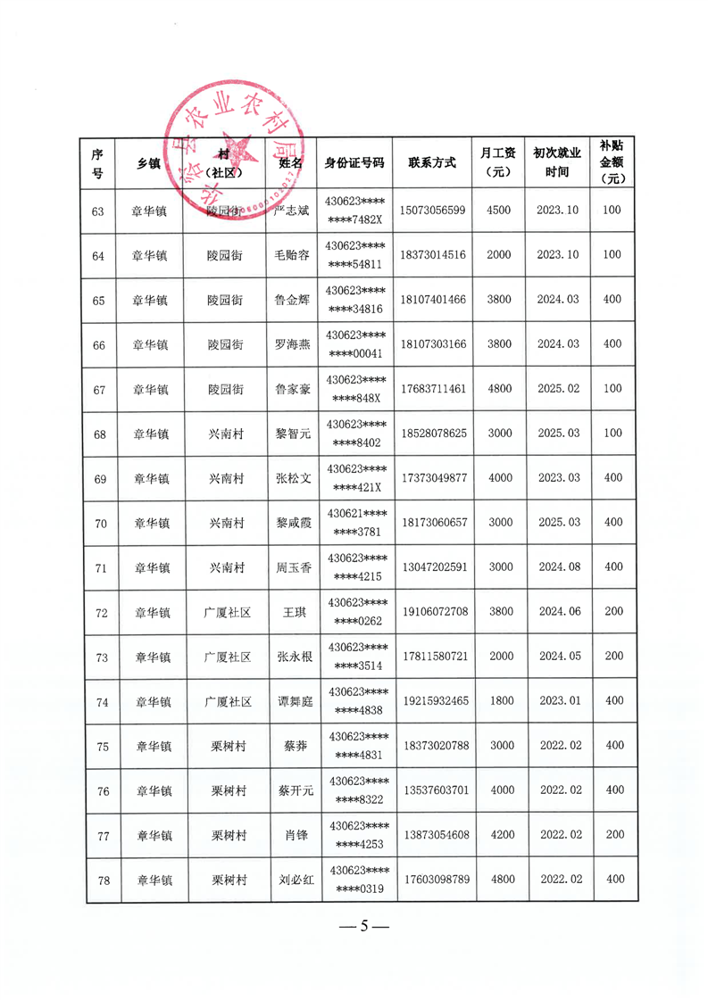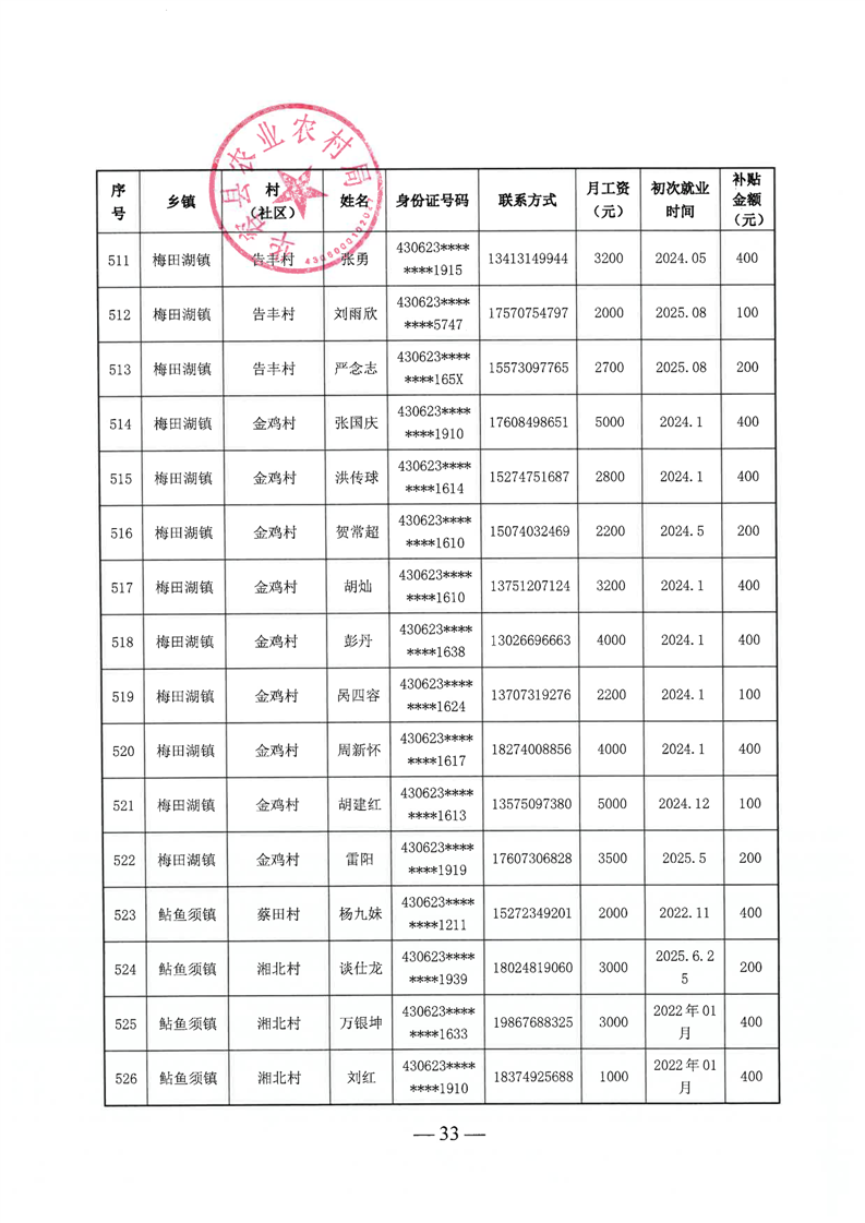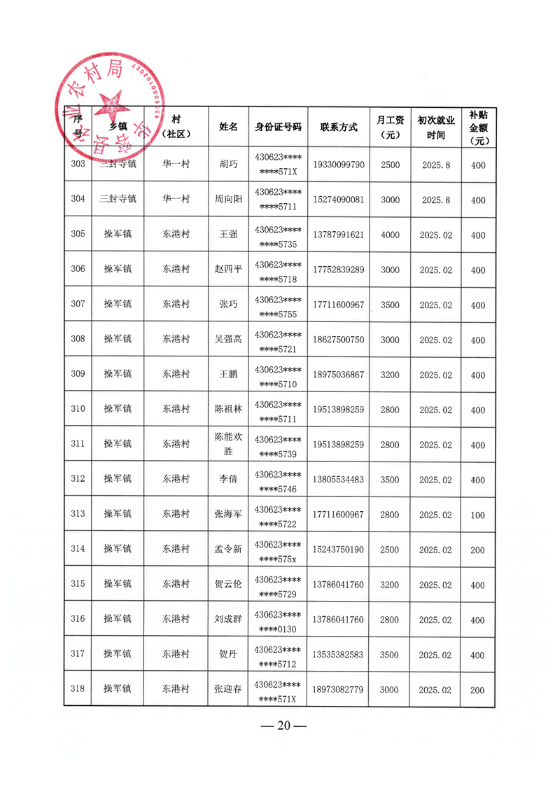 华容县2025年第三批外出务工建档立卡脱贫劳动力一次性交通补助名单公示