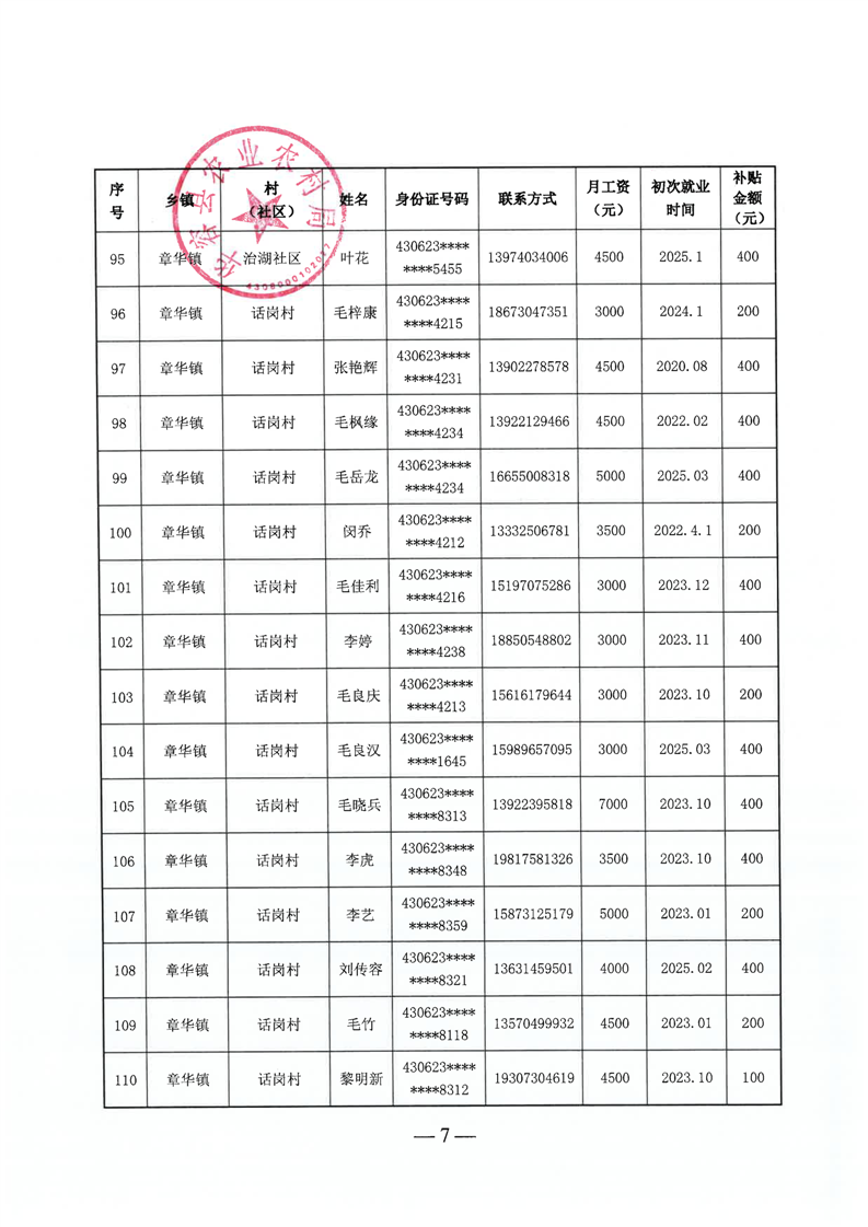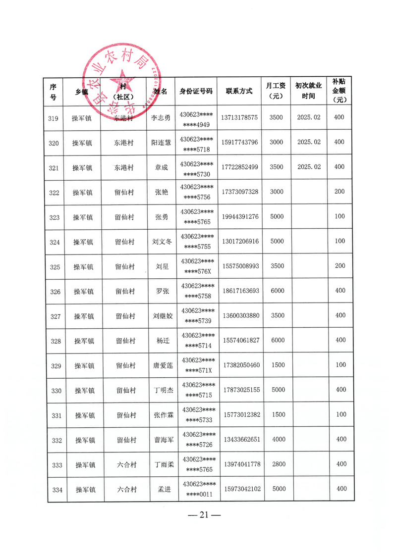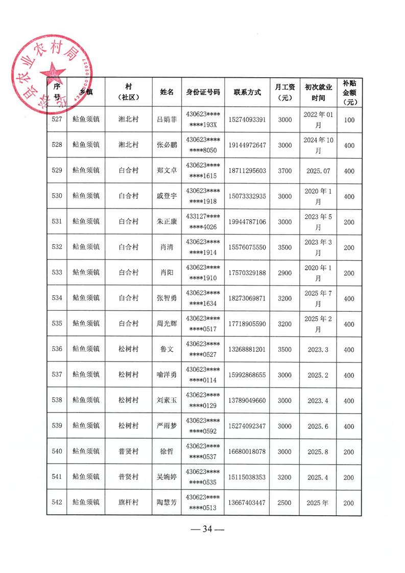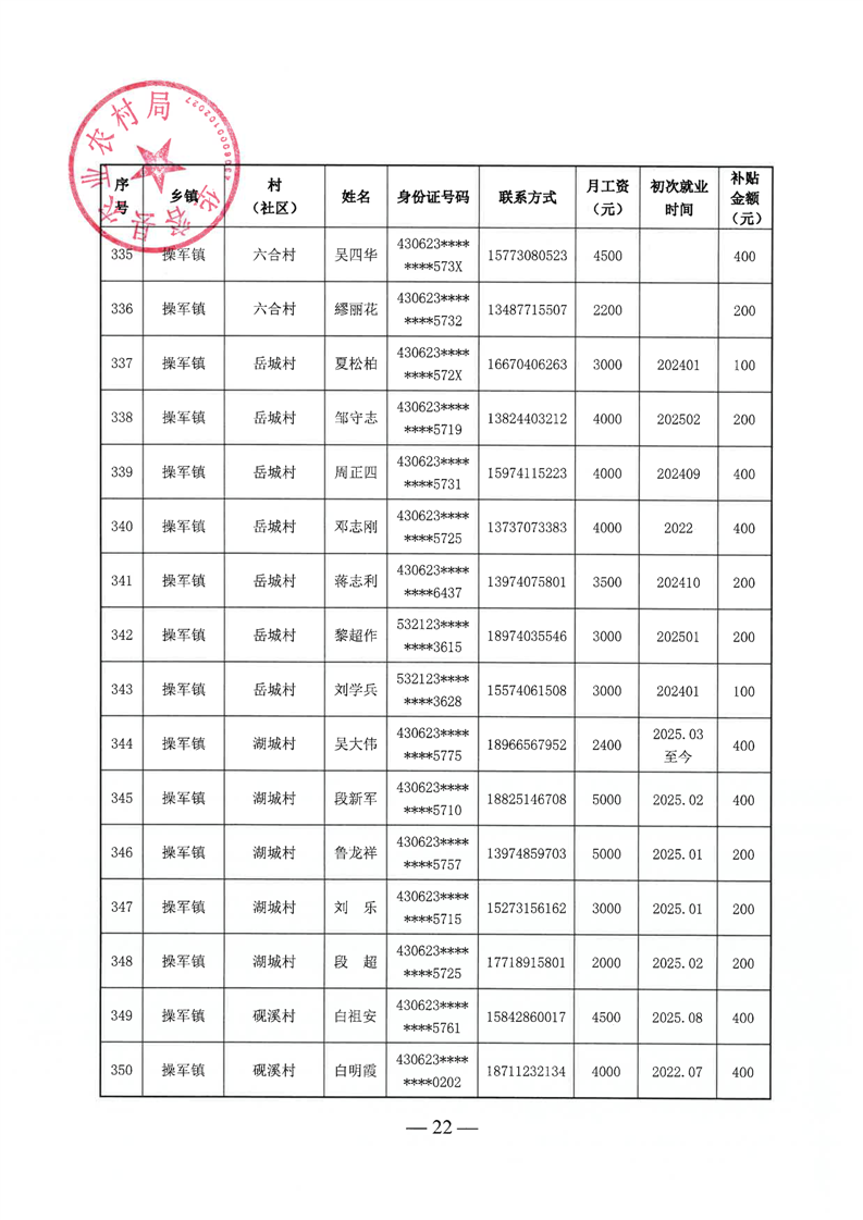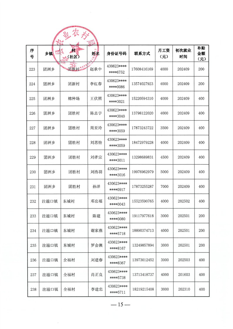 华容县2025年第三批外出务工建档立卡脱贫劳动力一次性交通补助名单公示