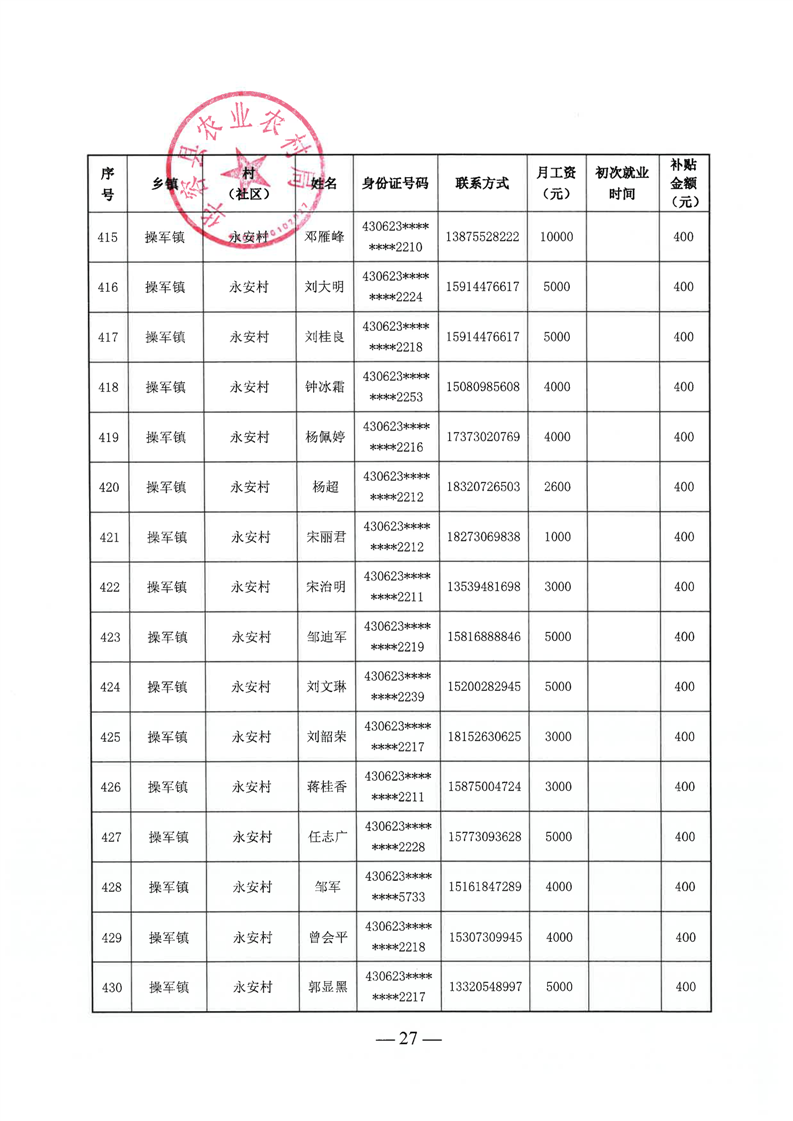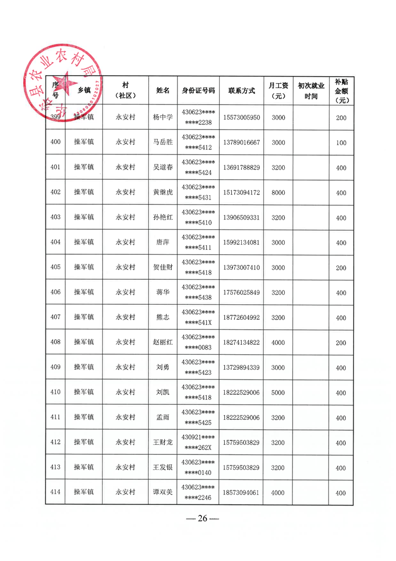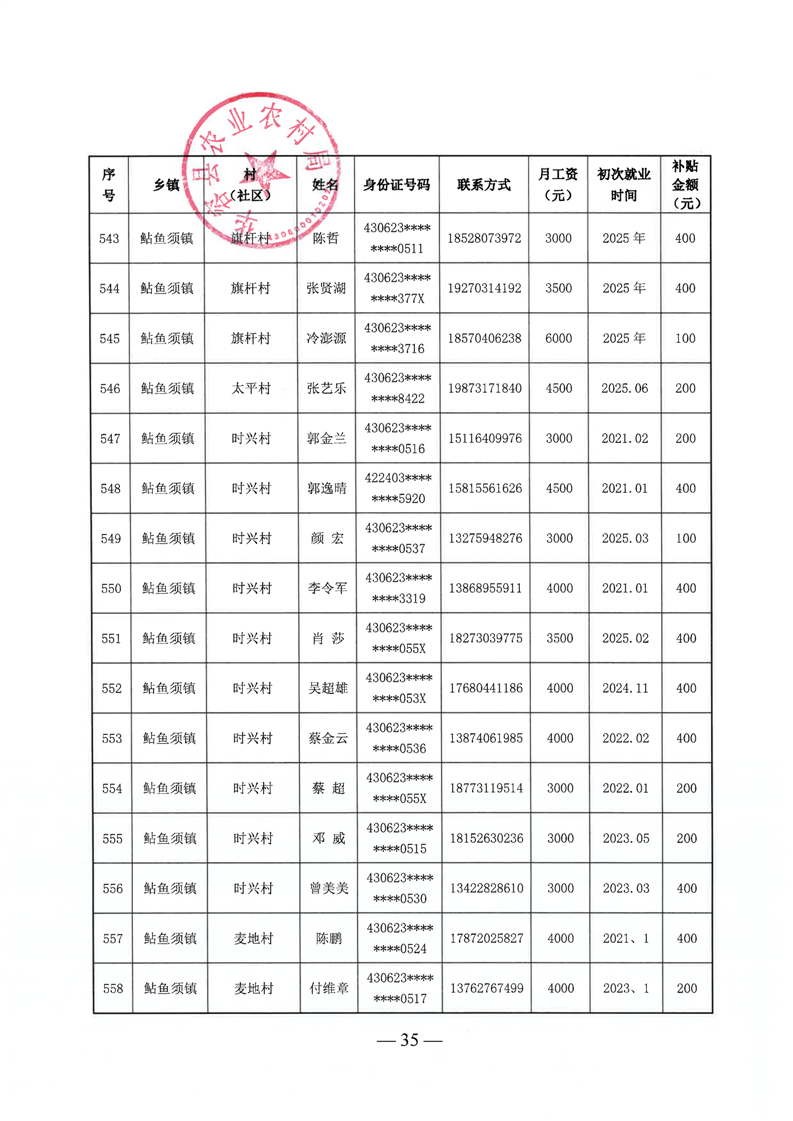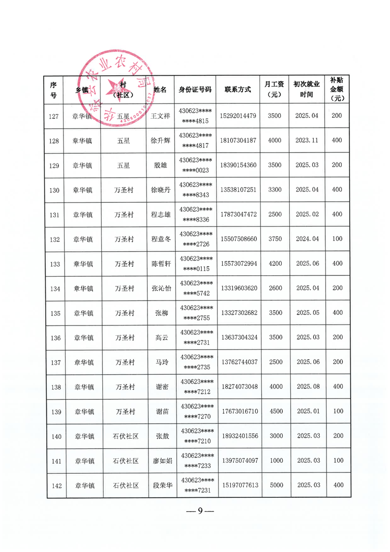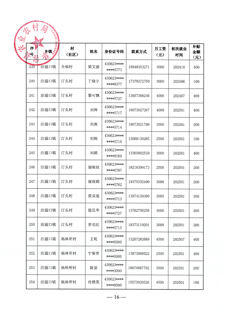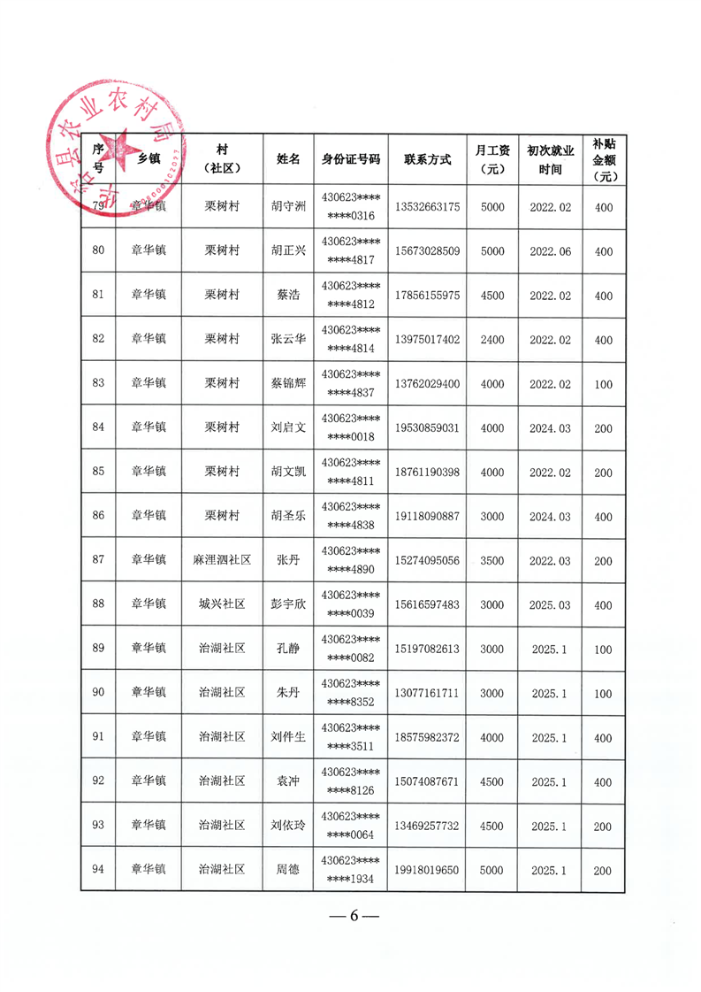 华容县2025年第三批外出务工建档立卡脱贫劳动力一次性交通补助名单公示