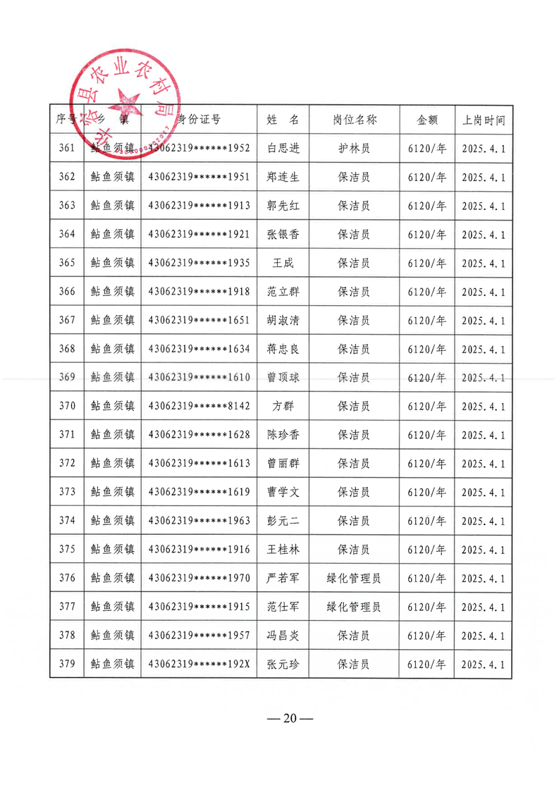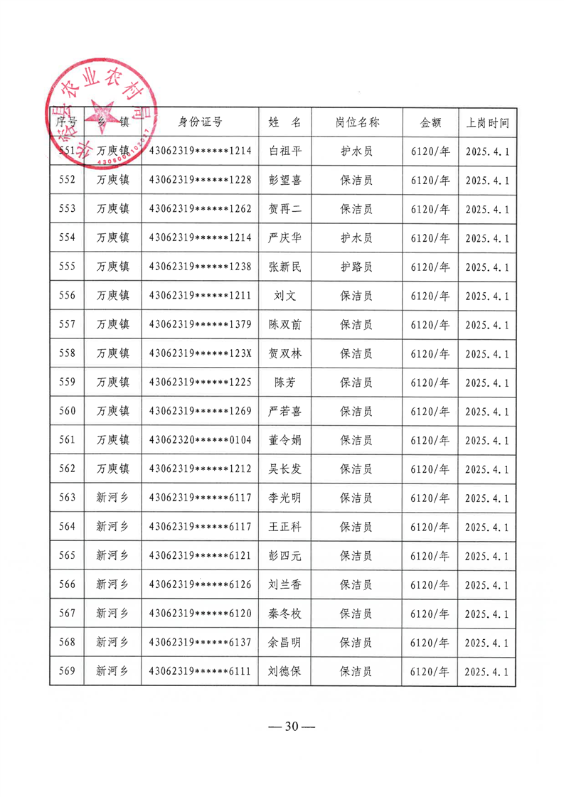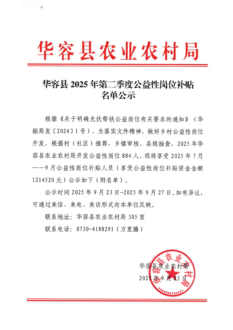 华容县2025年第二季度公益性岗位补贴名单公示