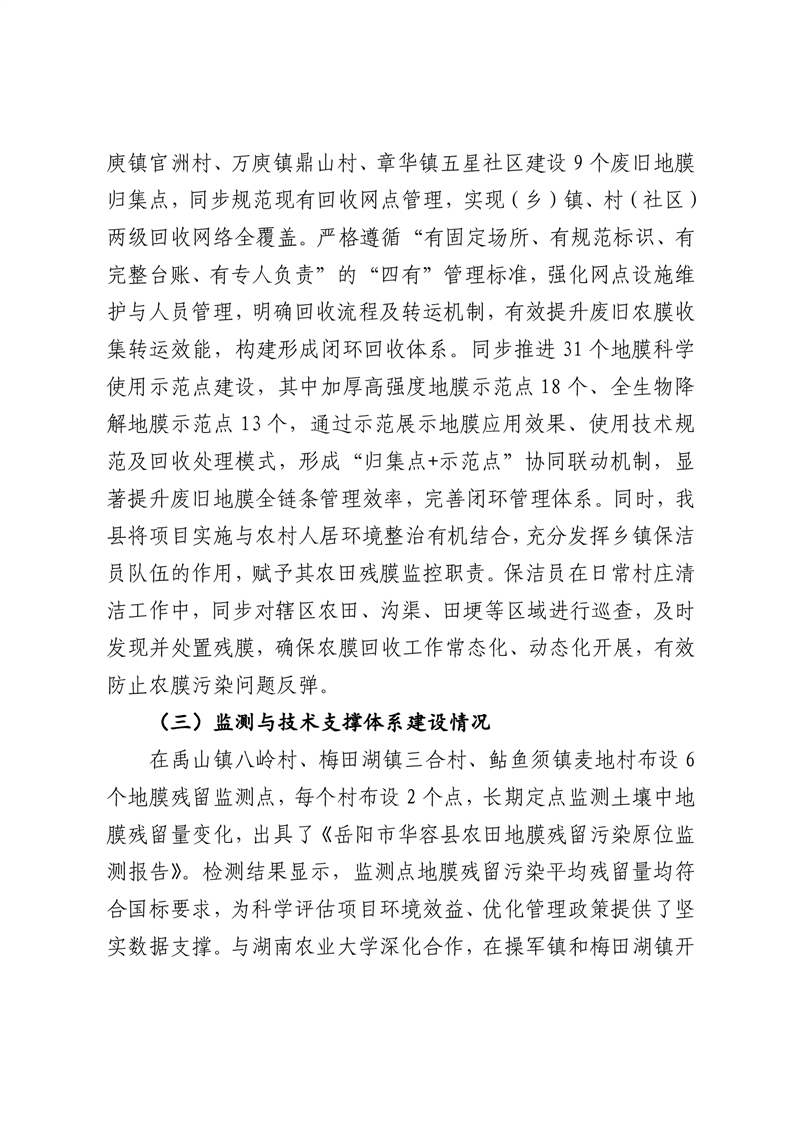 华容县2024年中央财政支持地膜科学使用回收试点项目自查报告