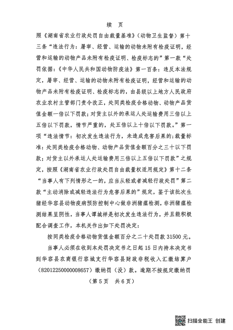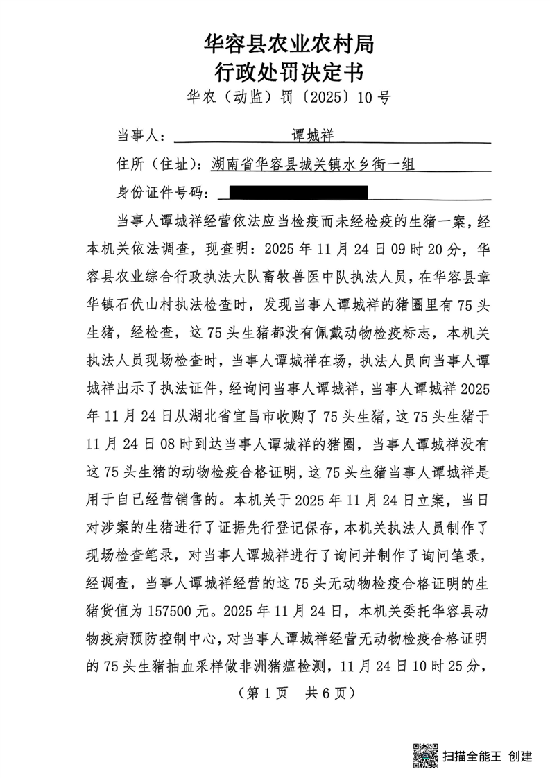 华容县农业农村局行政处罚决定书 华农(动监)罚〔2025〕10号