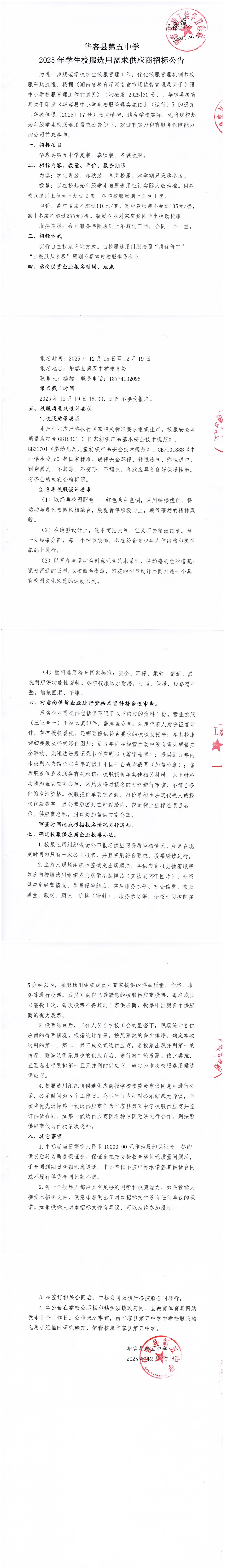 华容五中2025年学生校服选用需求供应商招标公告.pdf