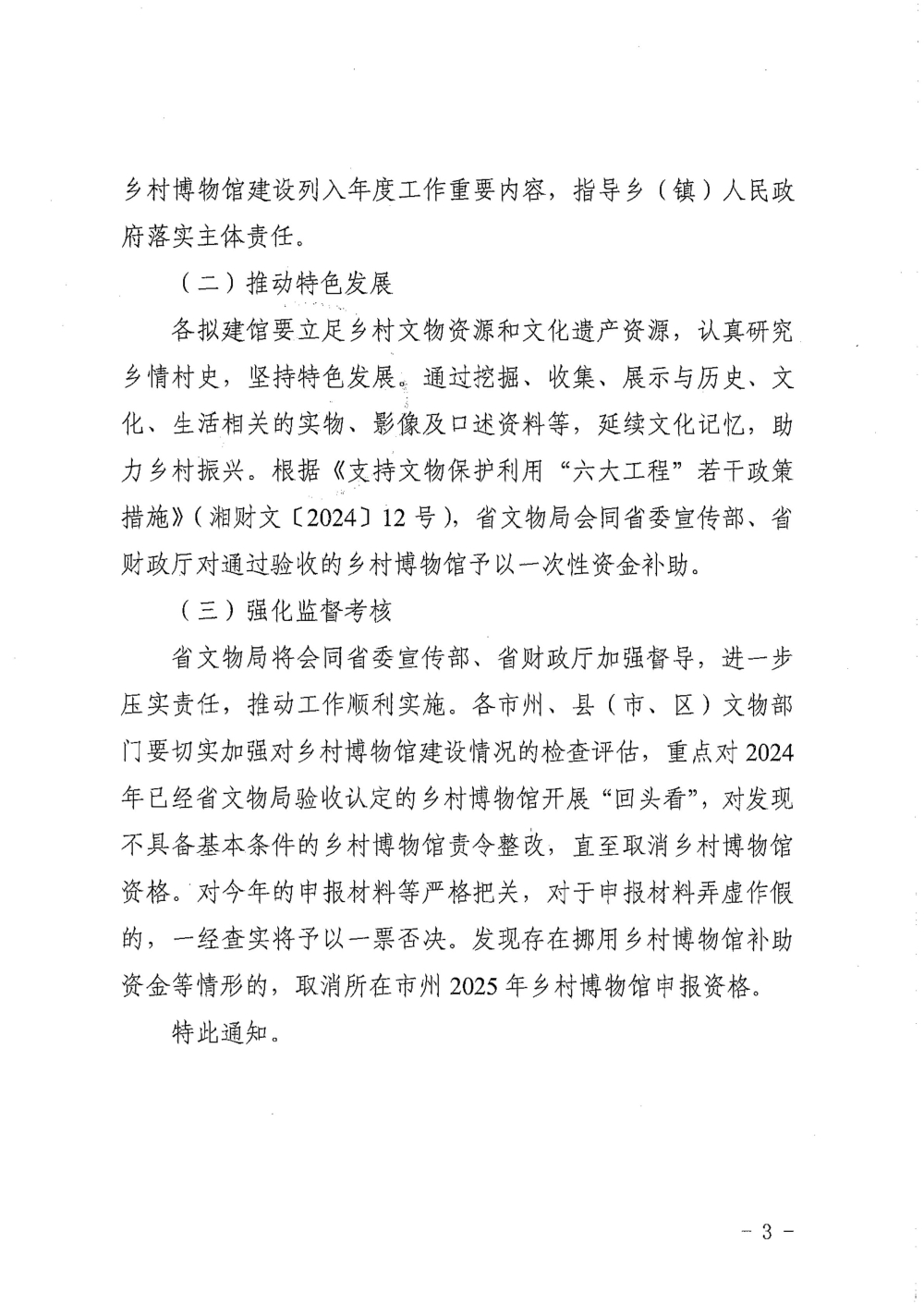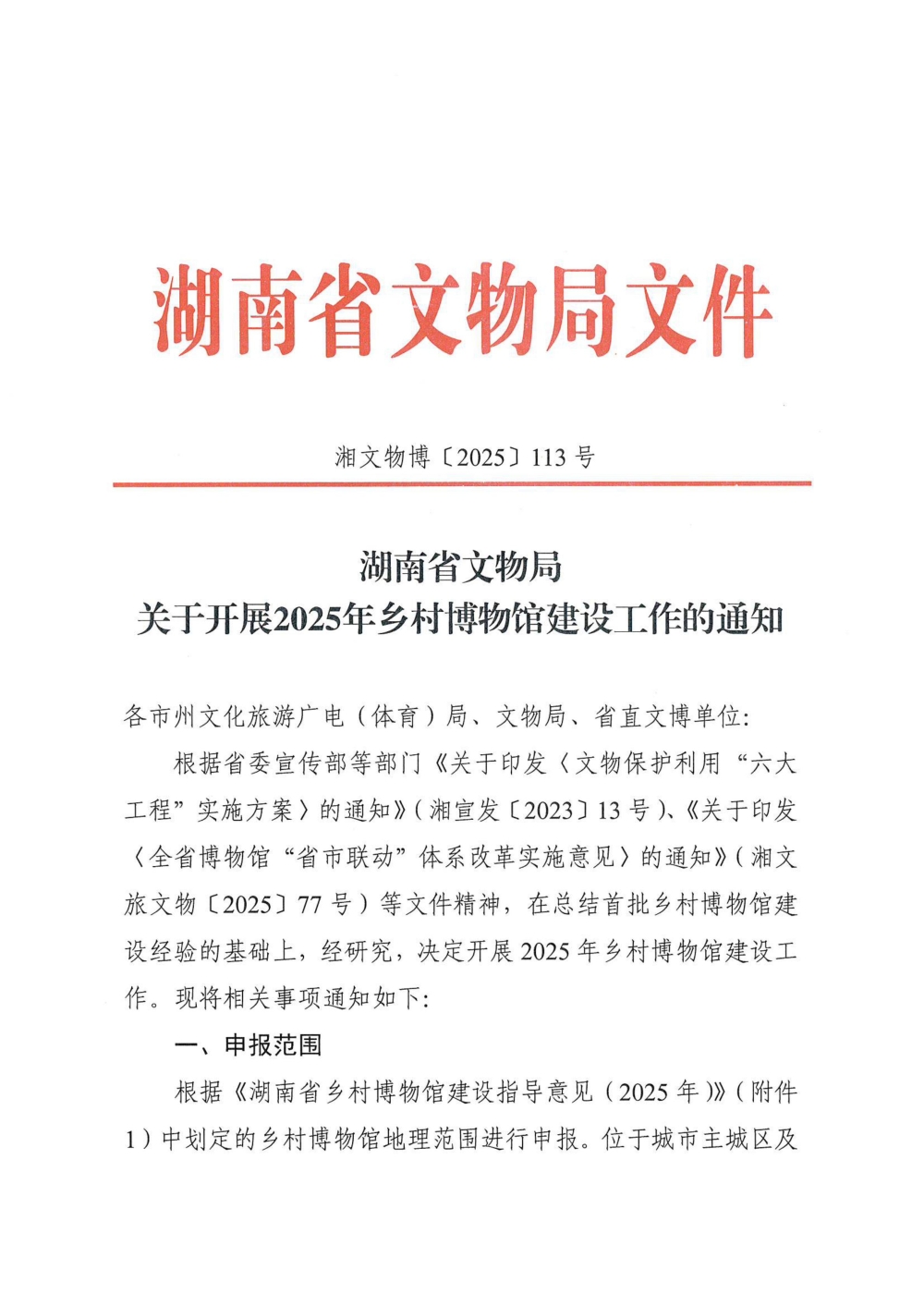 湘文物博〔2025〕113号关于开展2025年乡村博物馆建设工作的通知