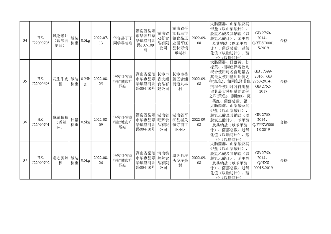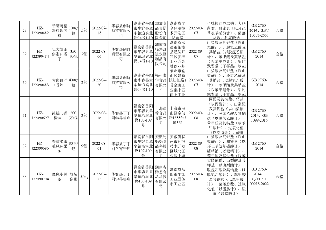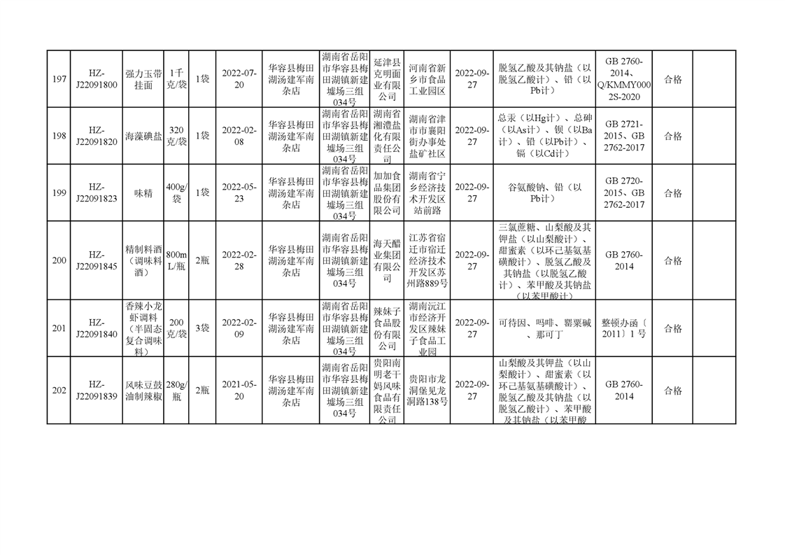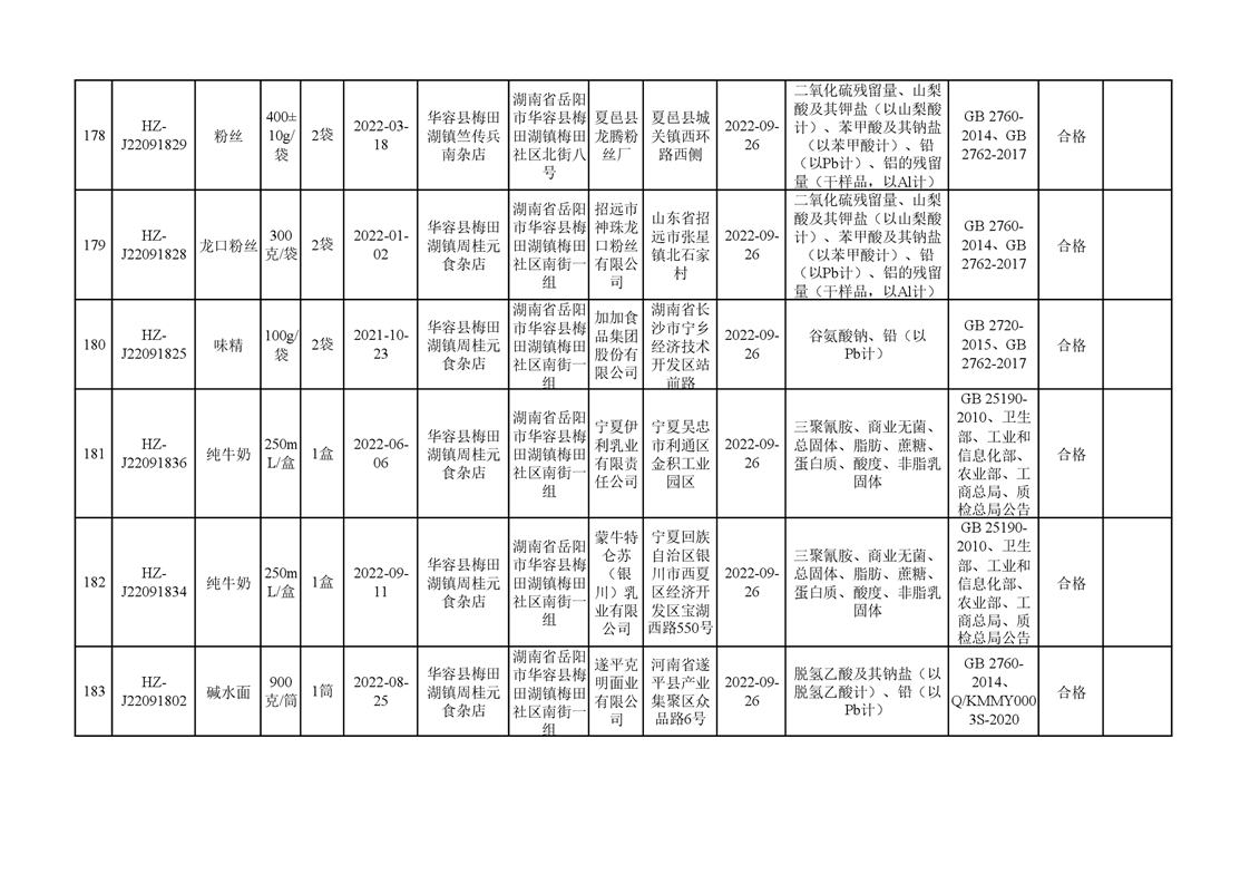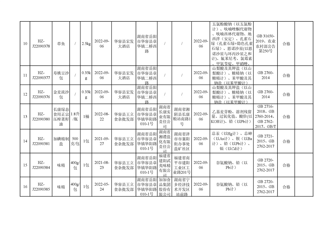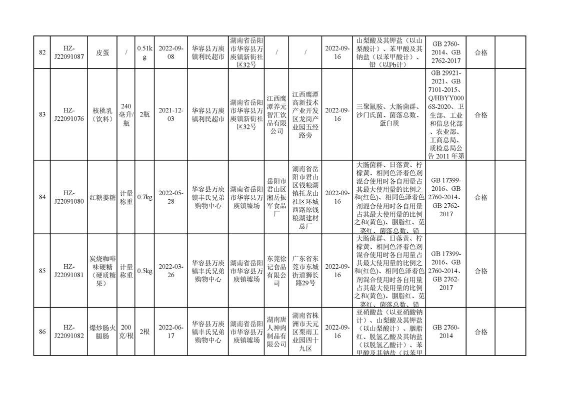 华容县市场监督管理局9月份241批次食品抽检结果汇总表(六)