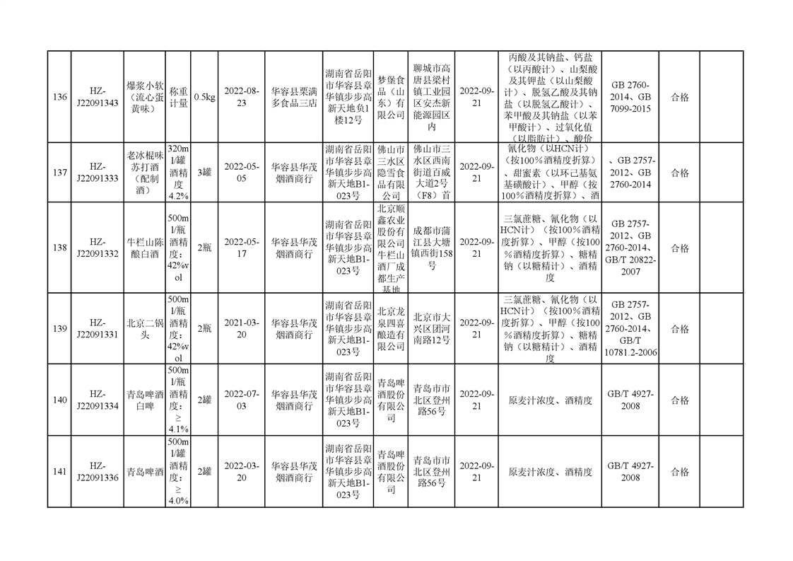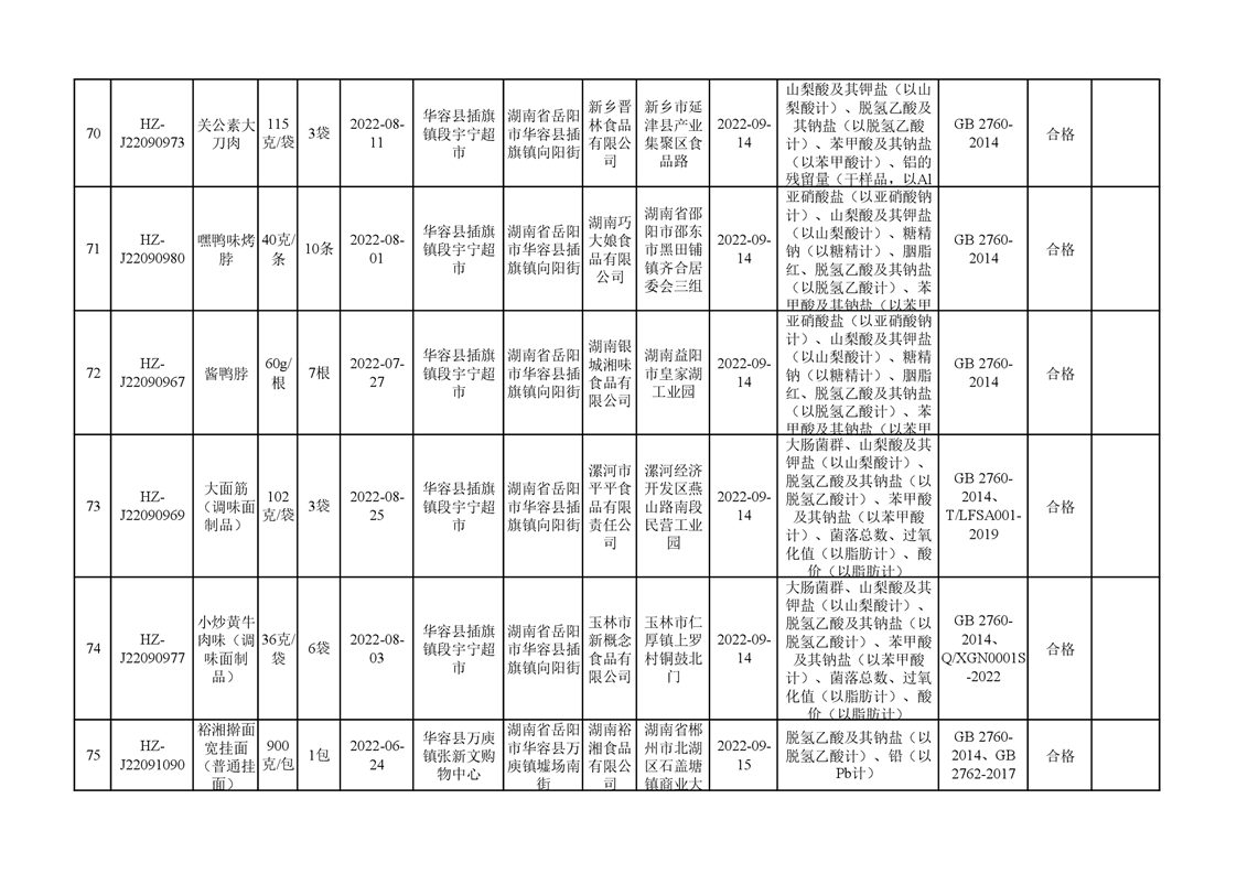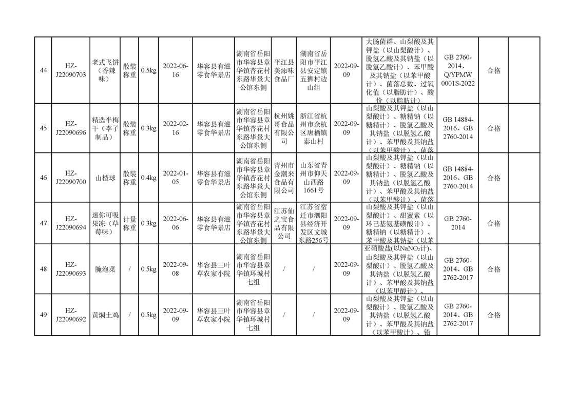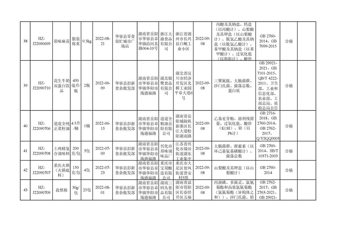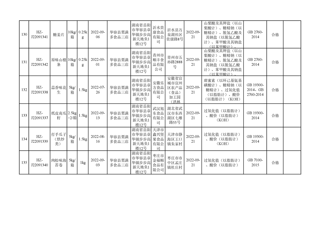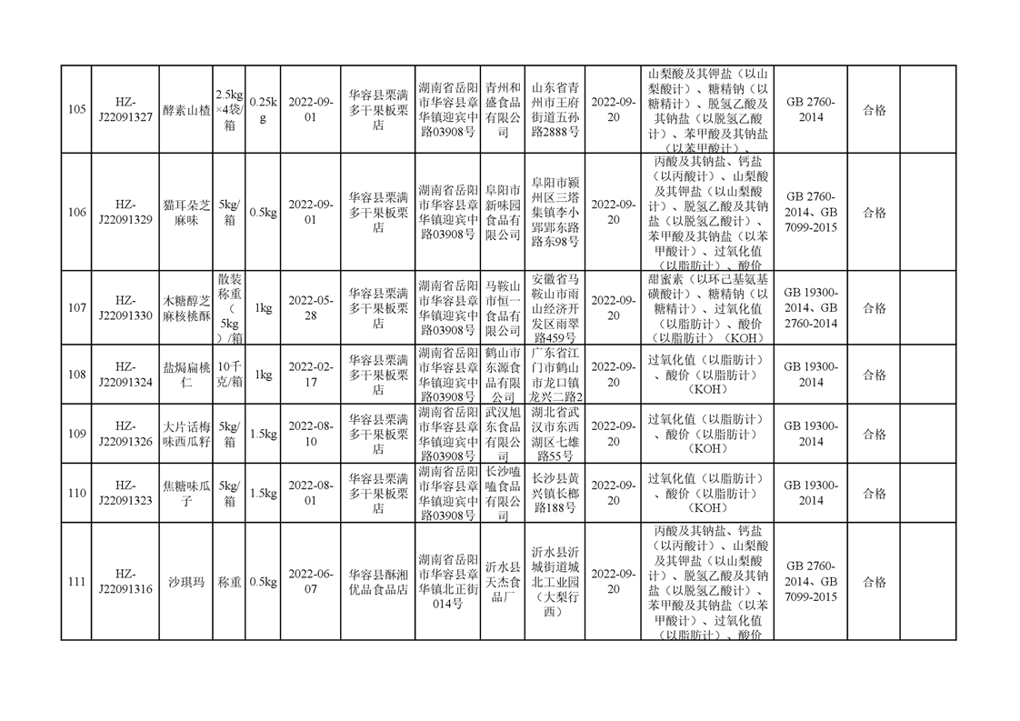 华容县市场监督管理局9月份241批次食品抽检结果汇总表(六)