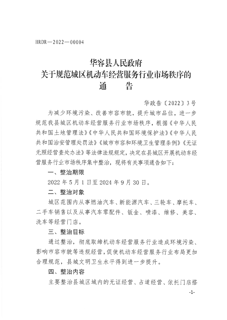 华容县人民政府关于规范城区机动车经营服务行业市场秩序的通告