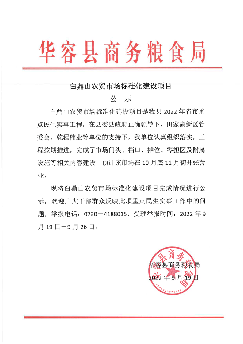 白鼎山农贸市场标准化建设项目公示