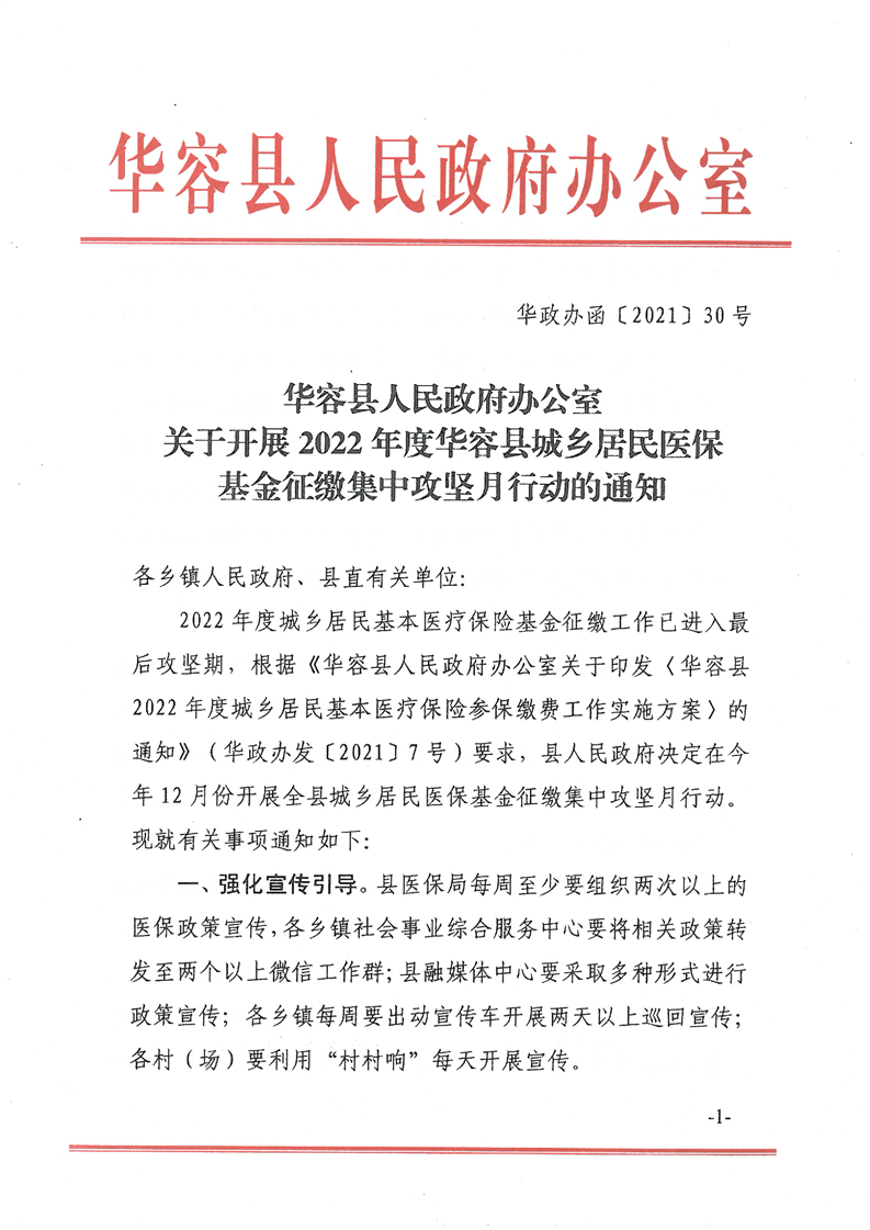 关于开展2022年度华容县城乡居民医保基金征缴集中攻坚月行动的通知