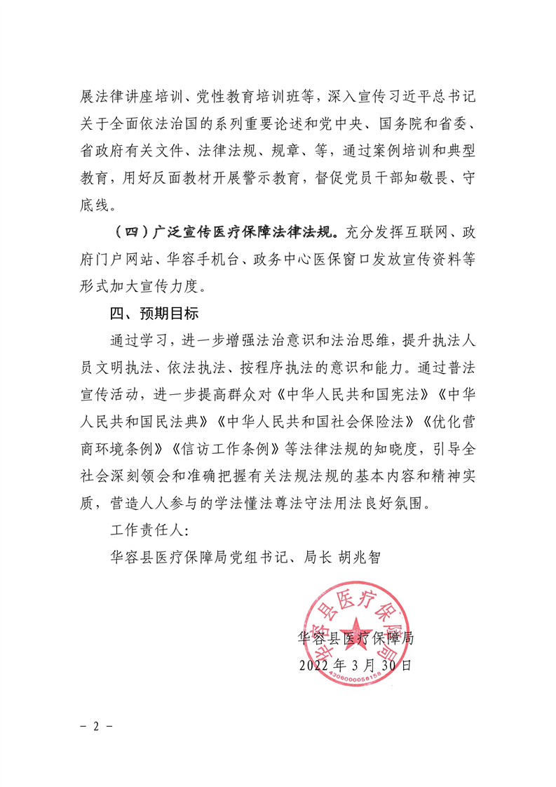 华容县医疗保障局2022年度“谁执法谁普法”责任清单