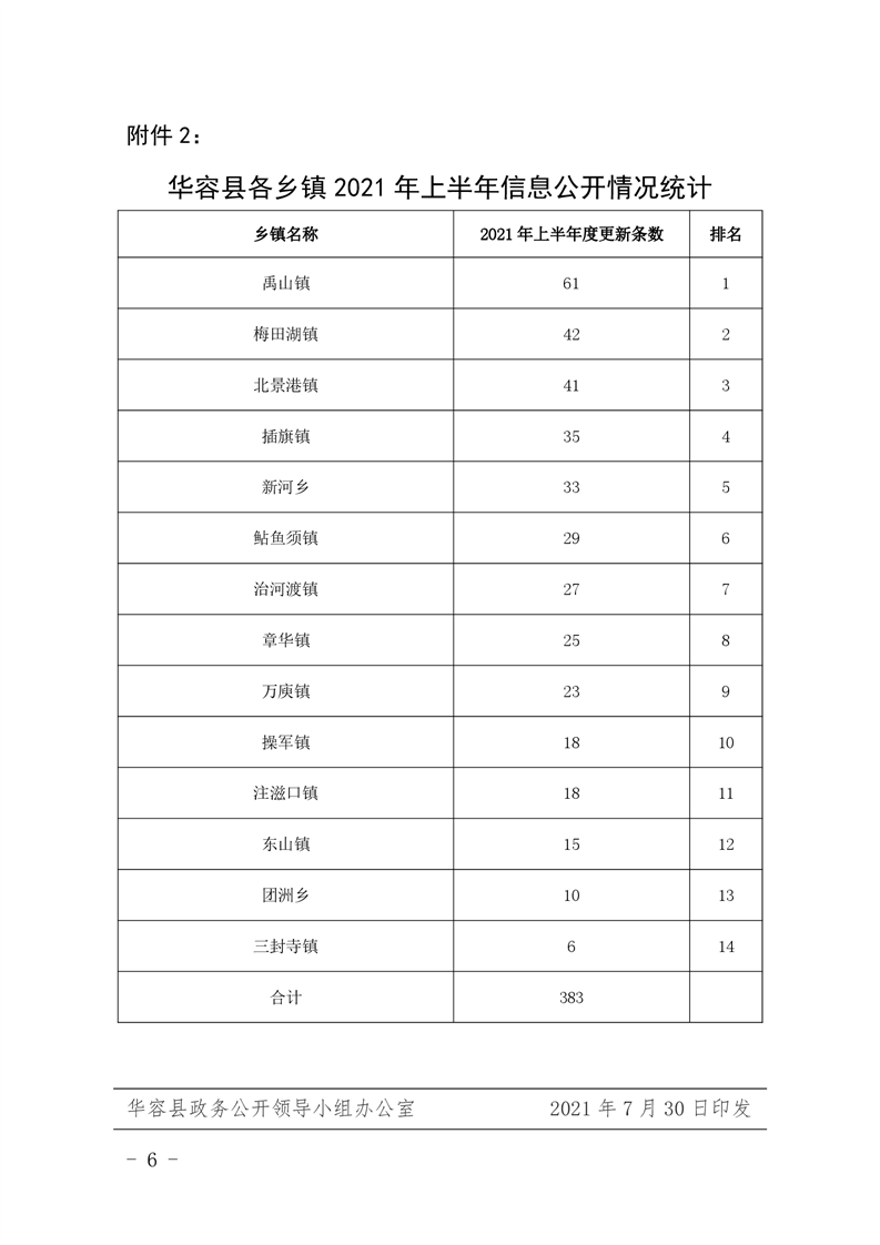 华公开办发〔2021〕5号 关于2021年上半年全县政务公开工作情况的通报