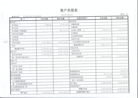 2015年第二季度资产负债表