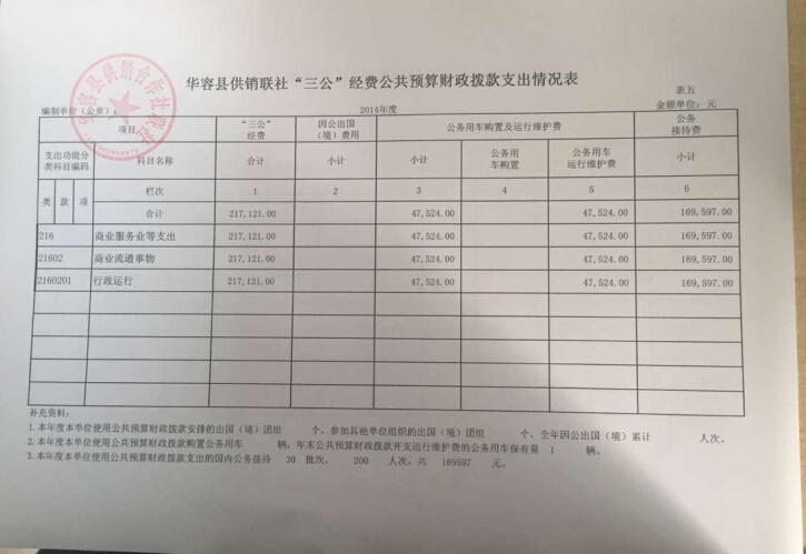 2014年度华容县供销联社“三公”经费公共预算财政拨款支出情况表