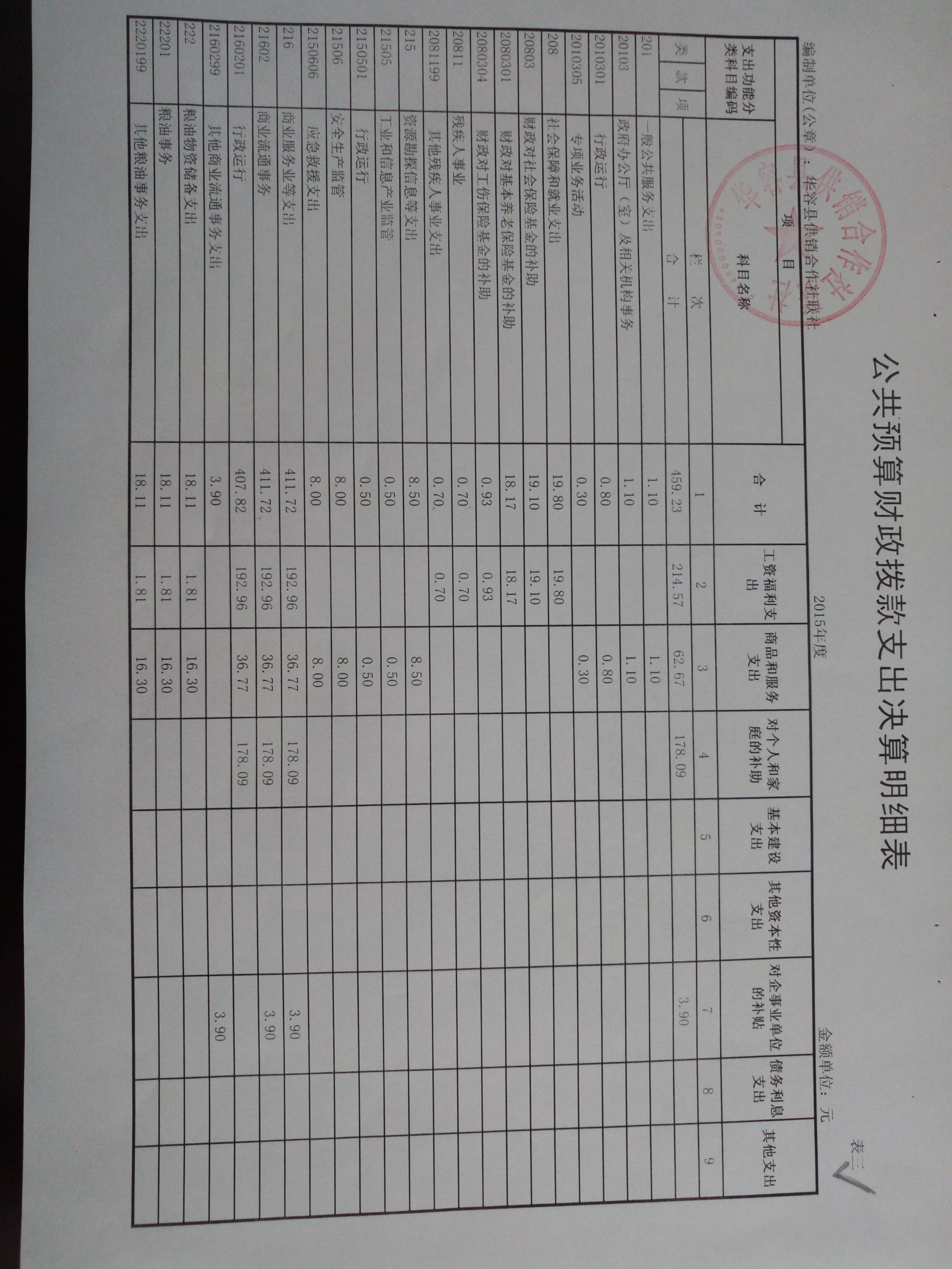 2015年度华容县供销联社公共预算财政拨款支出决算明细表