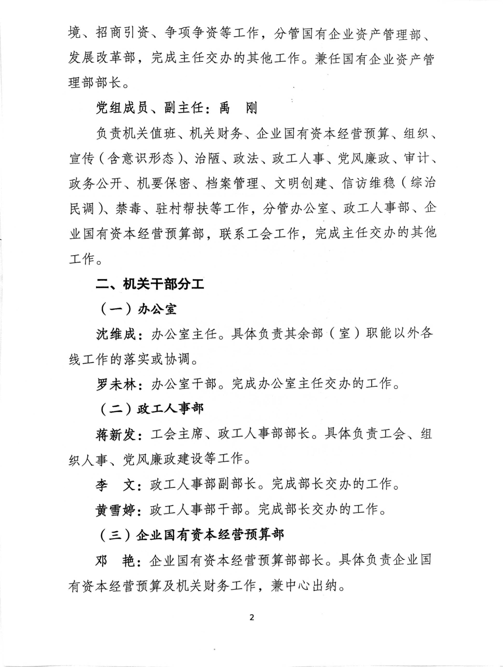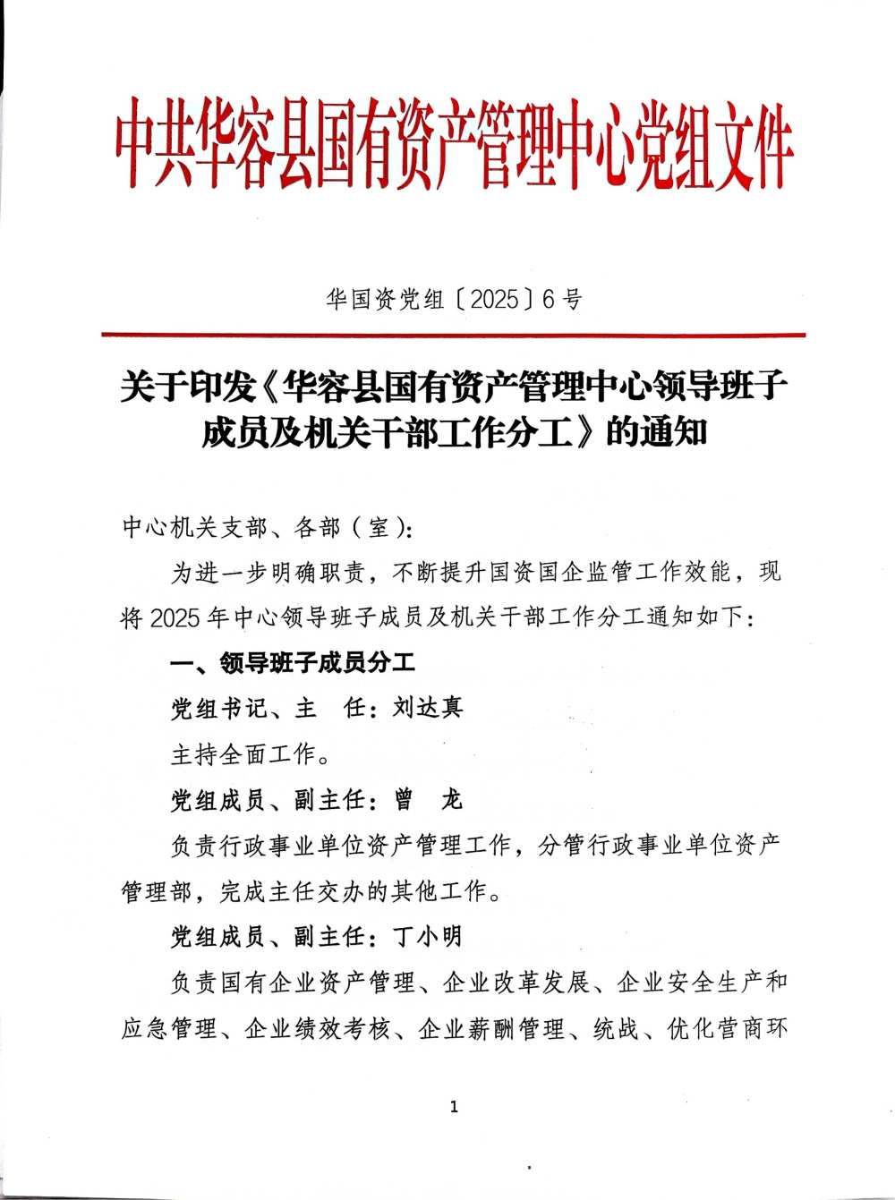 关于印发《华容县国有资产管理中心领导班子成员及机关干部工作分工》的通知