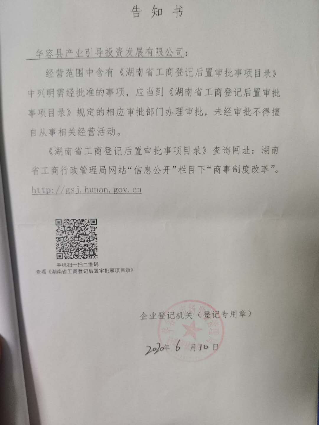 产业引导投资发展有限公司 告知书