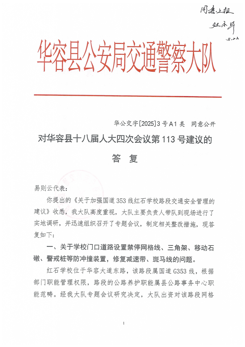 对华容县十八届人大四次会议第113号建议的答复