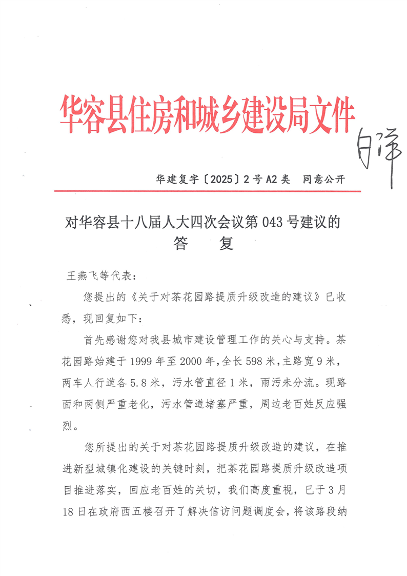 对华容县十八届人大四次会议第030号建议的答复