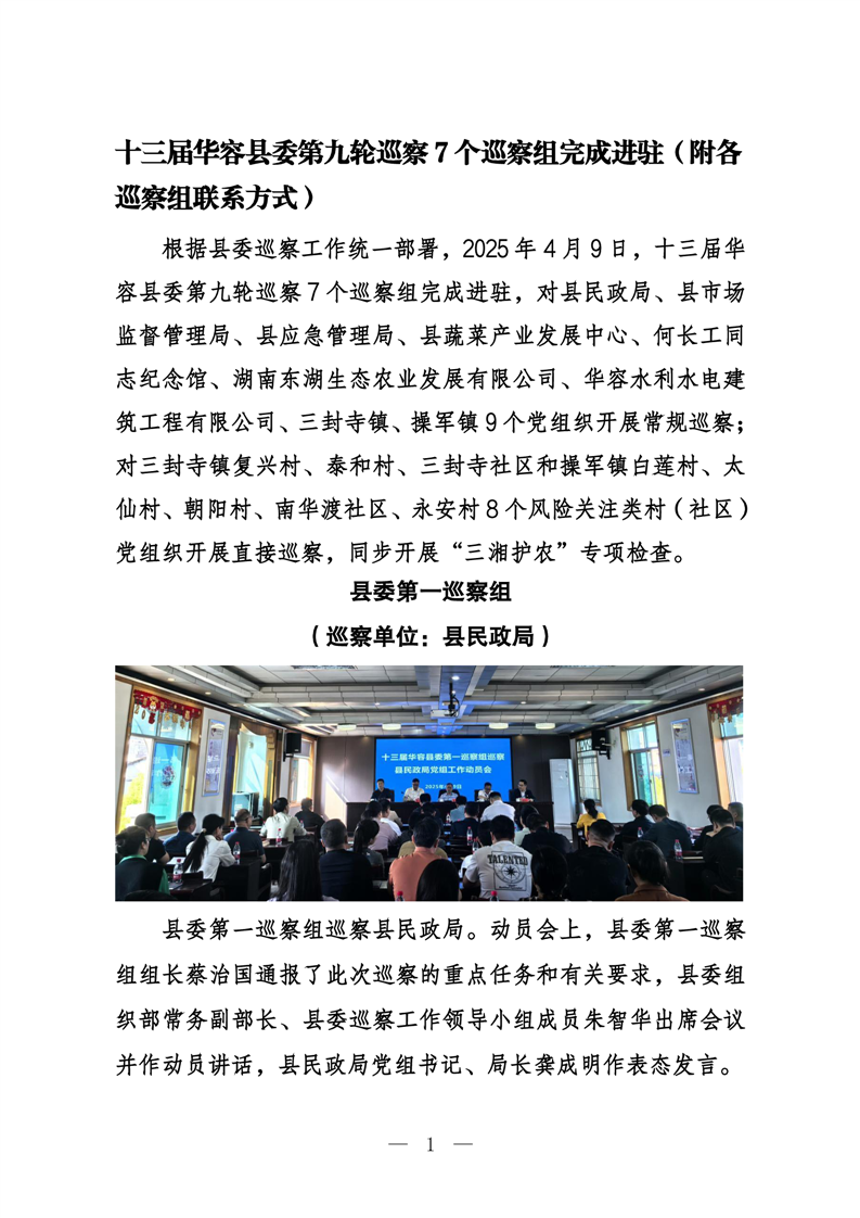 十三届华容县委第九轮巡察7个巡察组完成进驻(附巡察组联系方式)