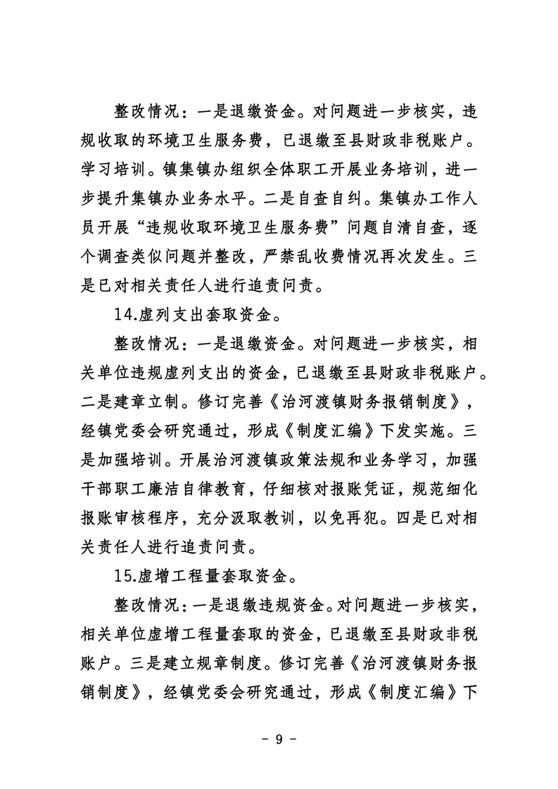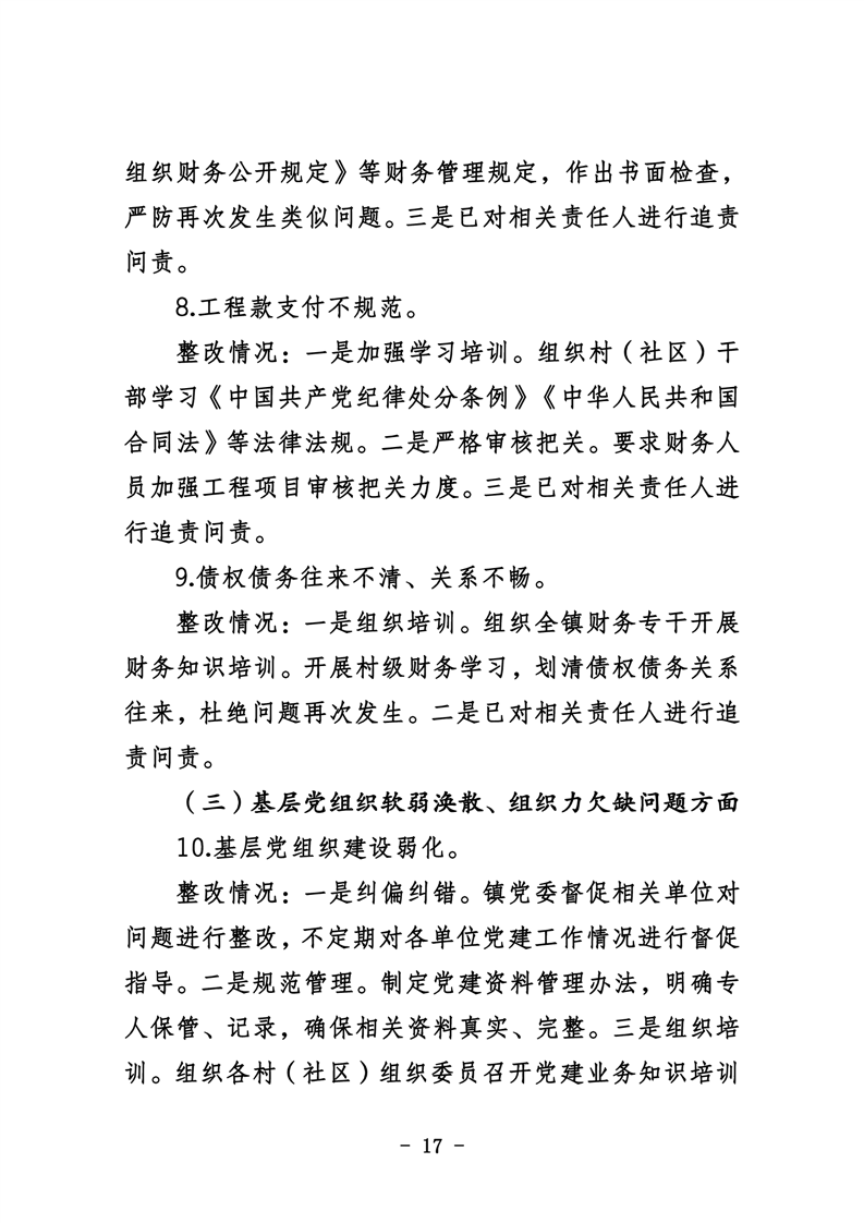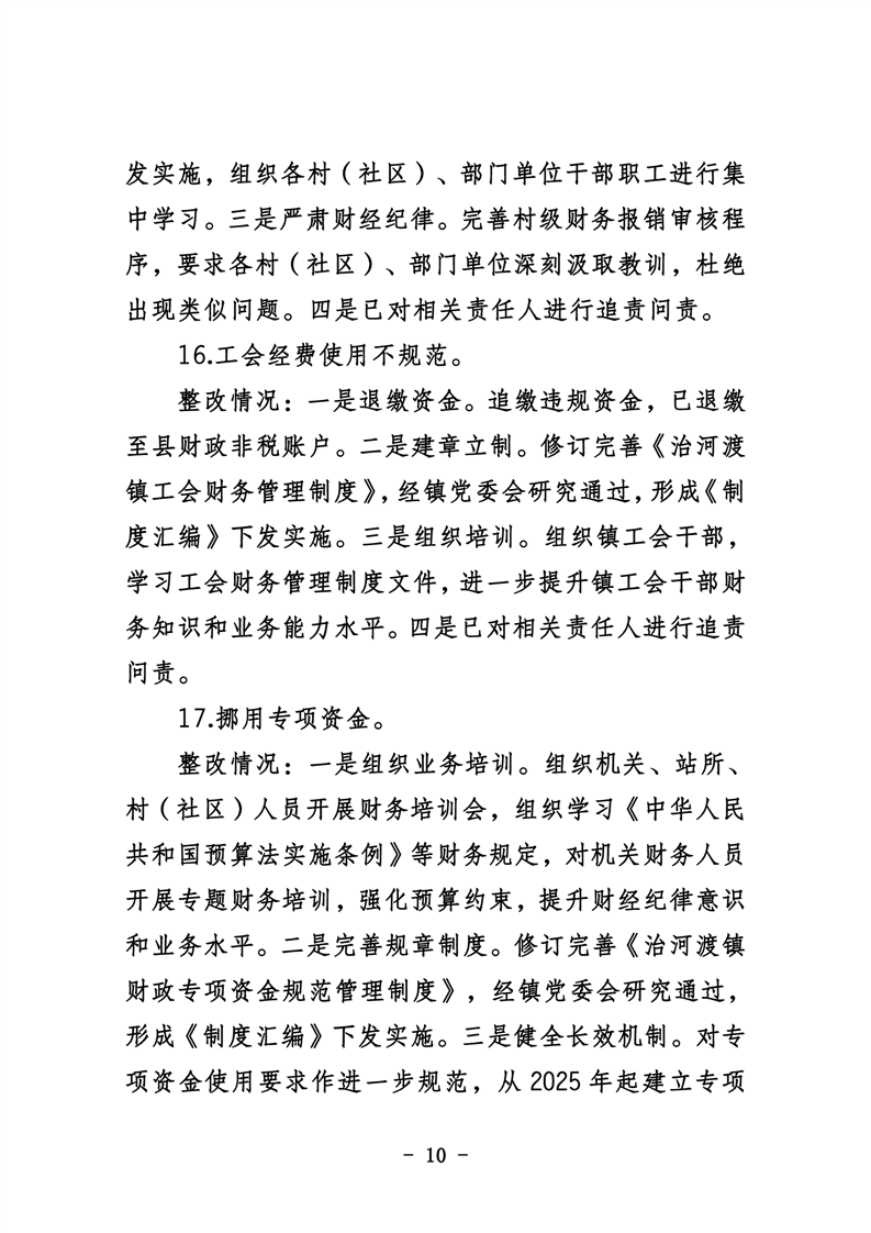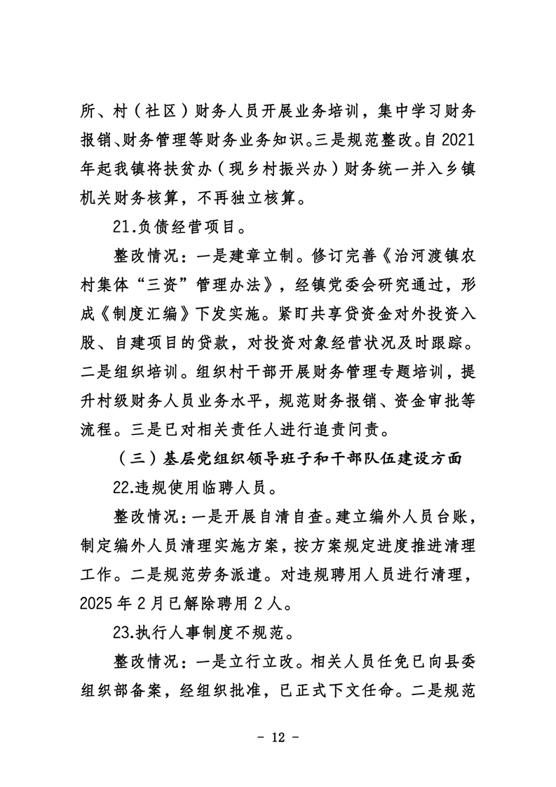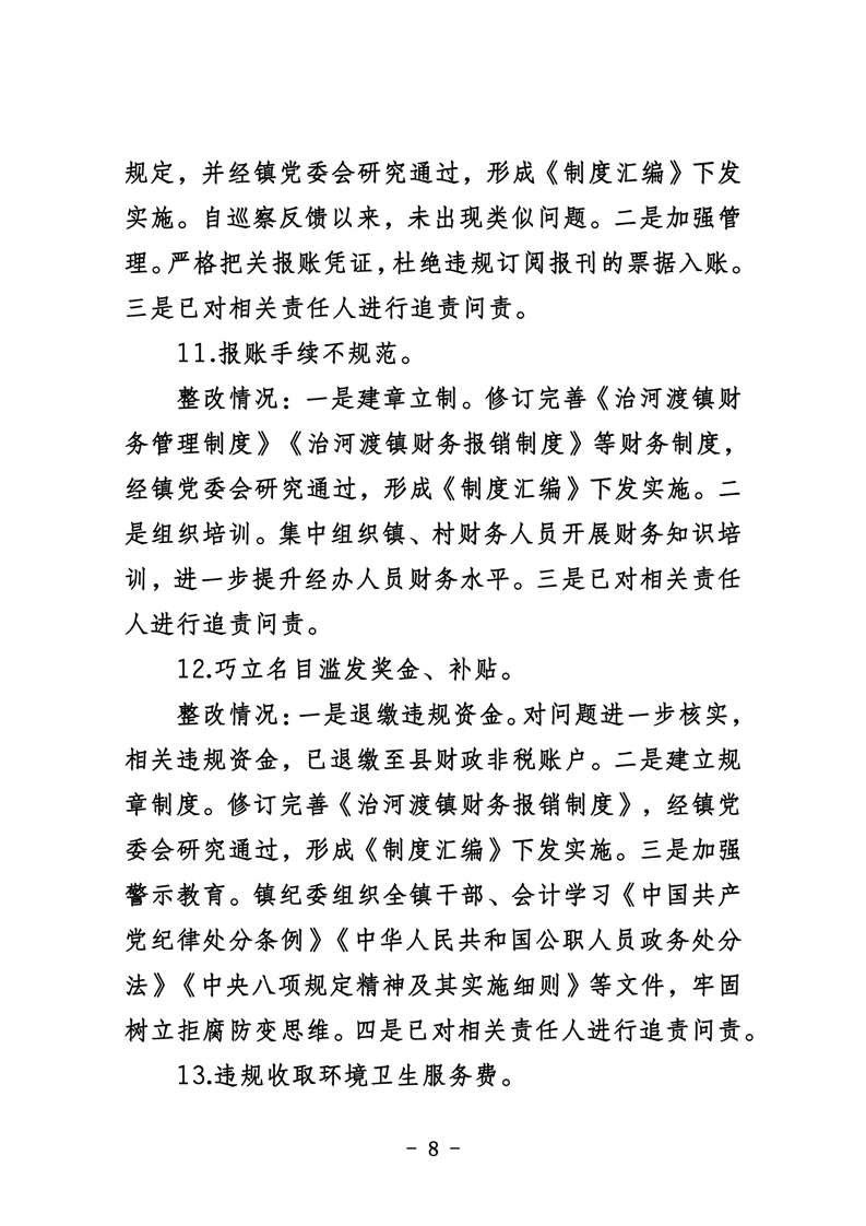 中共华容县治河渡镇委员会关于巡察整改进展情况的通报