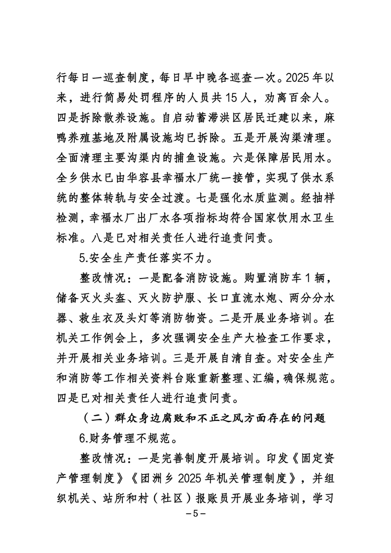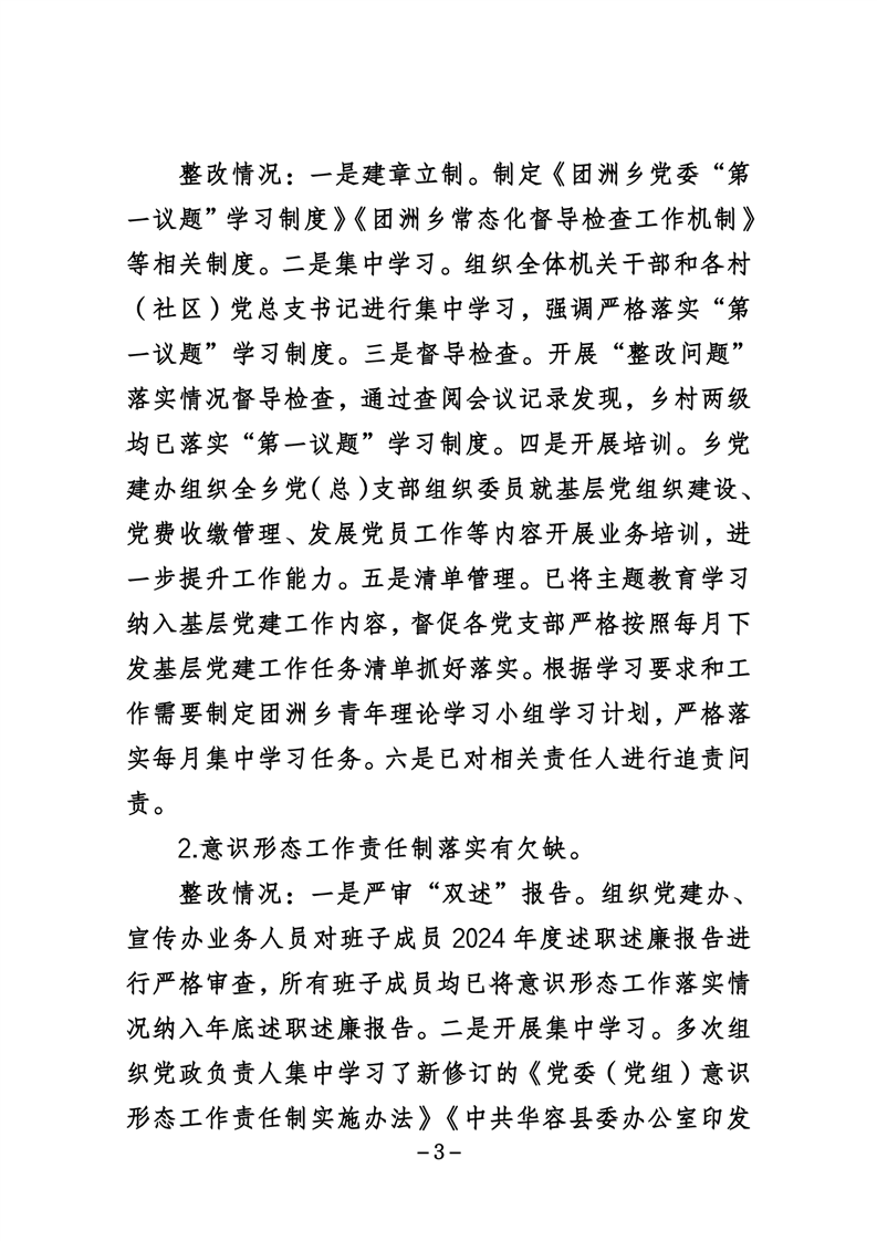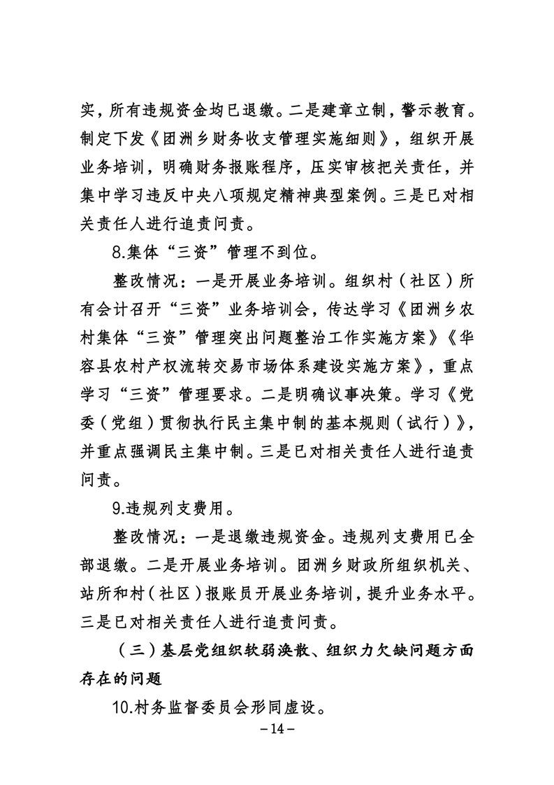 中共华容县团洲乡委员会关于巡察整改进展情况的通报