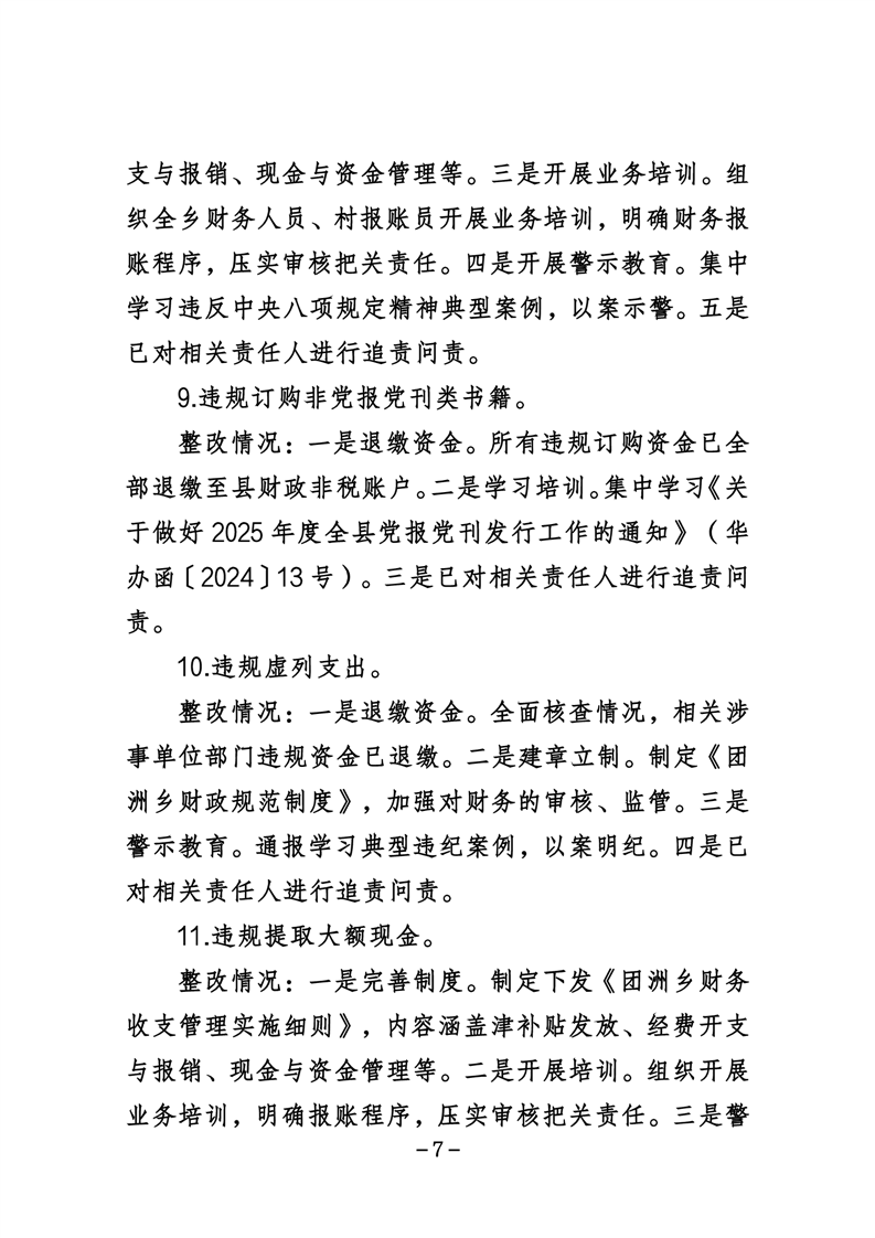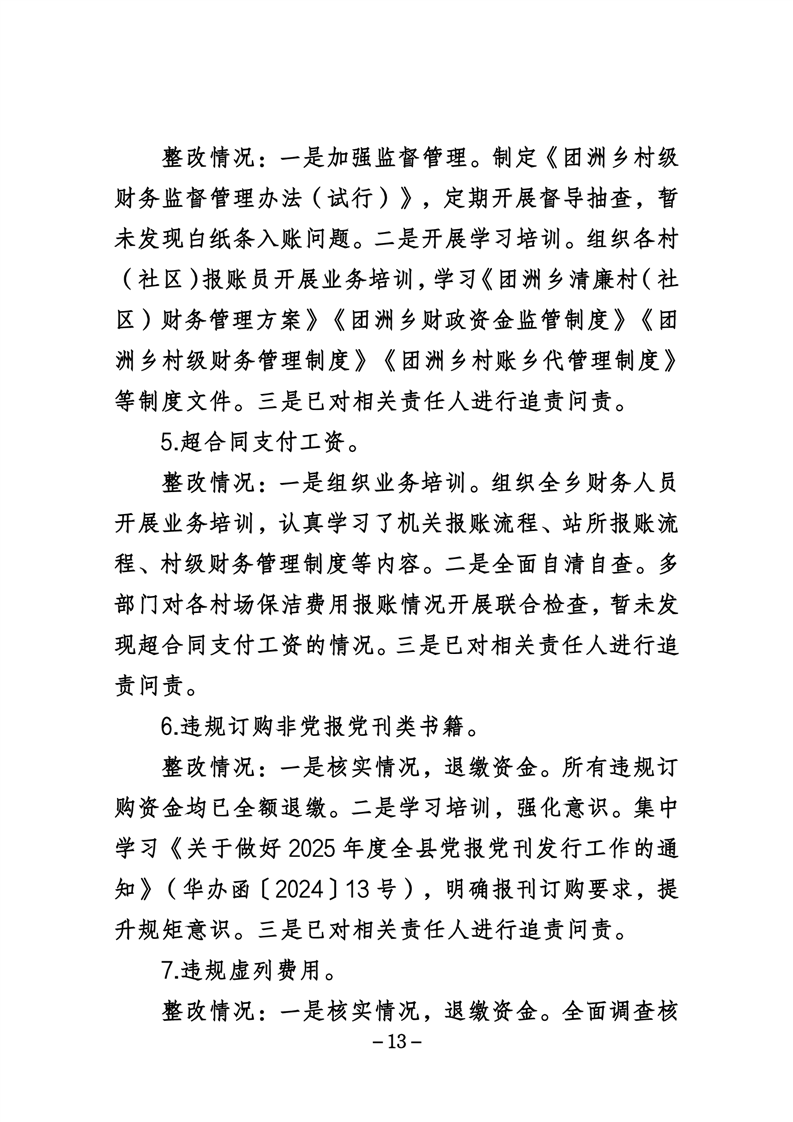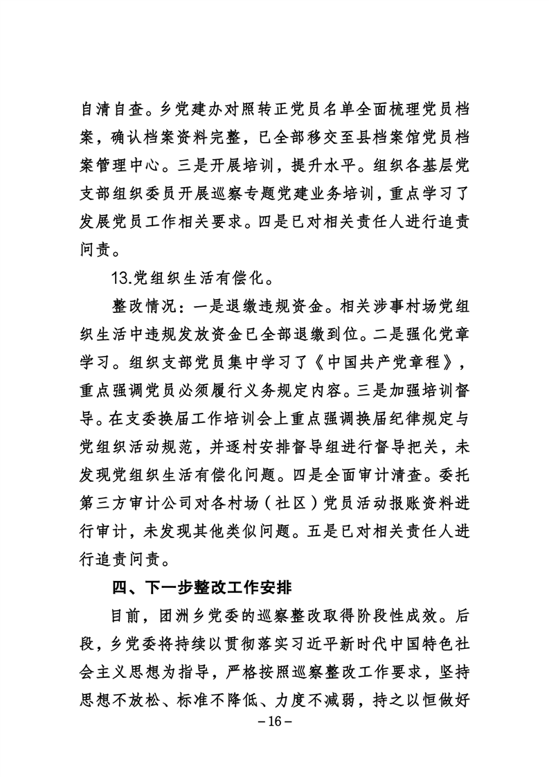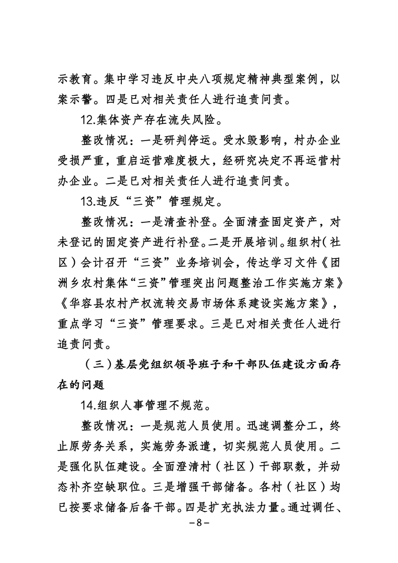 中共华容县团洲乡委员会关于巡察整改进展情况的通报